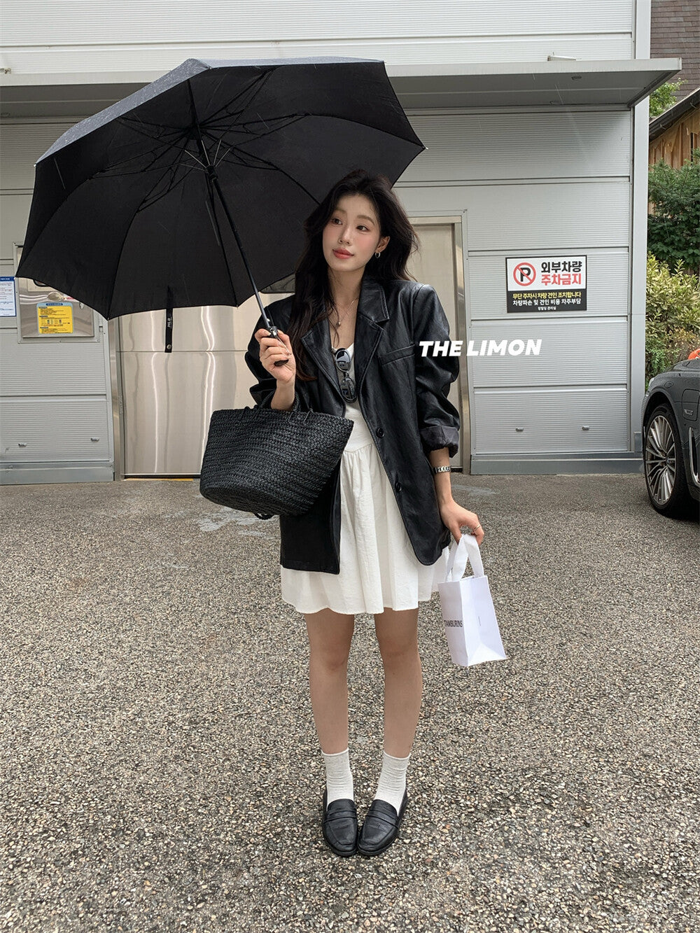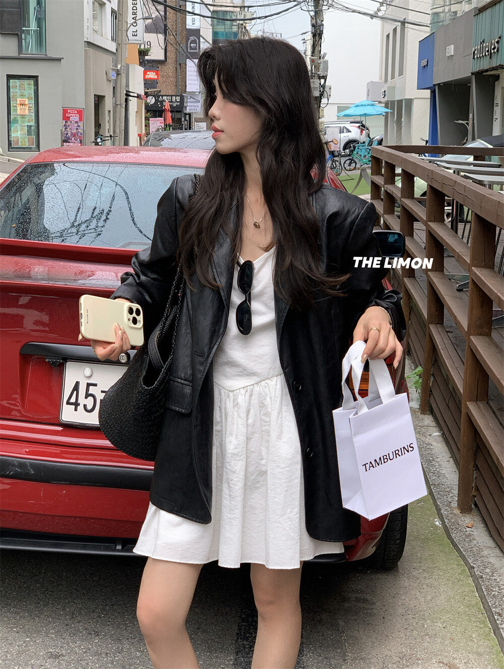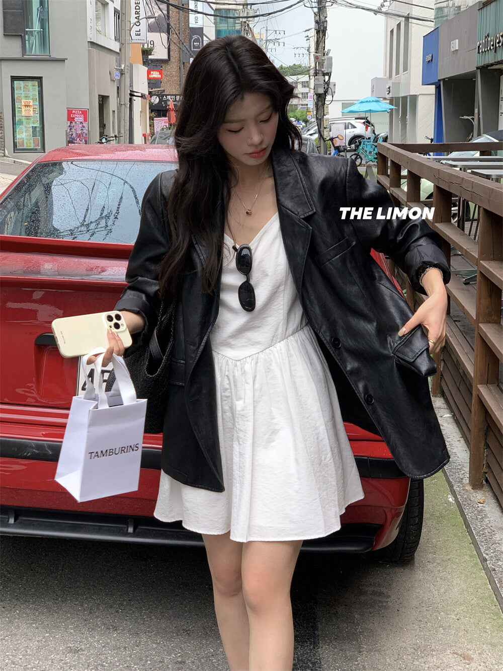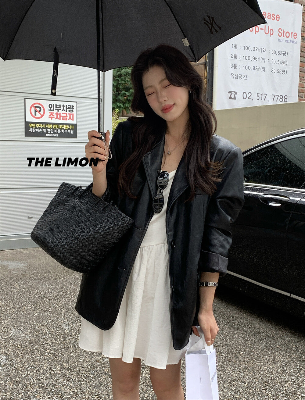 【C6942】高級感寬鬆顯瘦氣質西裝皮衣