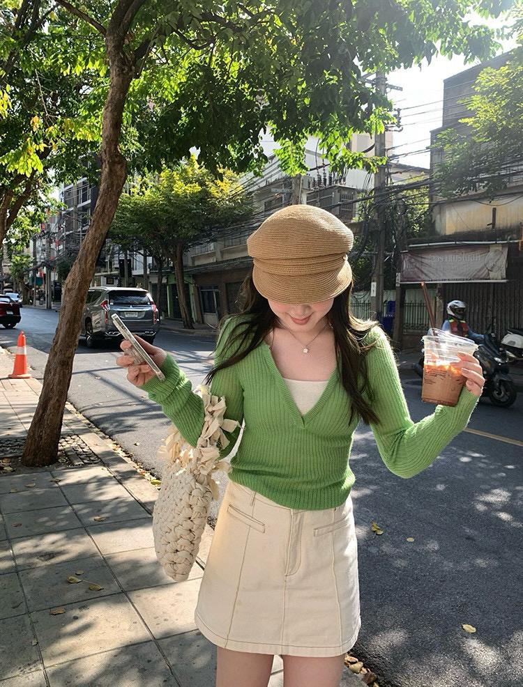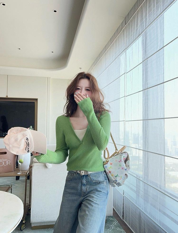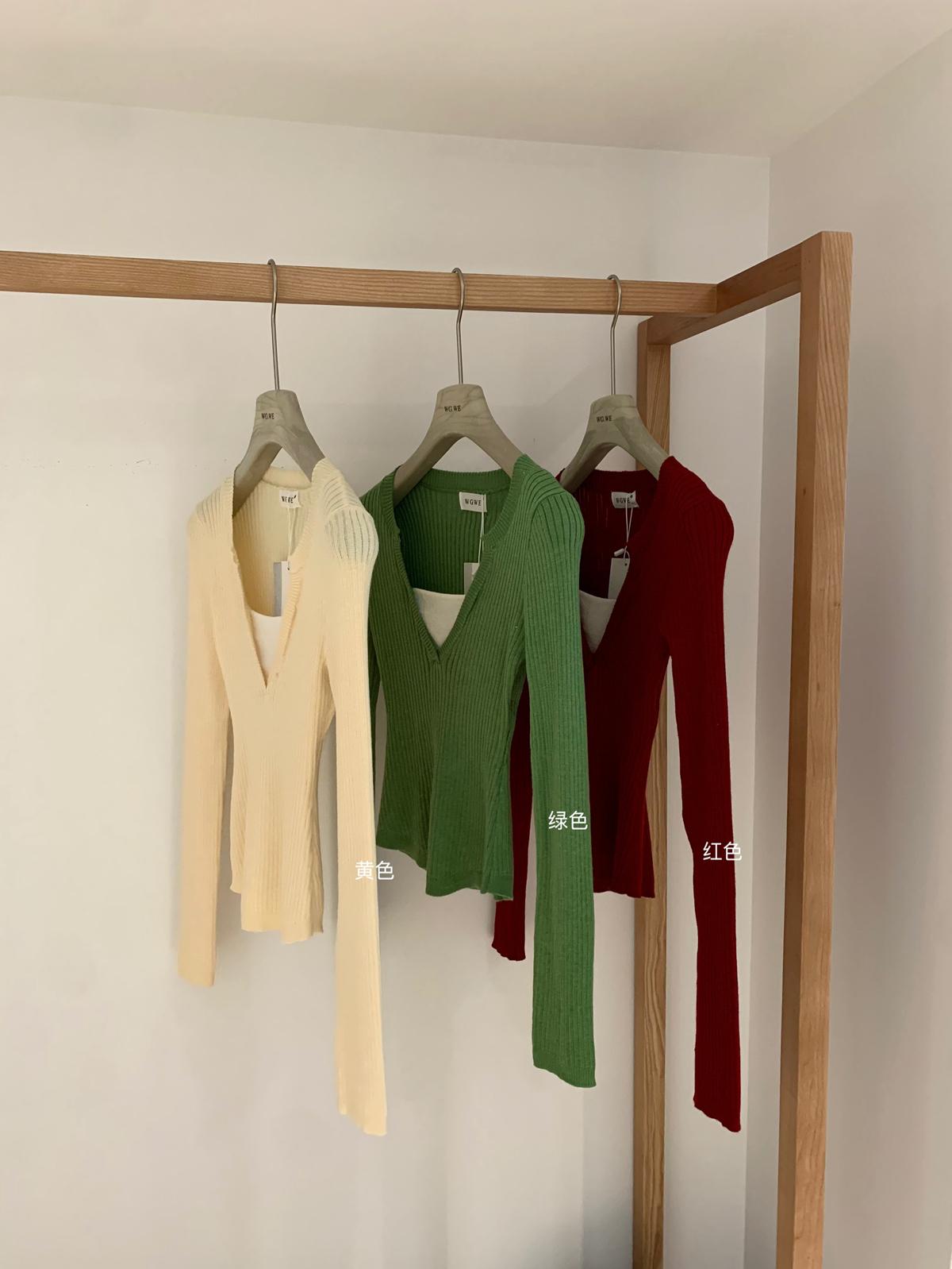3. 【C6950】小清新假兩件多巴胺穿搭修身針織針織衫
