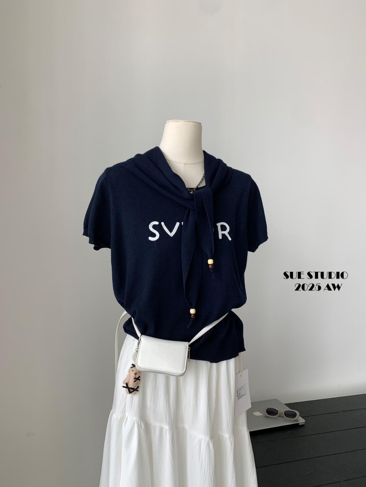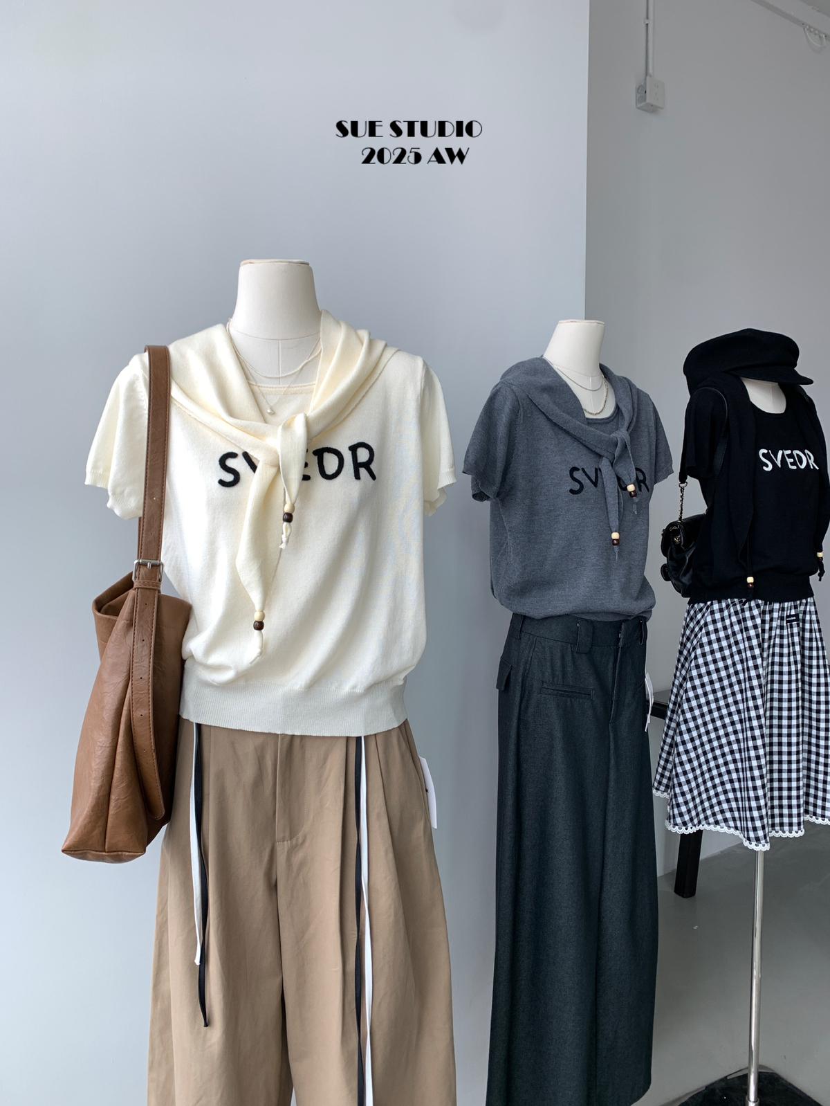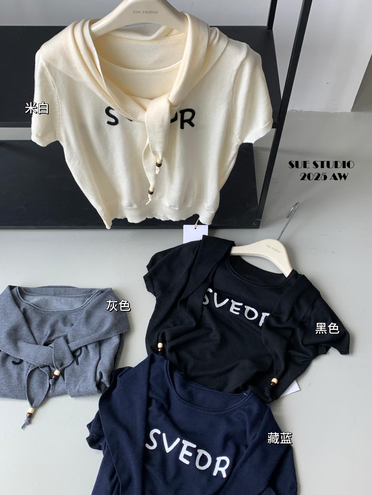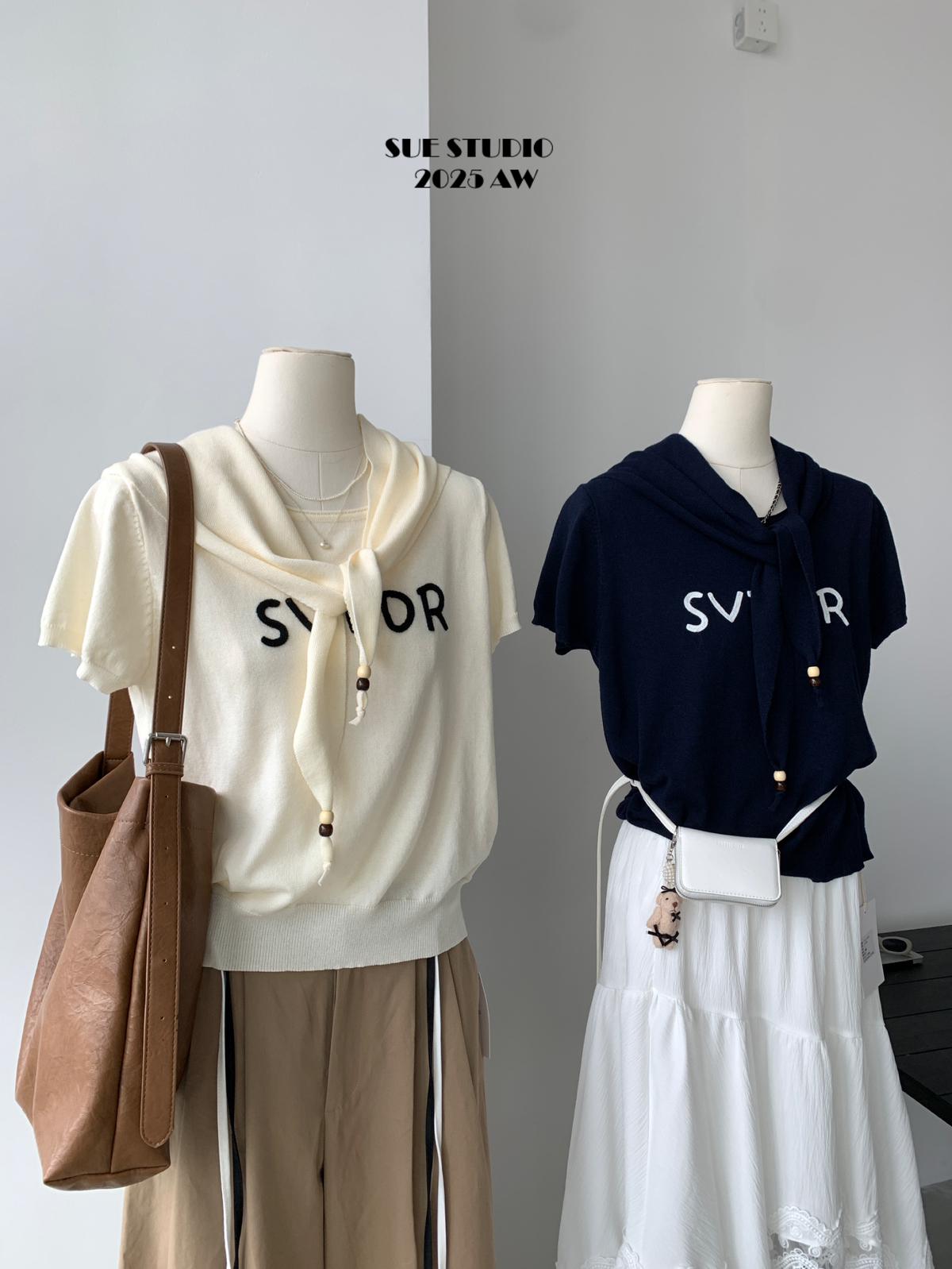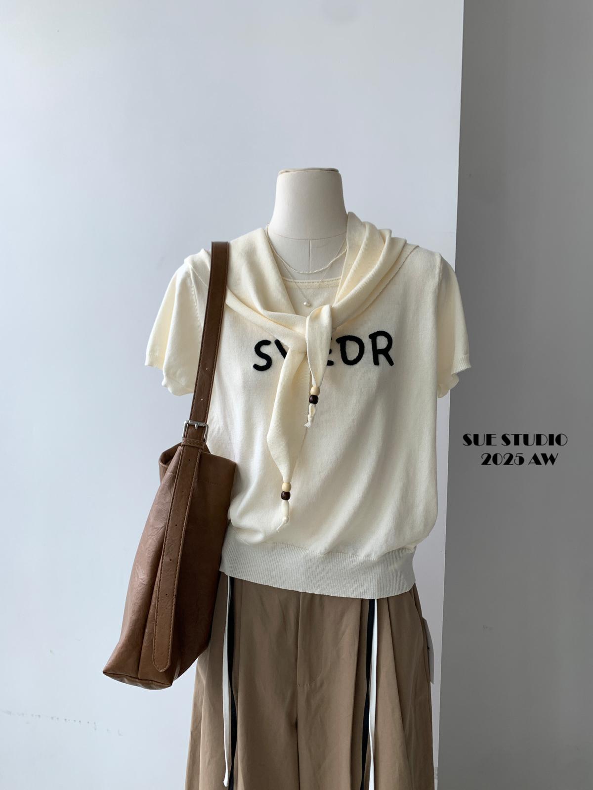 【C6965】韓甜系減齡感寬鬆顯瘦字母款純色針織衫(配披肩)(含6%羊毛)