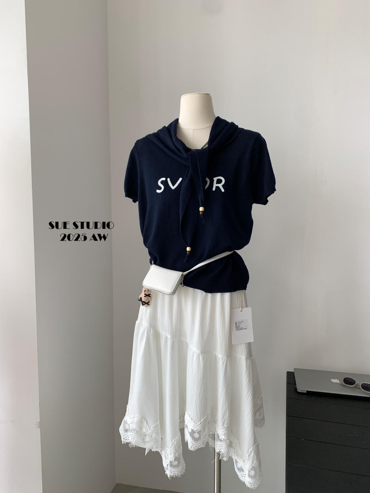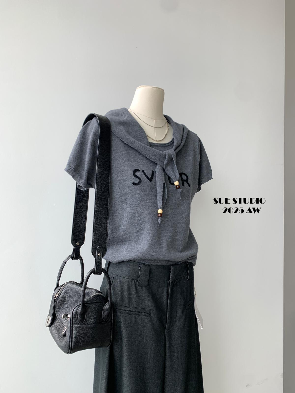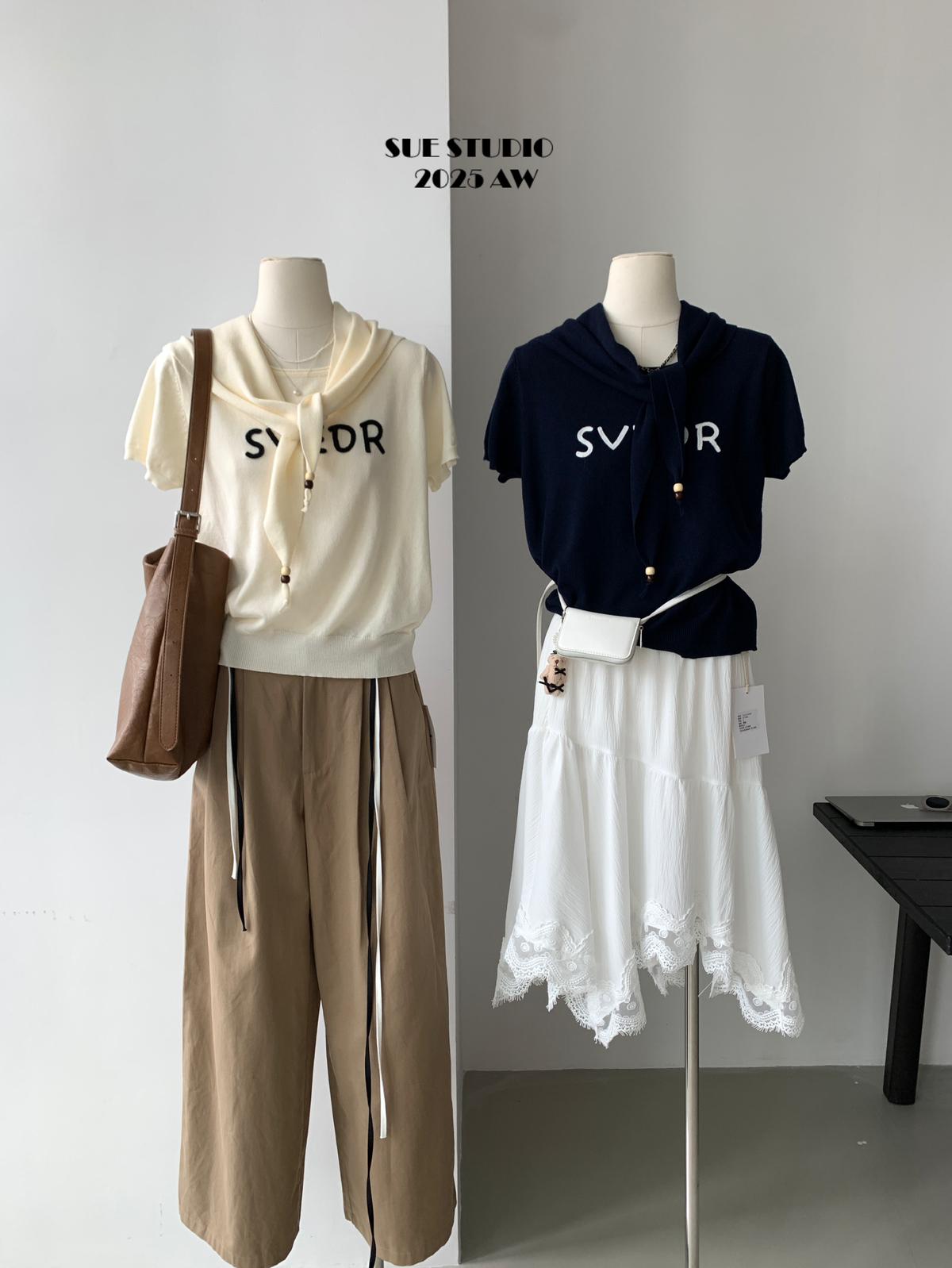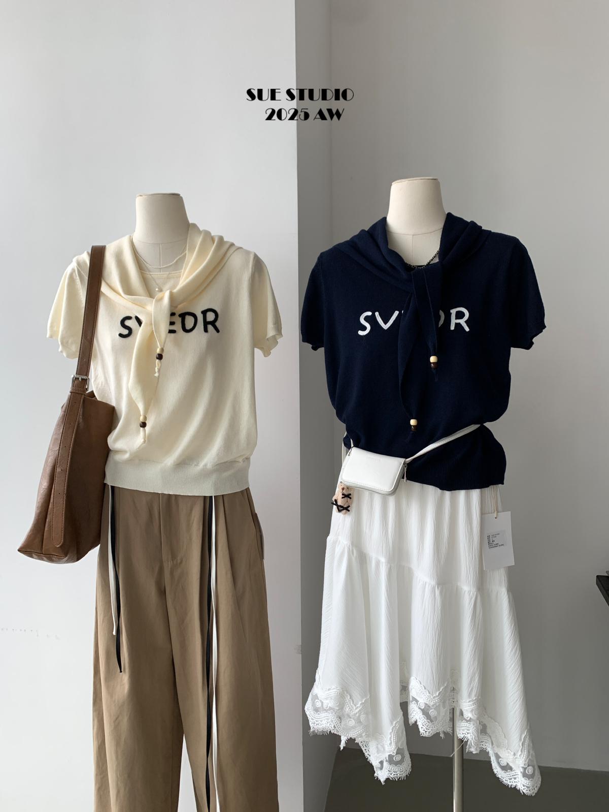 【C6965】韓甜系減齡感寬鬆顯瘦字母款純色針織衫(配披肩)(含6%羊毛)