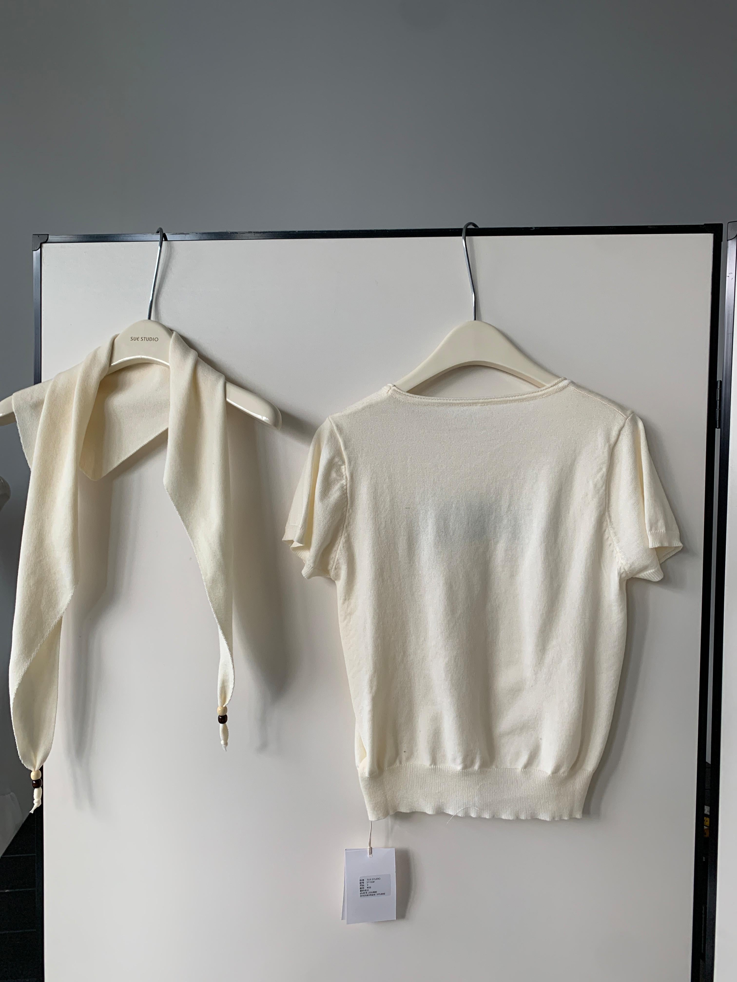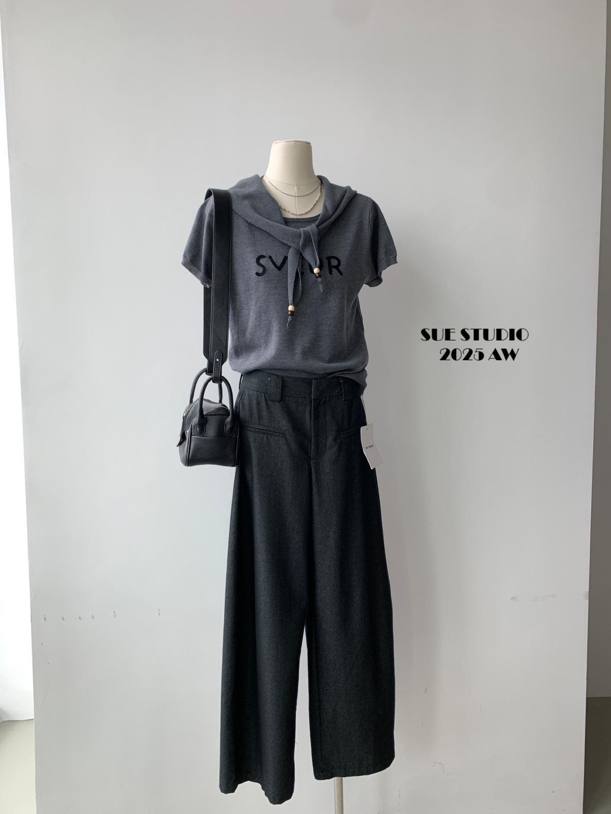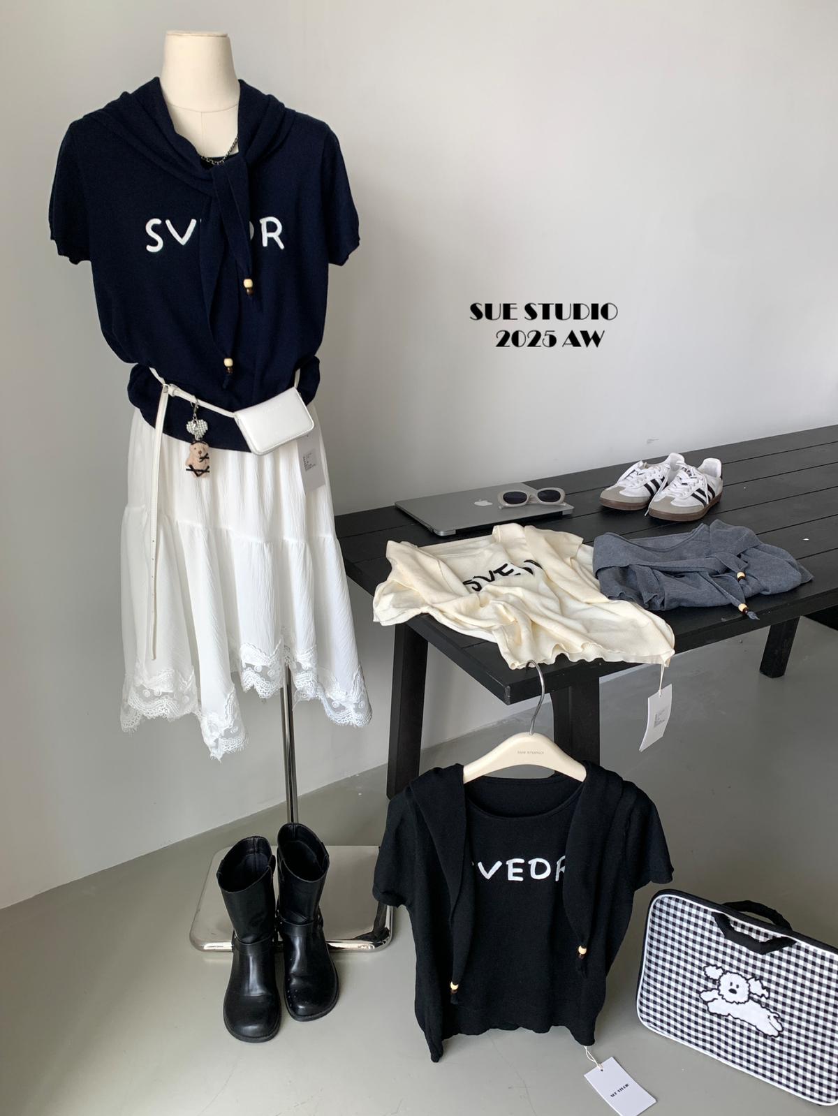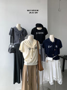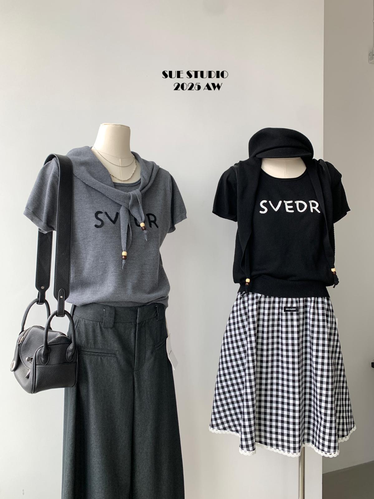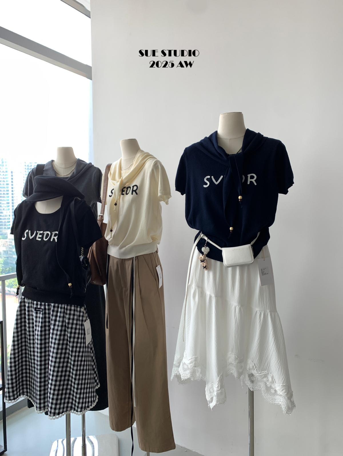 【C6965】韓甜系減齡感寬鬆顯瘦字母款純色針織衫(配披肩)(含6%羊毛)