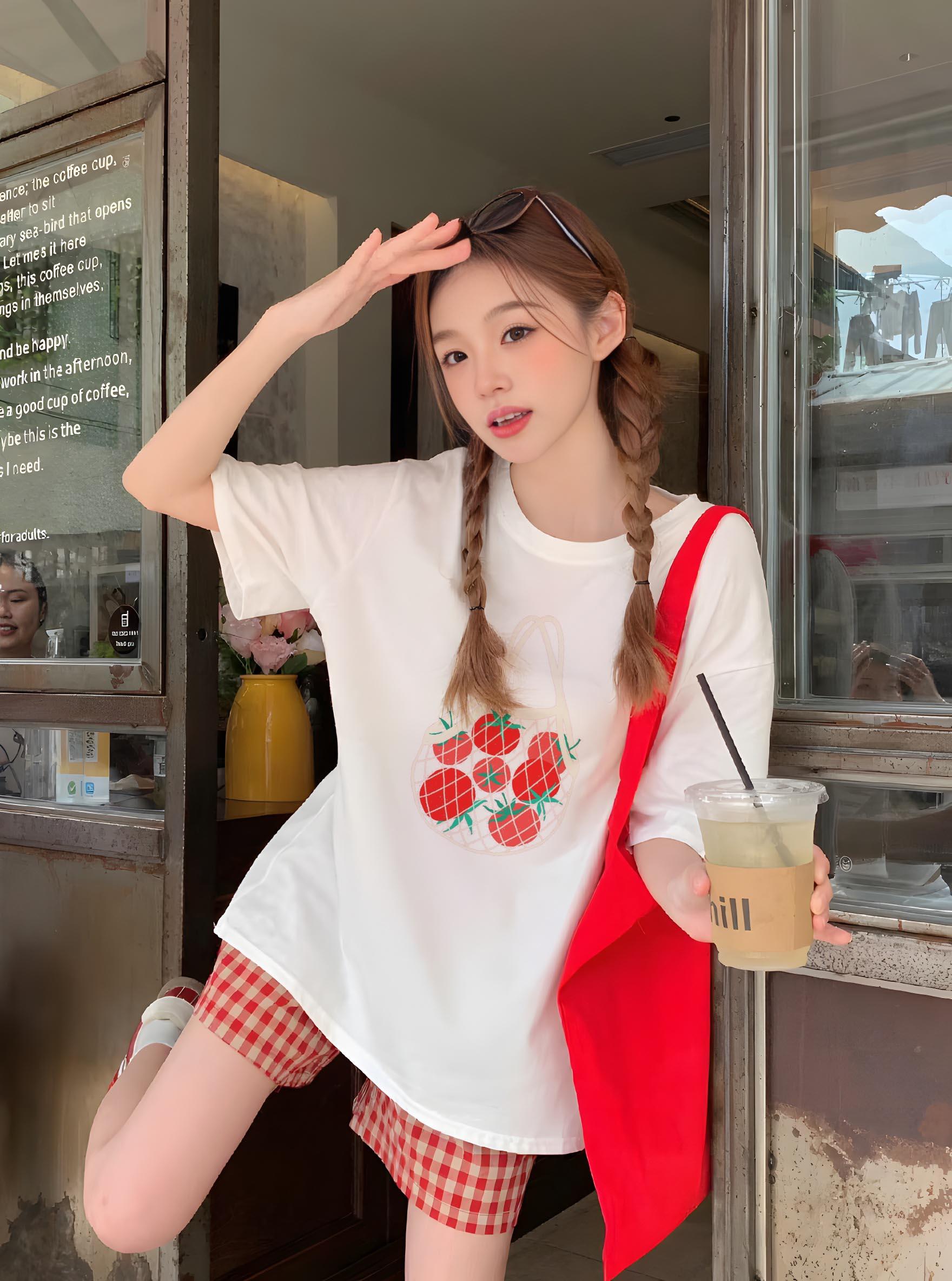 3. 【C6973】可愛復古風vintage袋裝番茄印花寬鬆圓領短袖T恤