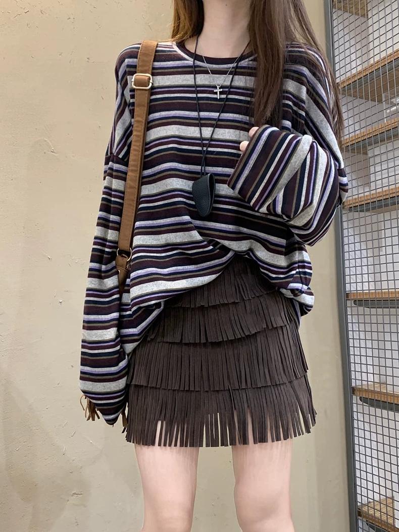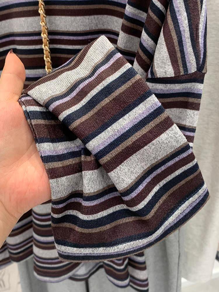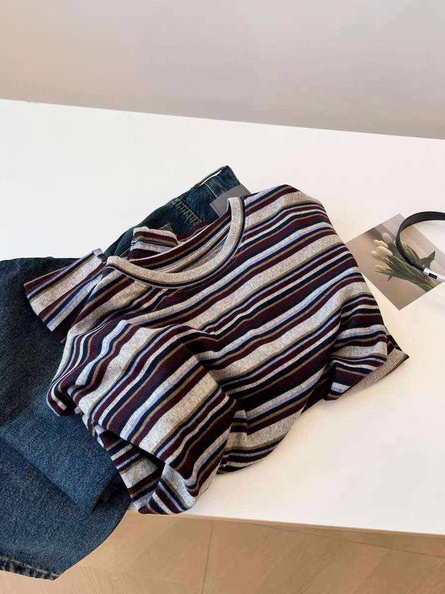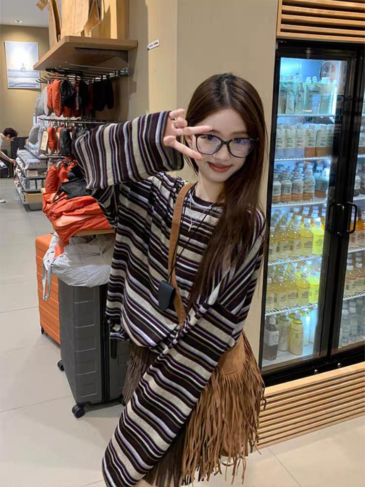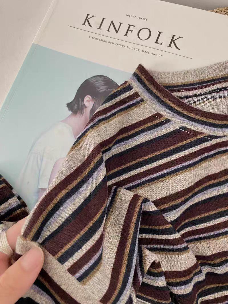 3. 【C6974】[復古彩條]新款波西風撞色條紋長袖慵懶鬆弛感寬鬆上衣長袖T恤