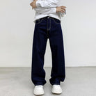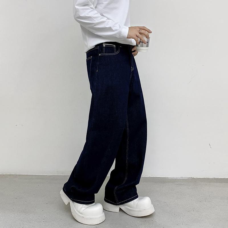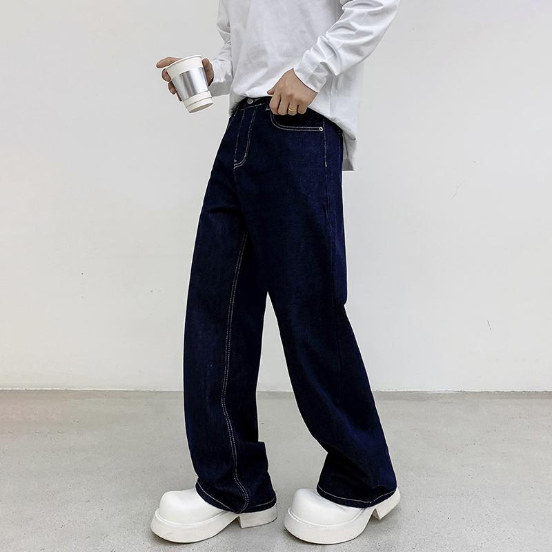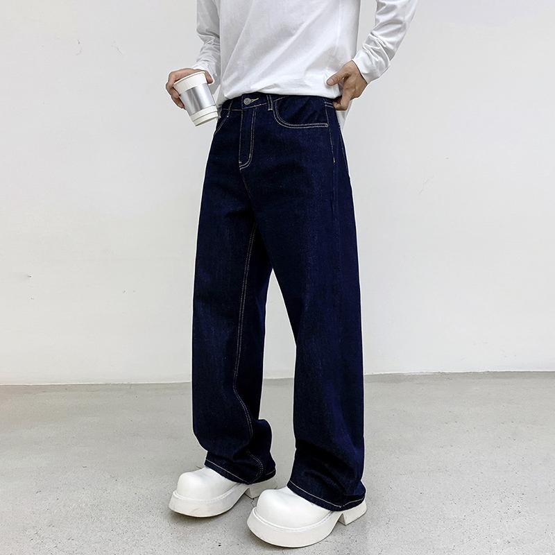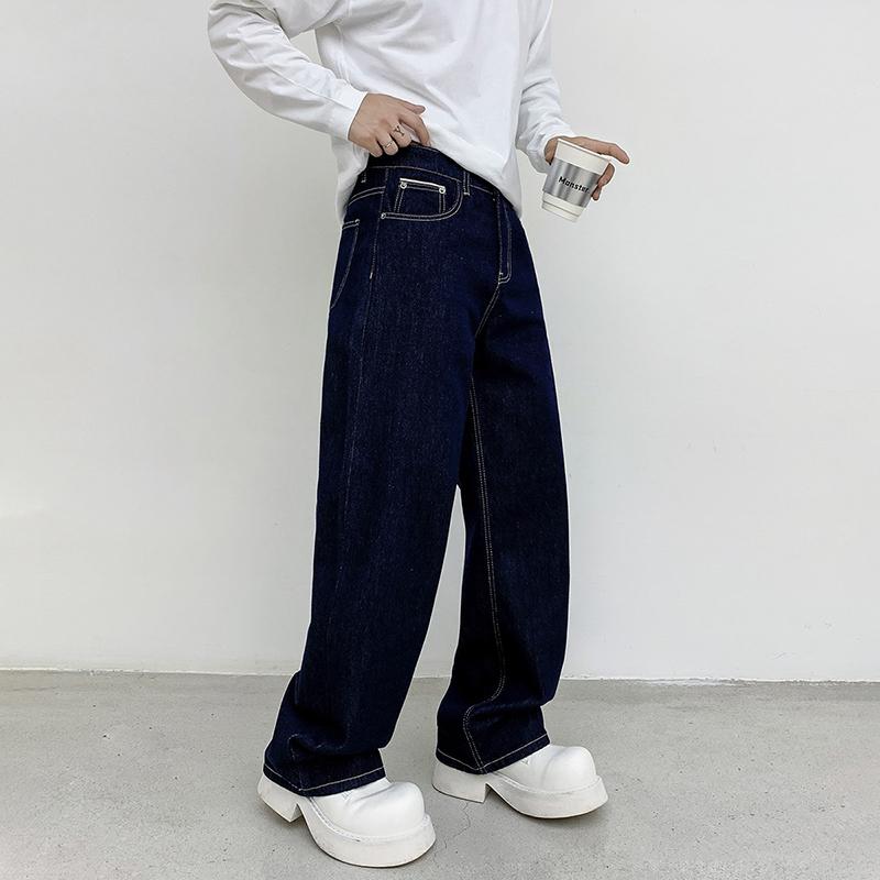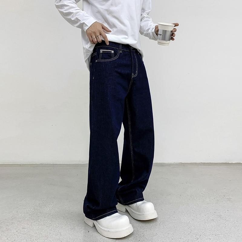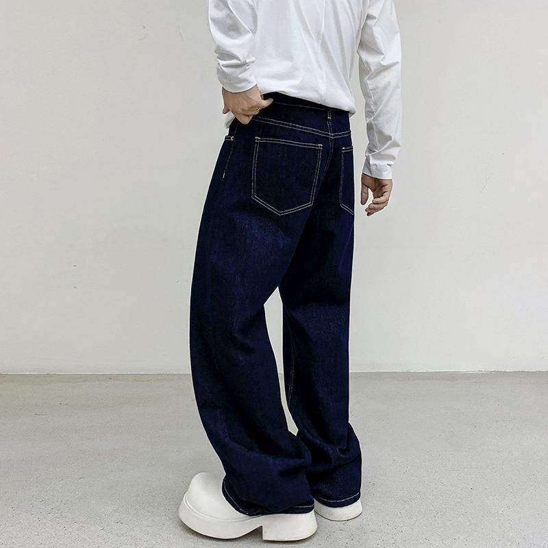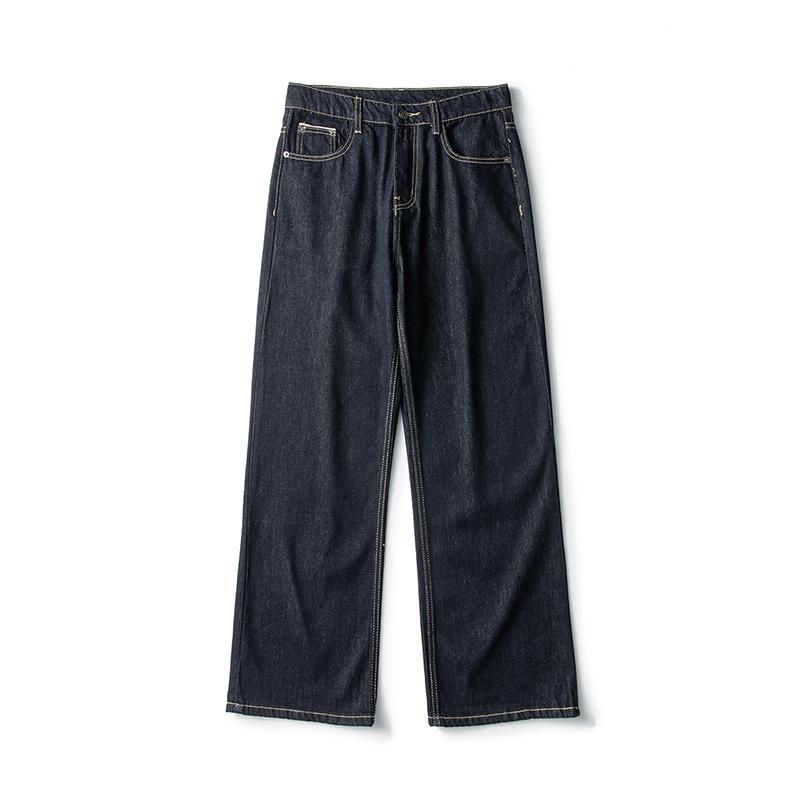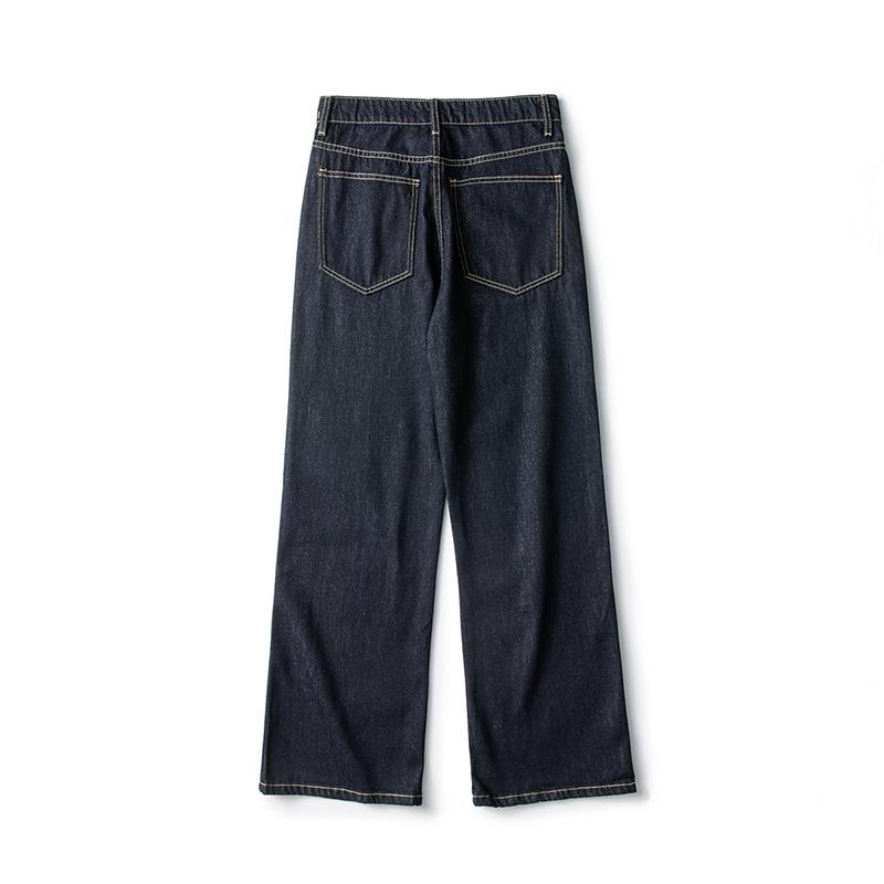 3. 【YS2185】潮牌寬鬆微喇基礎百搭痞帥原牛藍色水洗牛仔褲