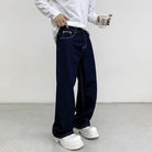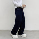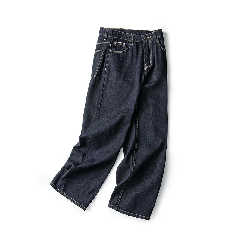 【YS2185】潮牌寬鬆微喇基礎百搭痞帥原牛藍色水洗牛仔褲