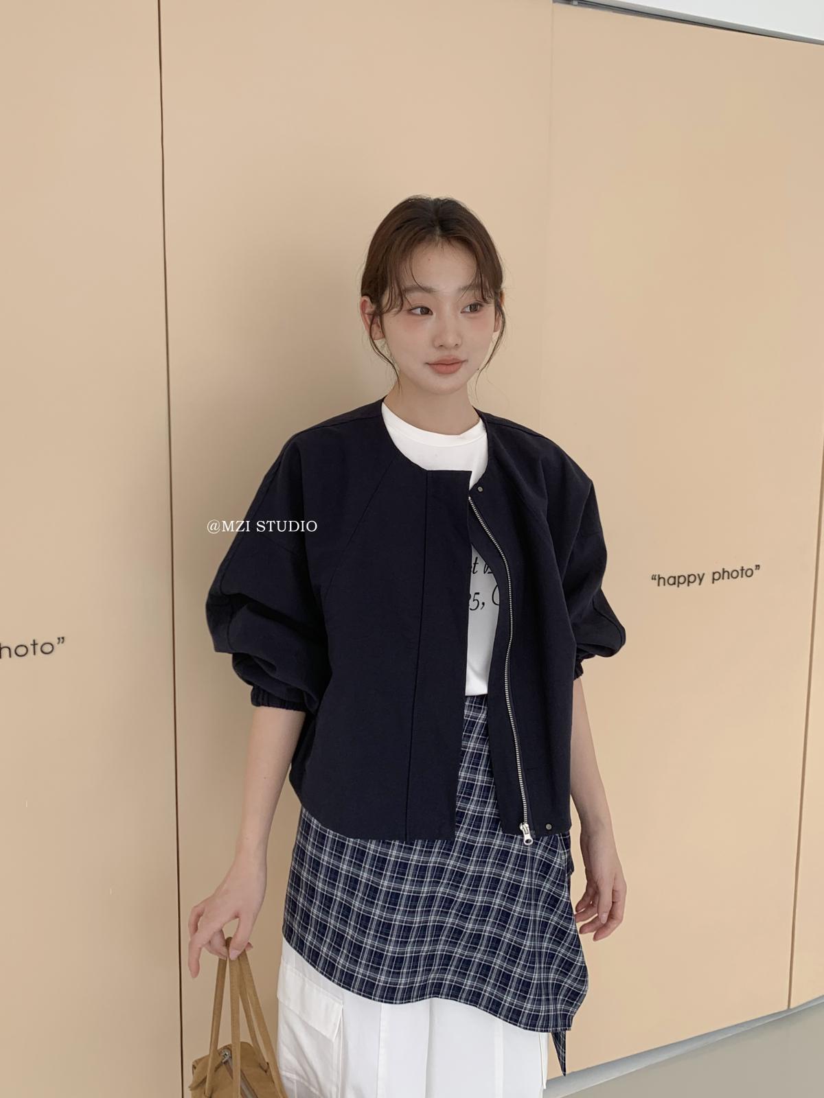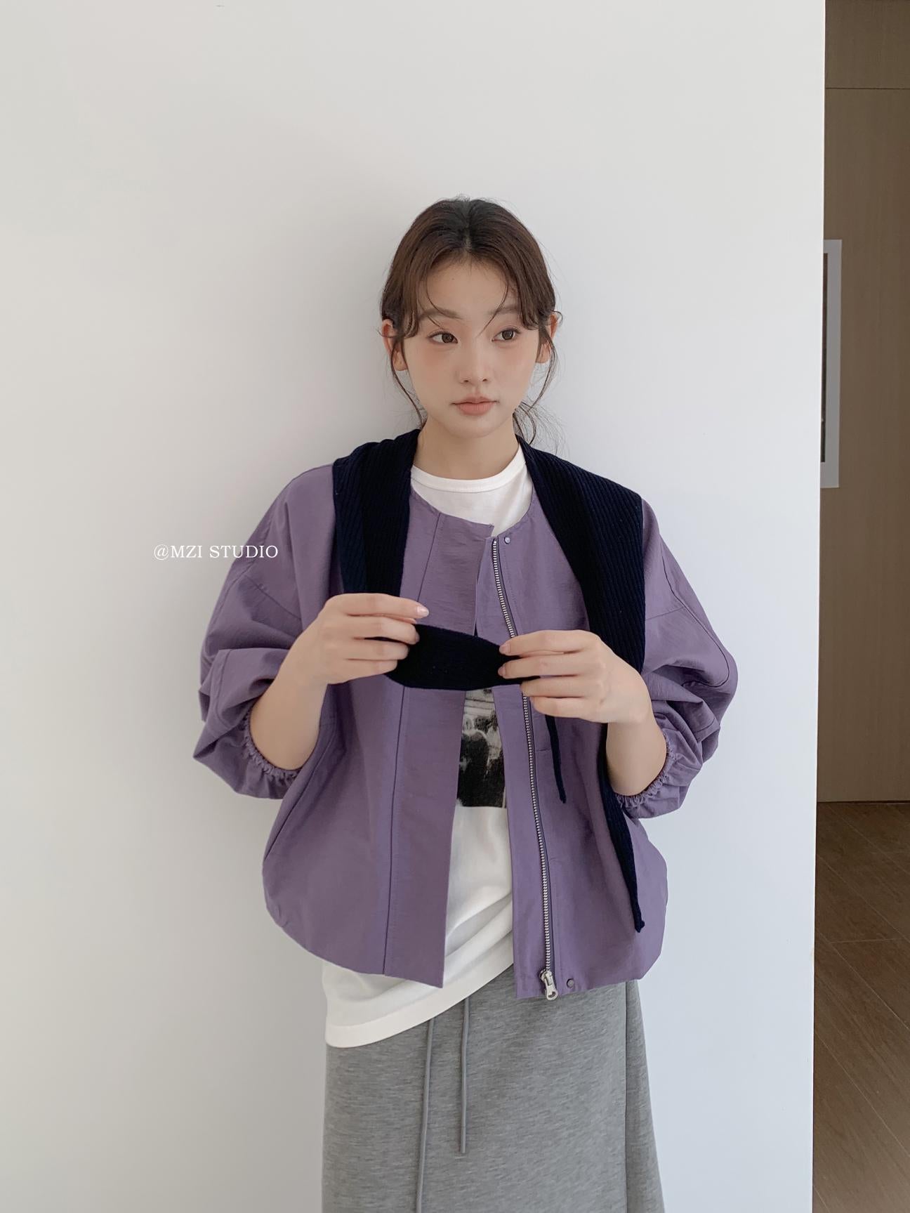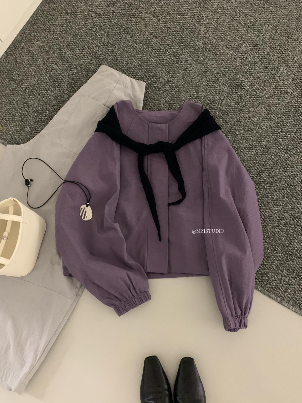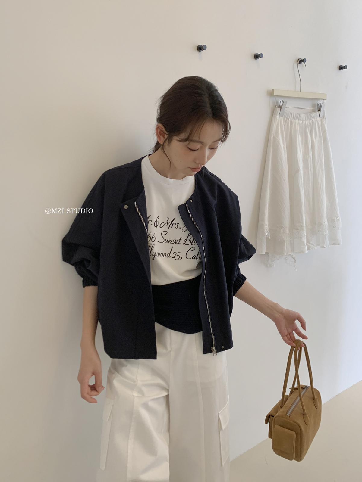 【C7012】韓系質感披肩兩穿屁簾夾克休閒寬鬆圓領極簡小個子減齡氣質短外套(配披肩)