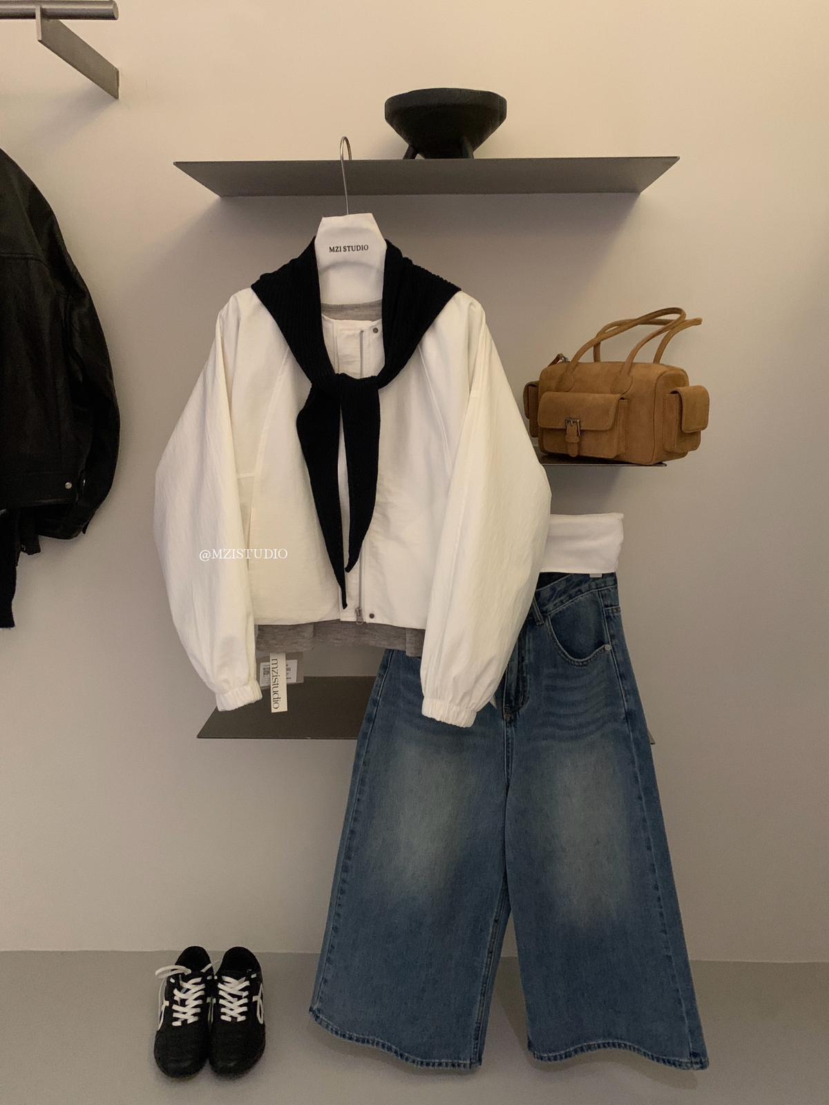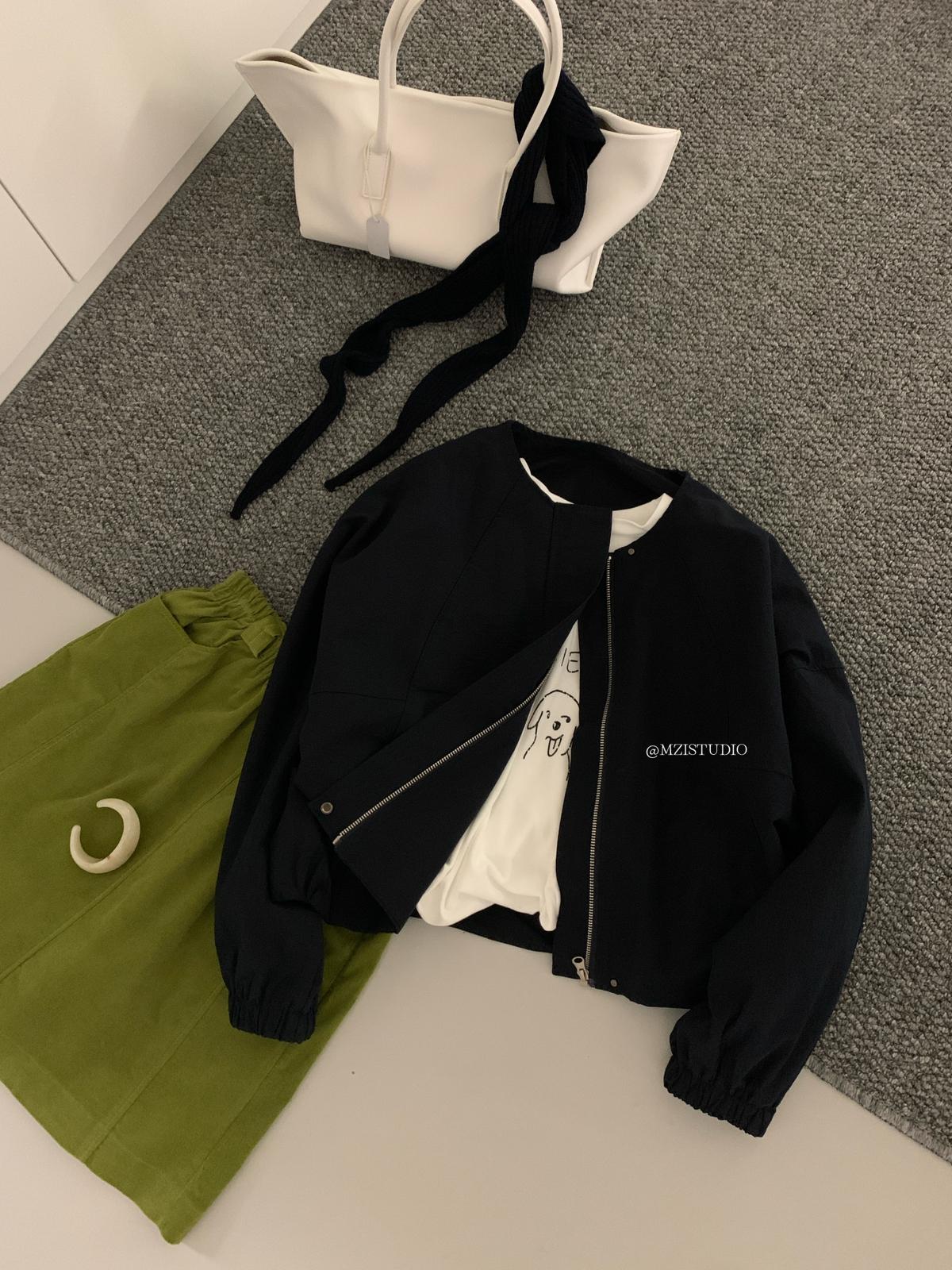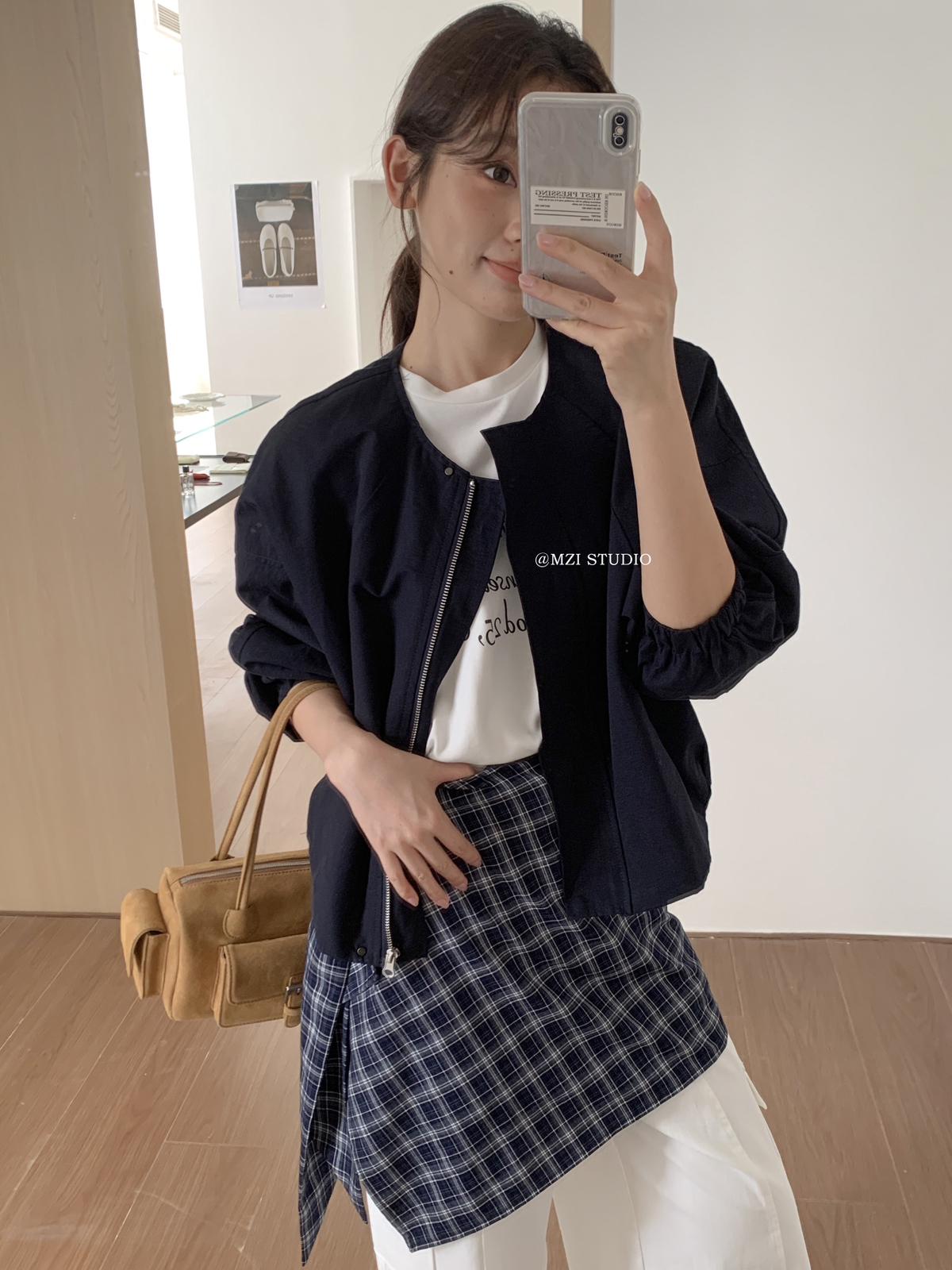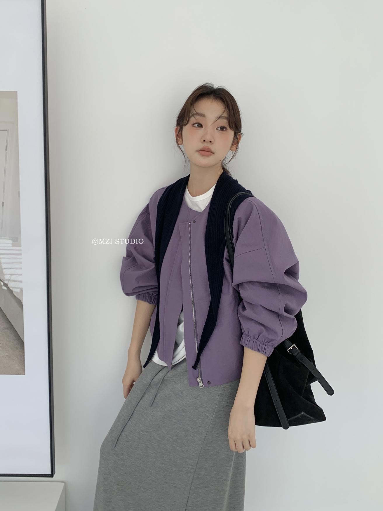 【C7012】韓系質感披肩兩穿屁簾夾克休閒寬鬆圓領極簡小個子減齡氣質短外套(配披肩)