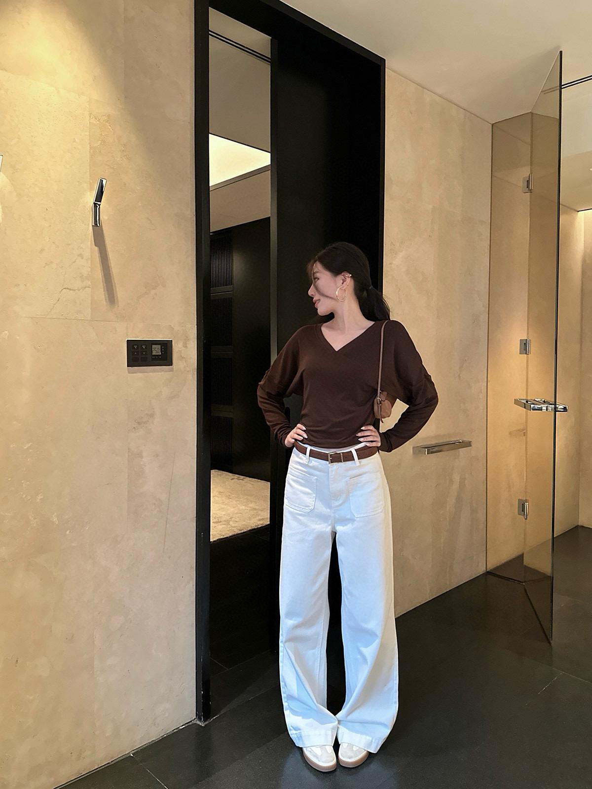 3. 【C7045】氣質百搭寬鬆直筒闊腿牛仔褲新款休閒褲