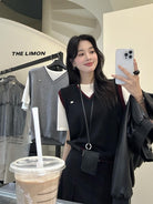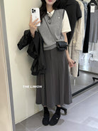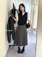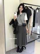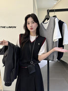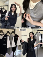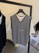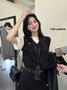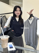 【C7046】短袖拼接V領馬甲針織衫(含9%羊毛)