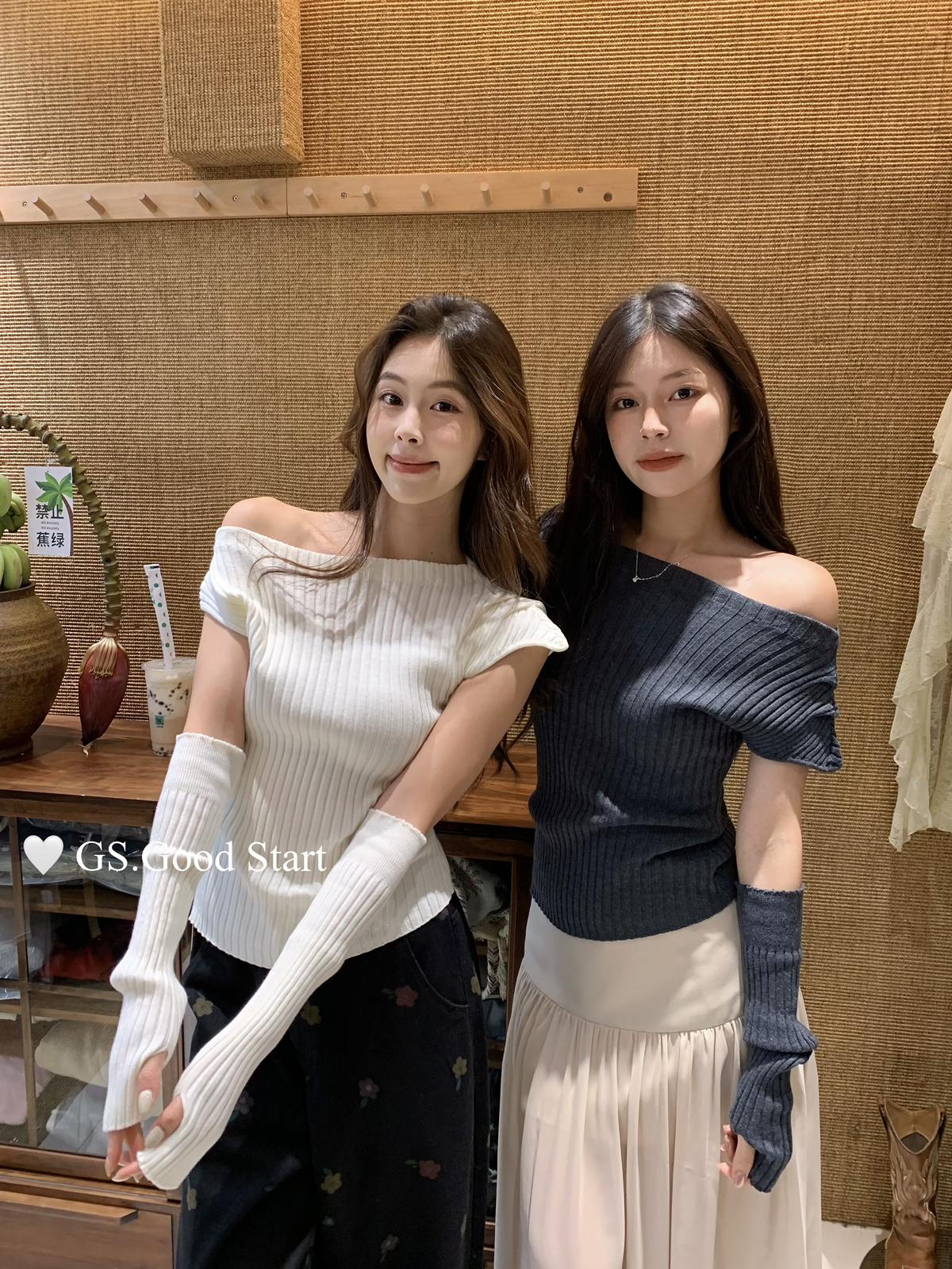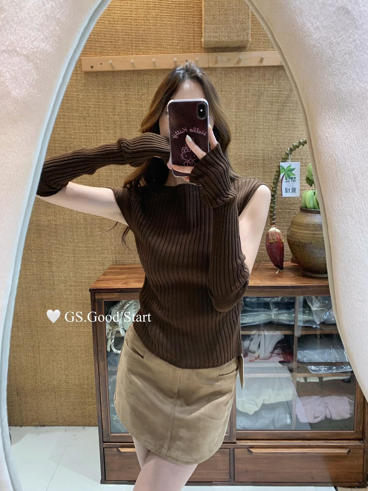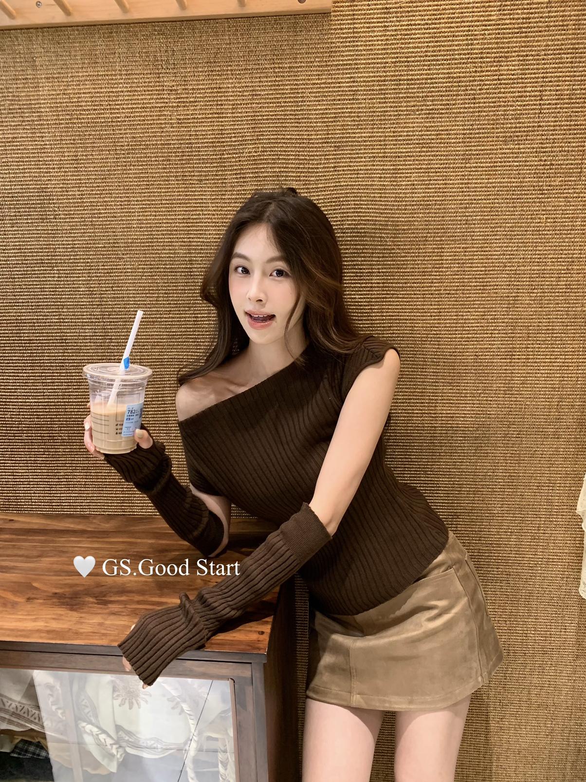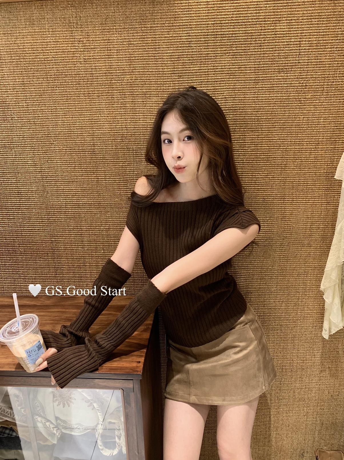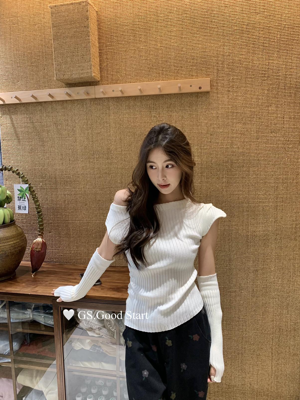 【C7058】熱度超高!千禧時尚回潮~秋季復古時髦辣妹斜肩袖套針織背心(配可拆卸袖套)