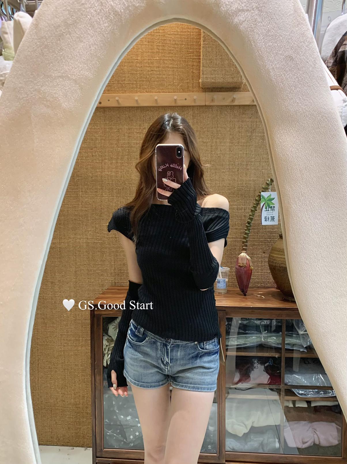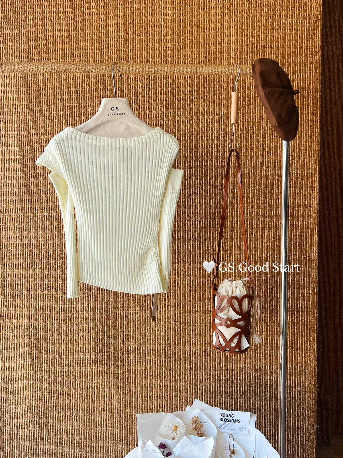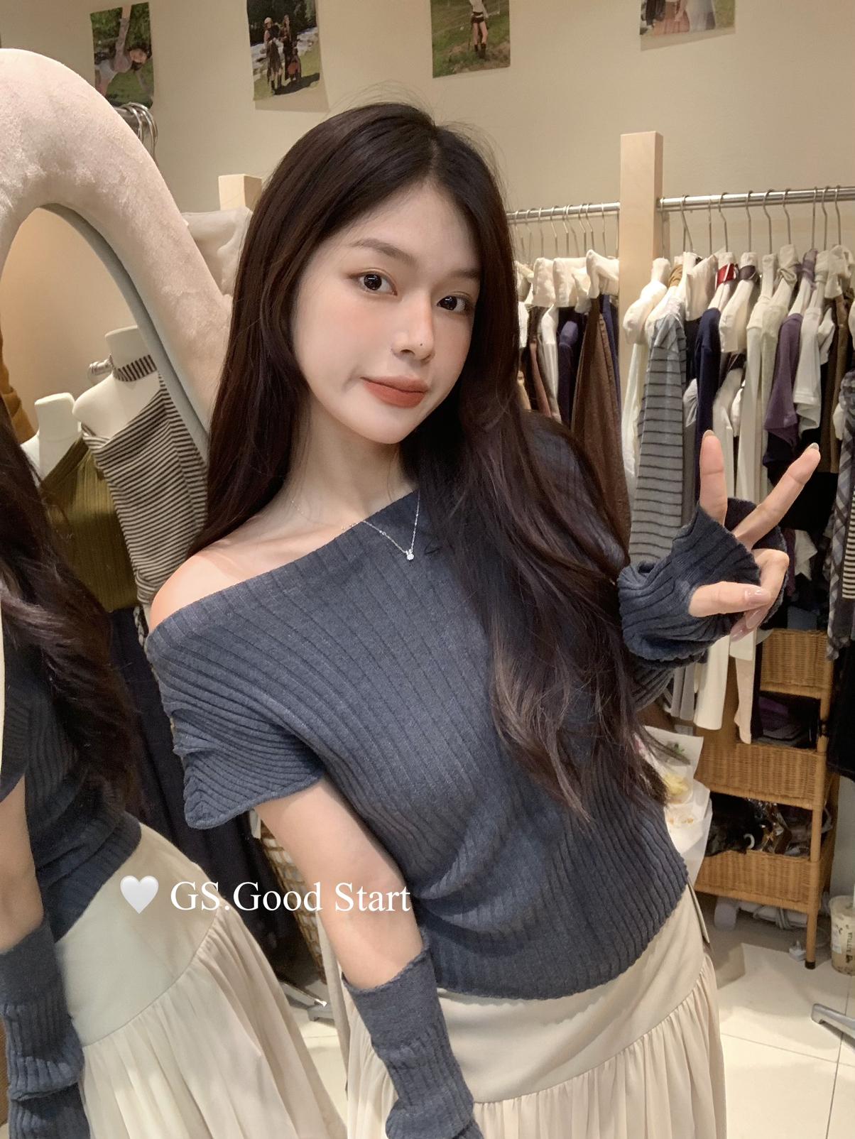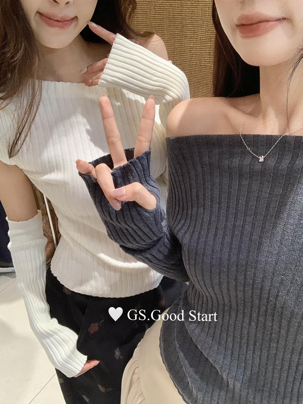 【C7058】熱度超高!千禧時尚回潮~秋季復古時髦辣妹斜肩袖套針織背心(配可拆卸袖套)