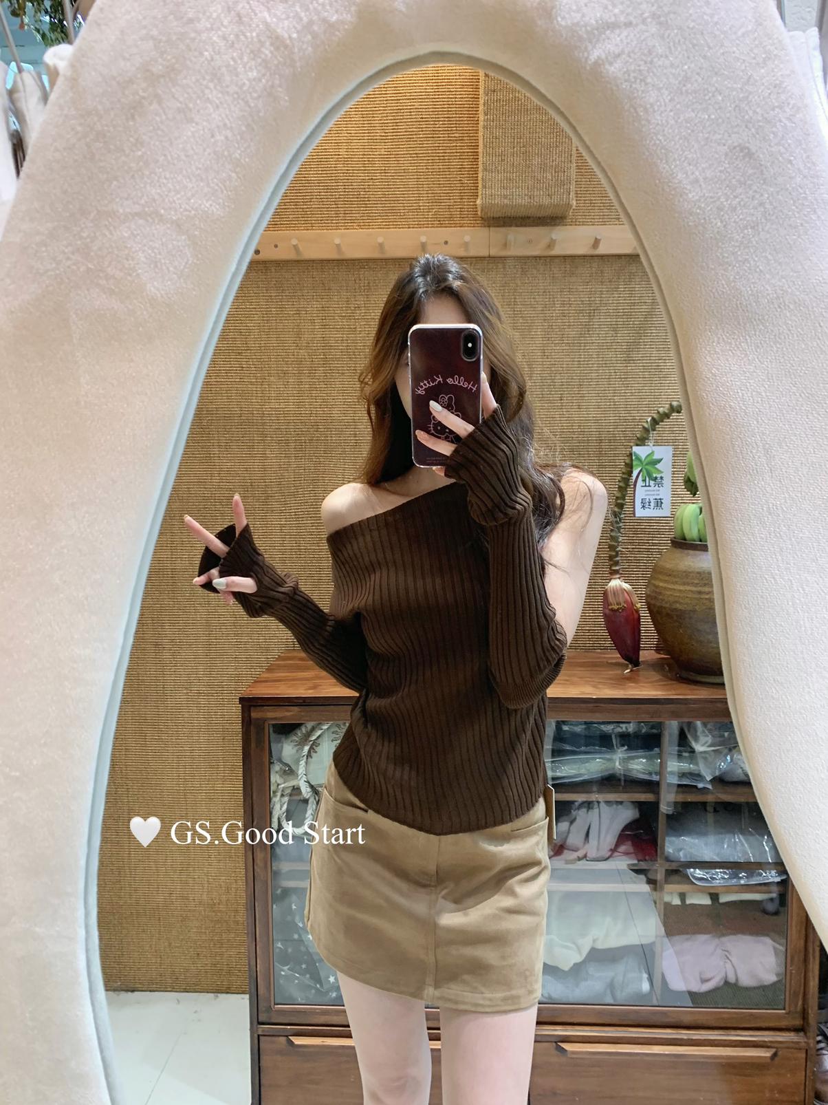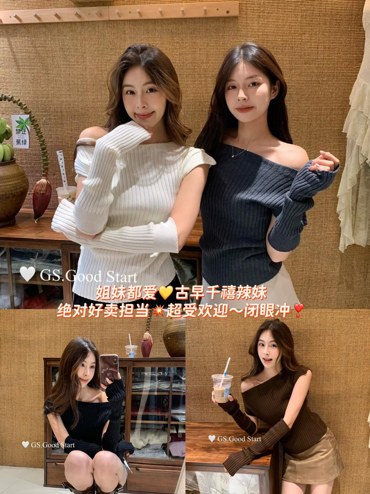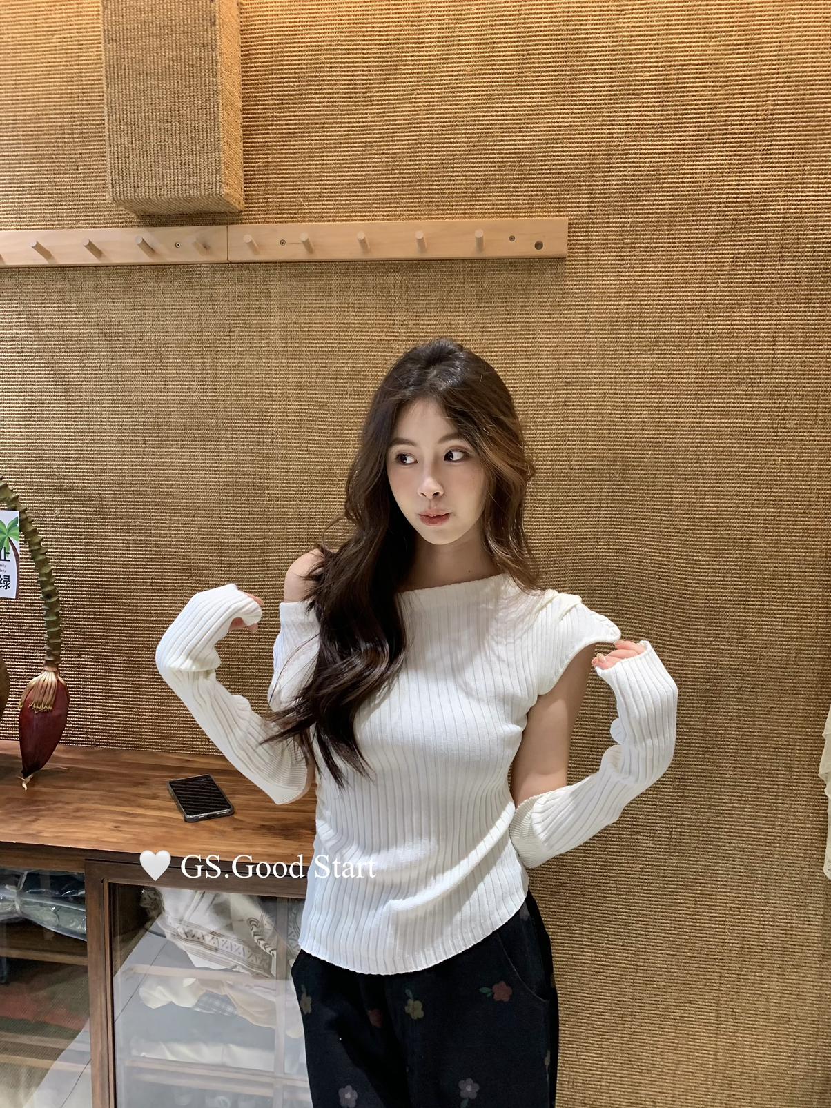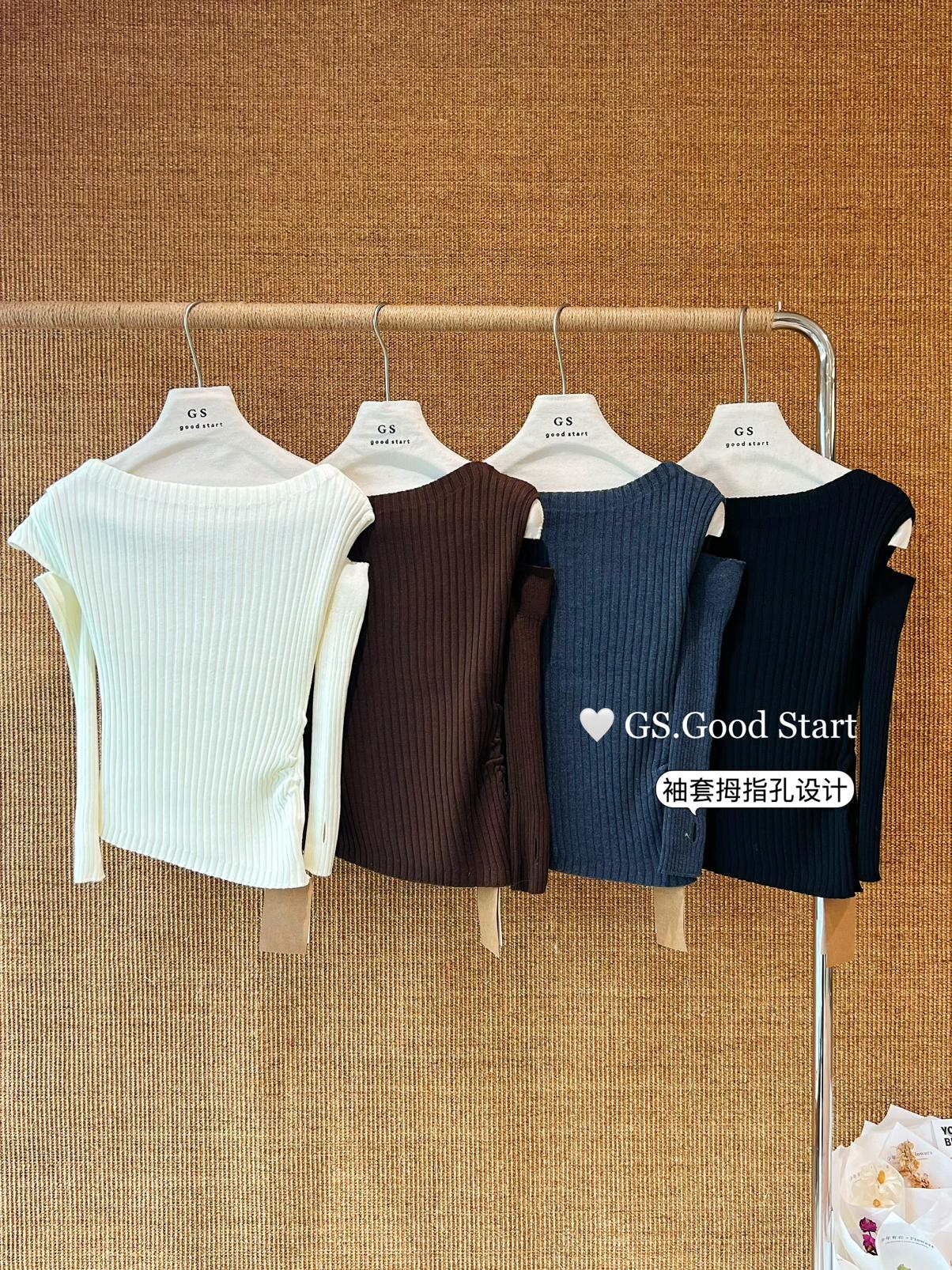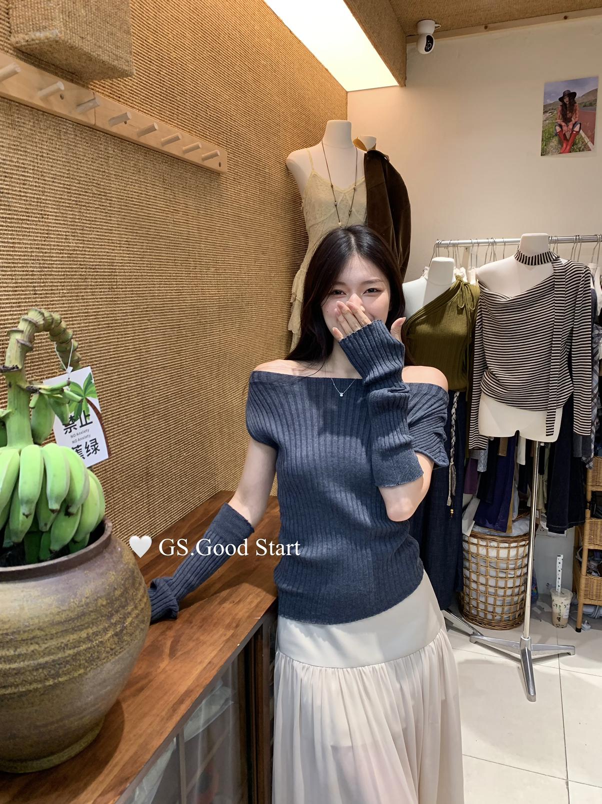 【C7058】熱度超高!千禧時尚回潮~秋季復古時髦辣妹斜肩袖套針織背心(配可拆卸袖套)
