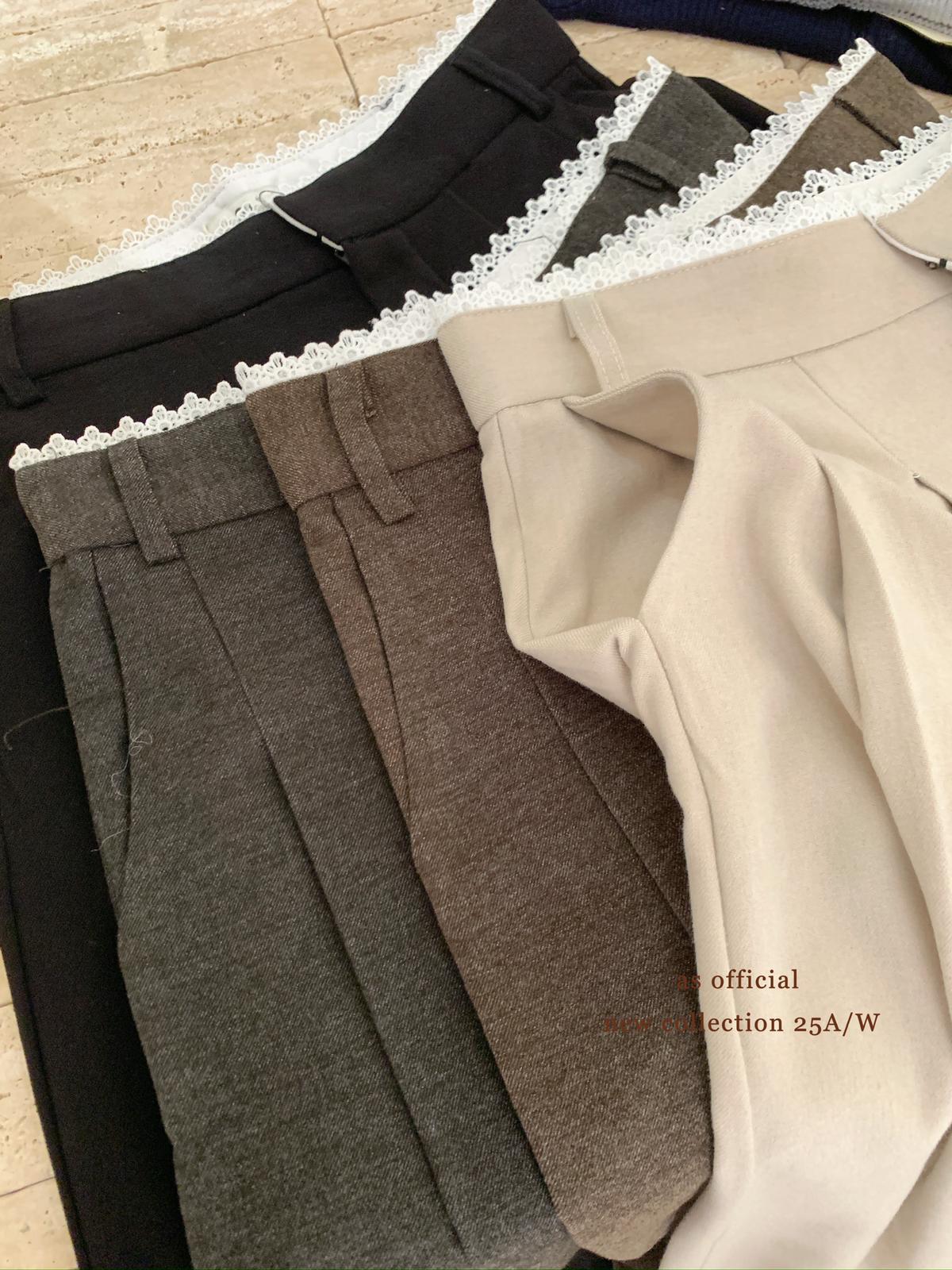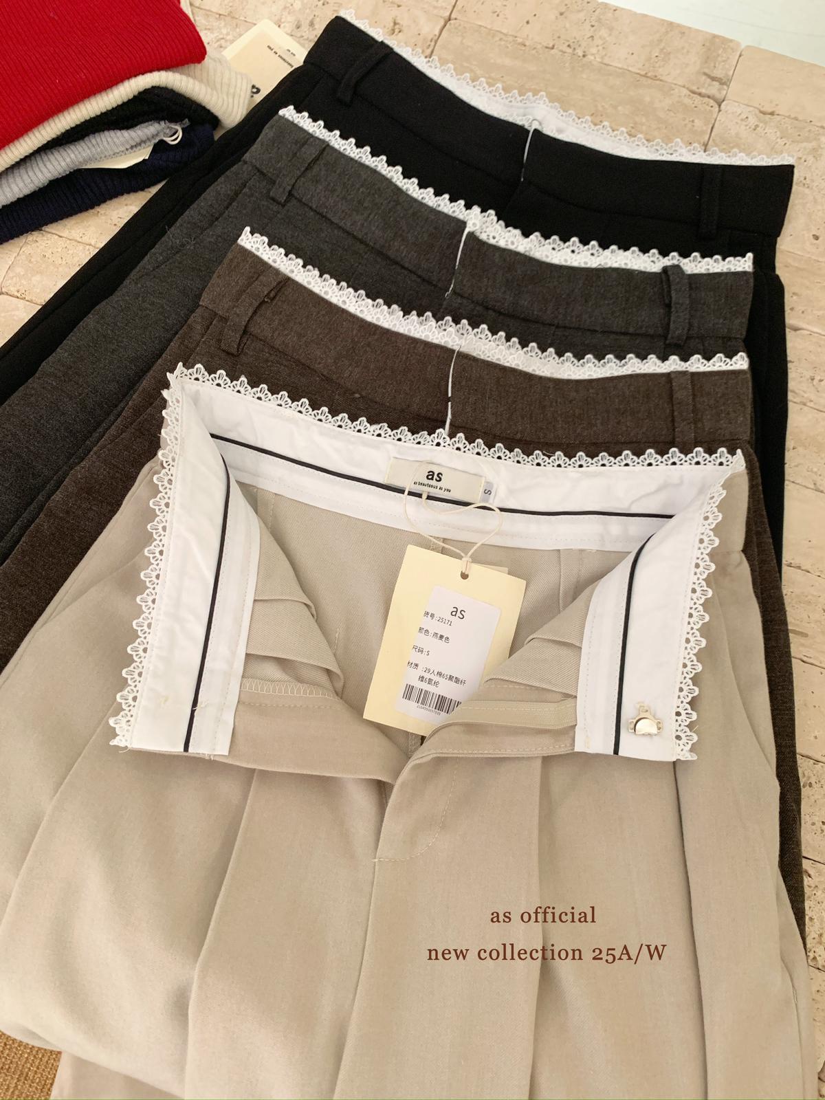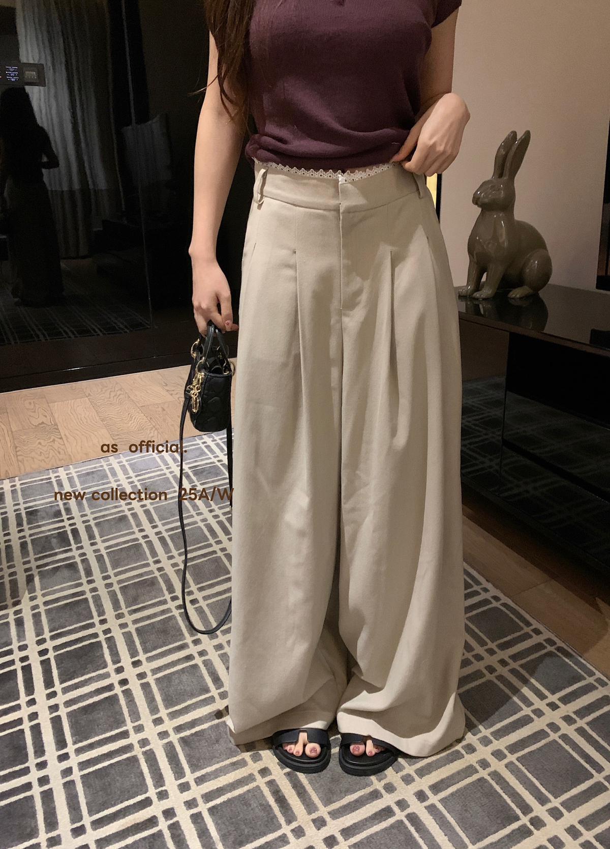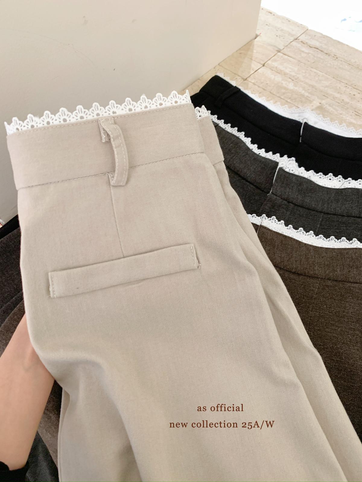 【C7063】顯高顯瘦‘梨形福音’ 日常通勤無腦搭•腰頭蕾絲拼接闊腿西褲休閒褲