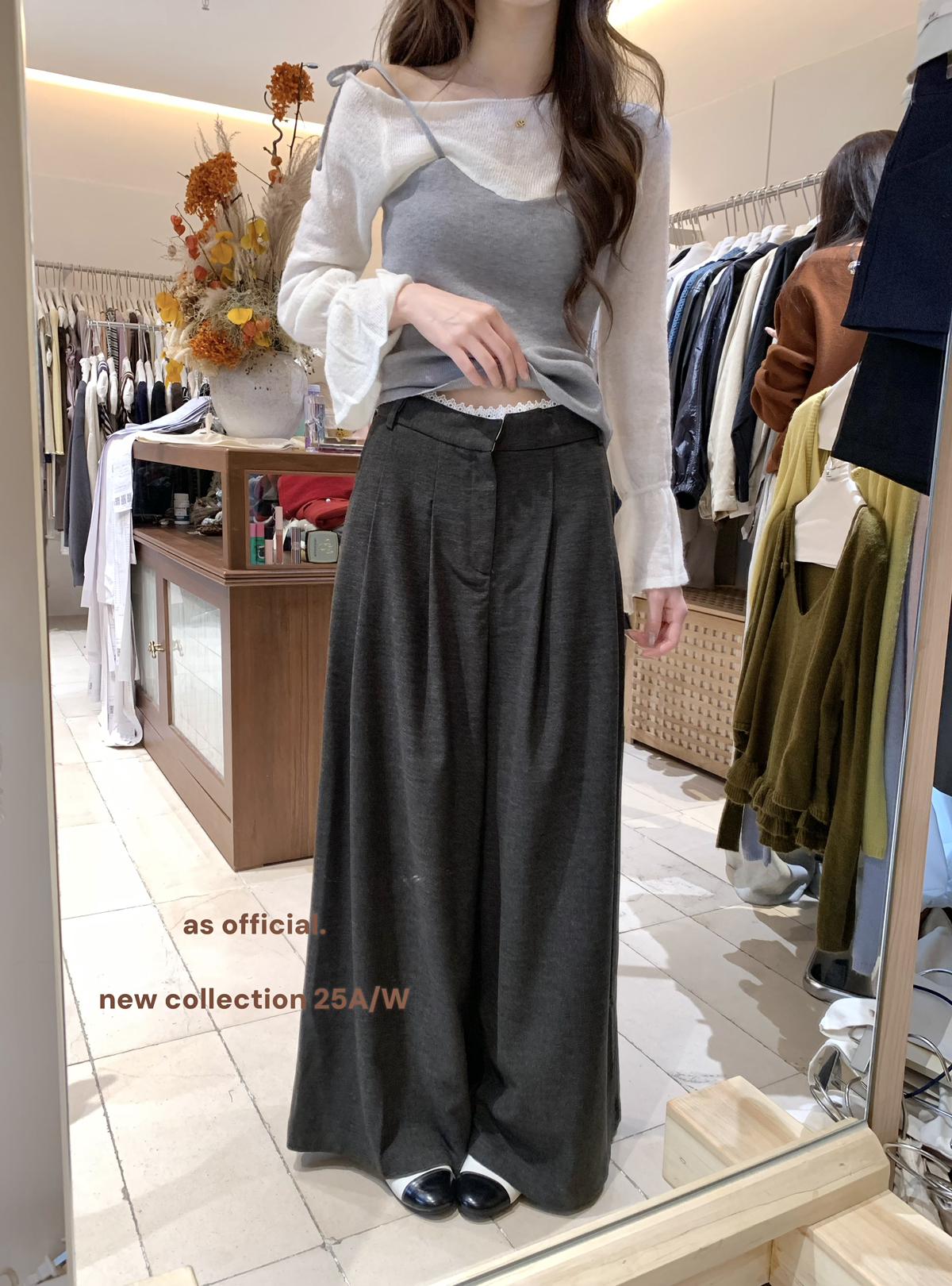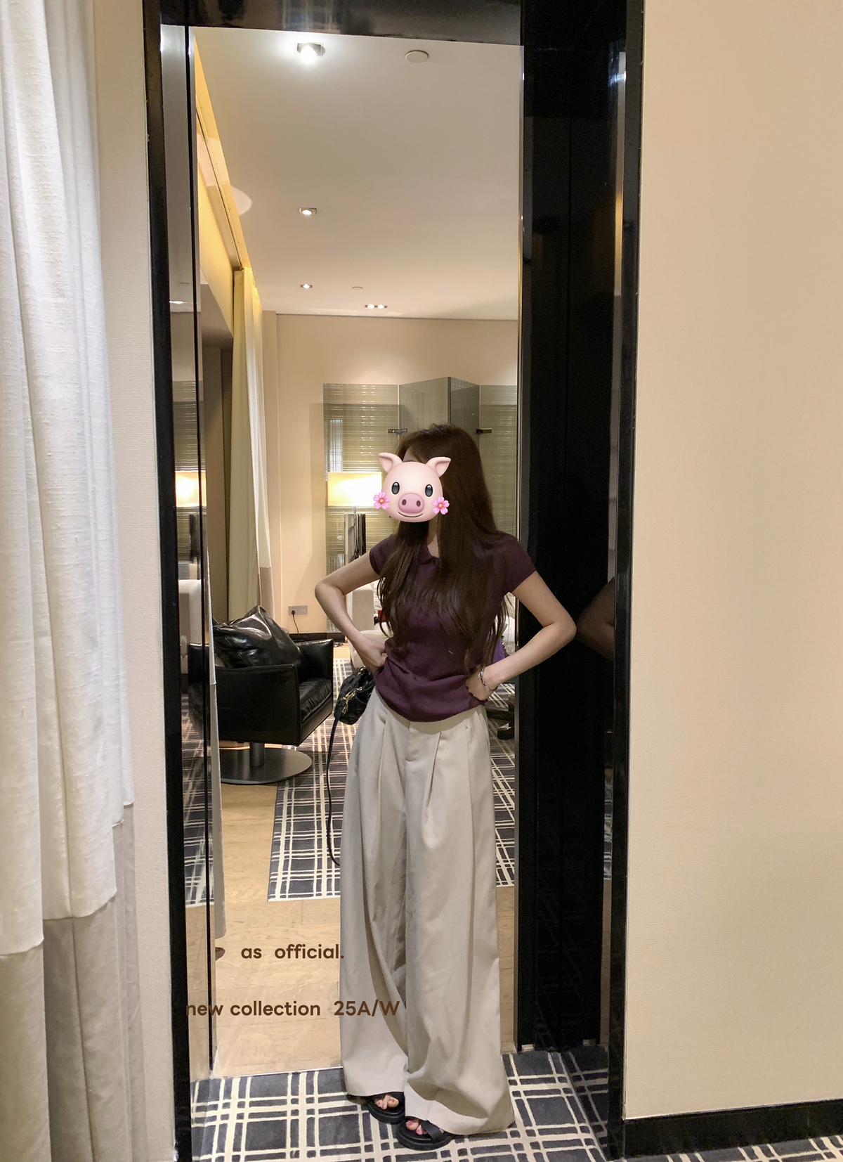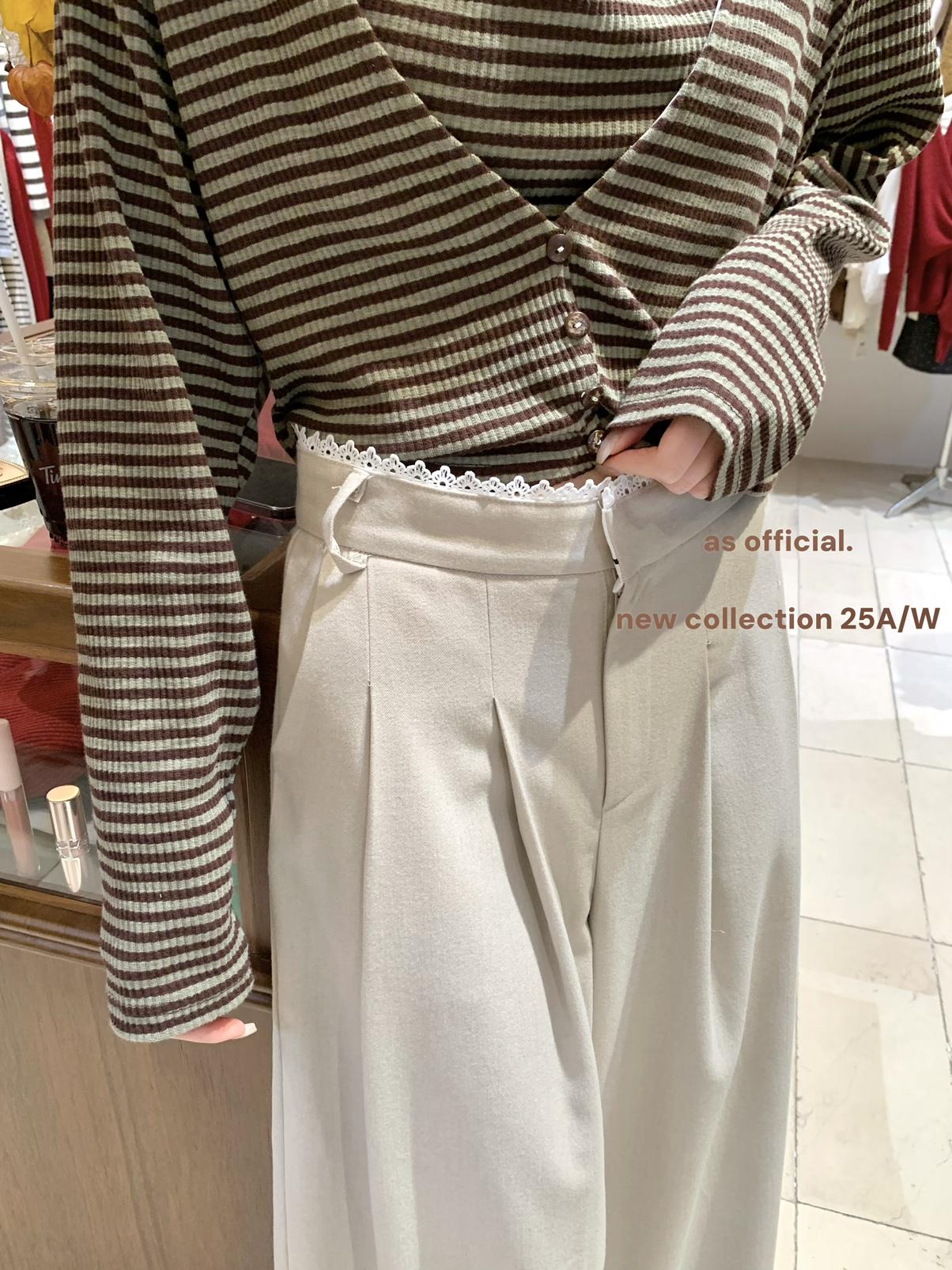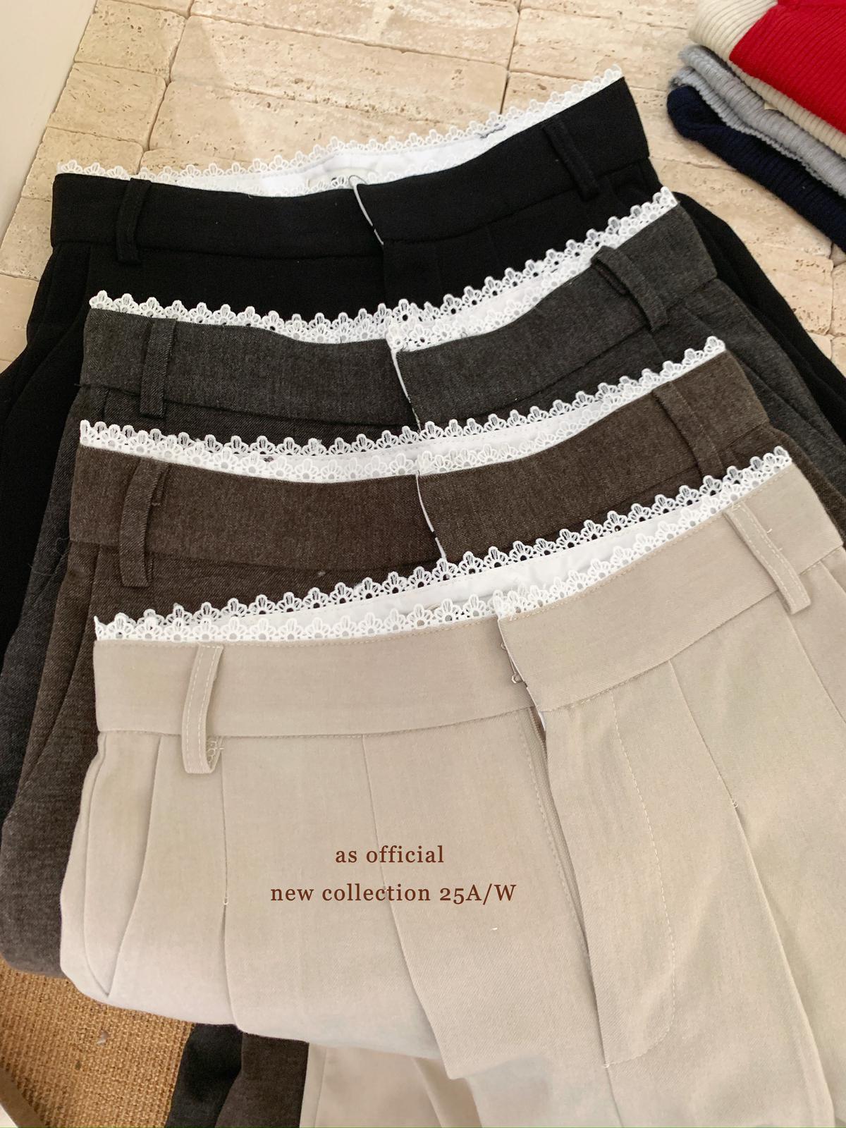 【C7063】顯高顯瘦‘梨形福音’ 日常通勤無腦搭•腰頭蕾絲拼接闊腿西褲休閒褲