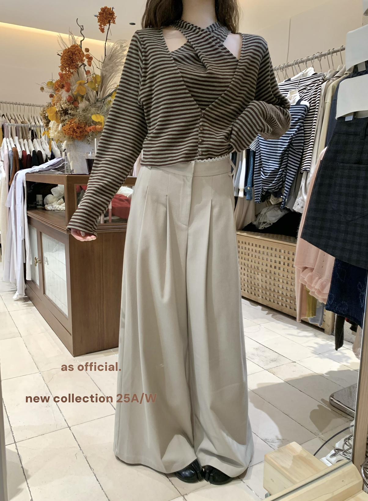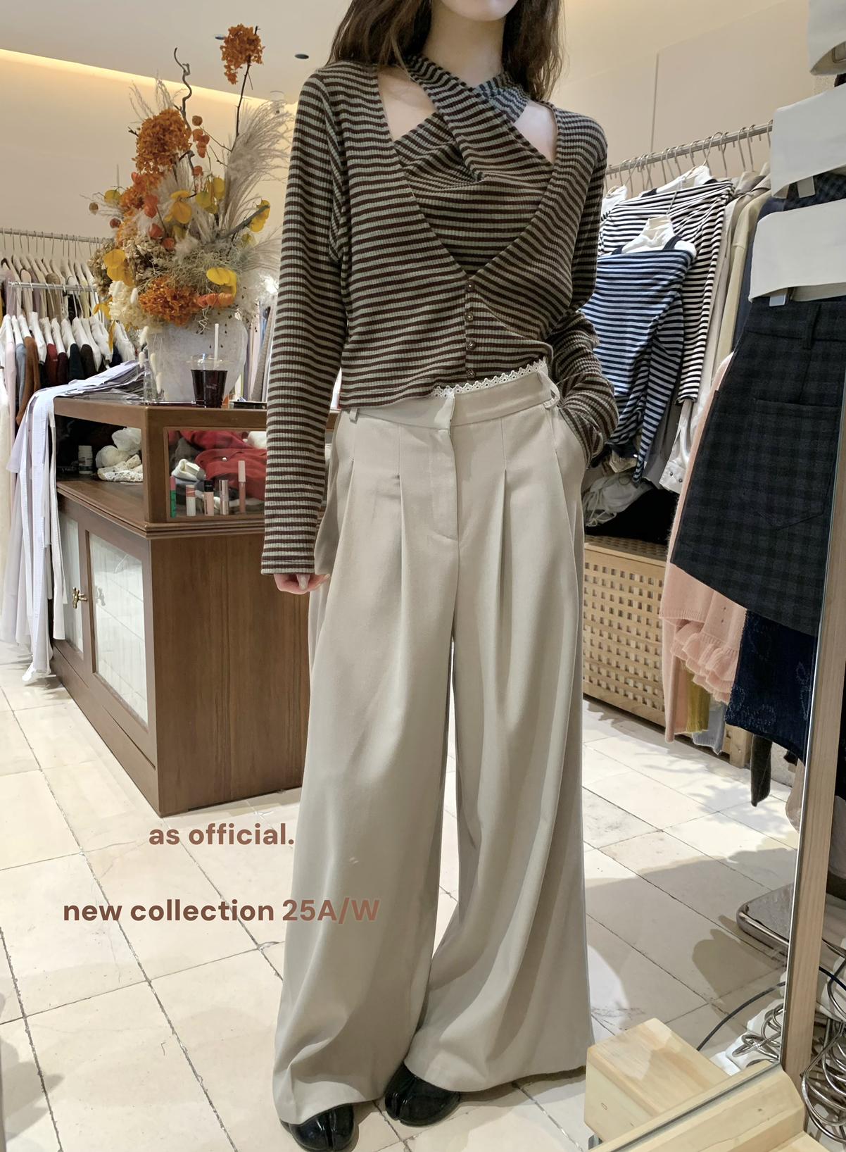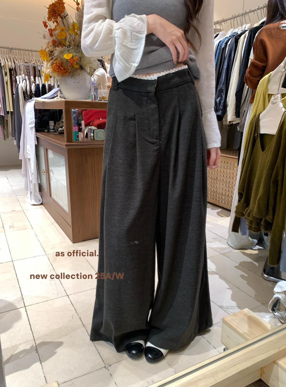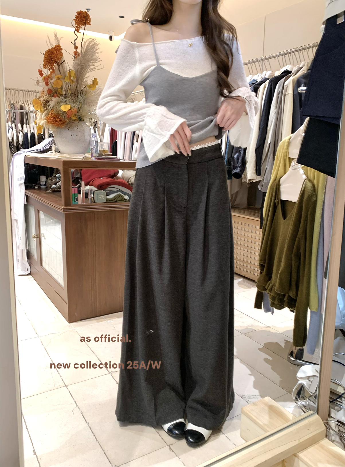 【C7063】顯高顯瘦‘梨形福音’ 日常通勤無腦搭•腰頭蕾絲拼接闊腿西褲休閒褲