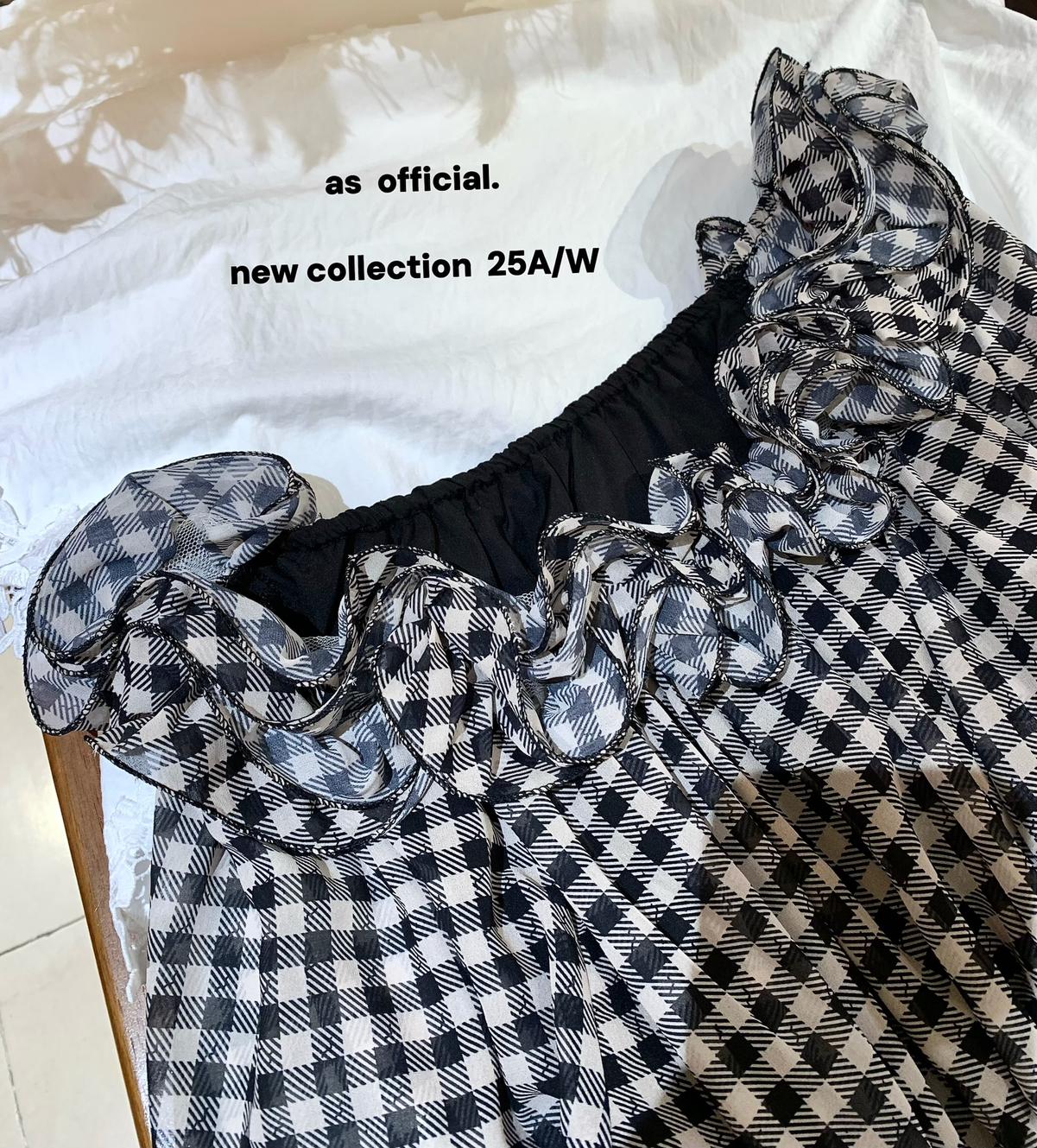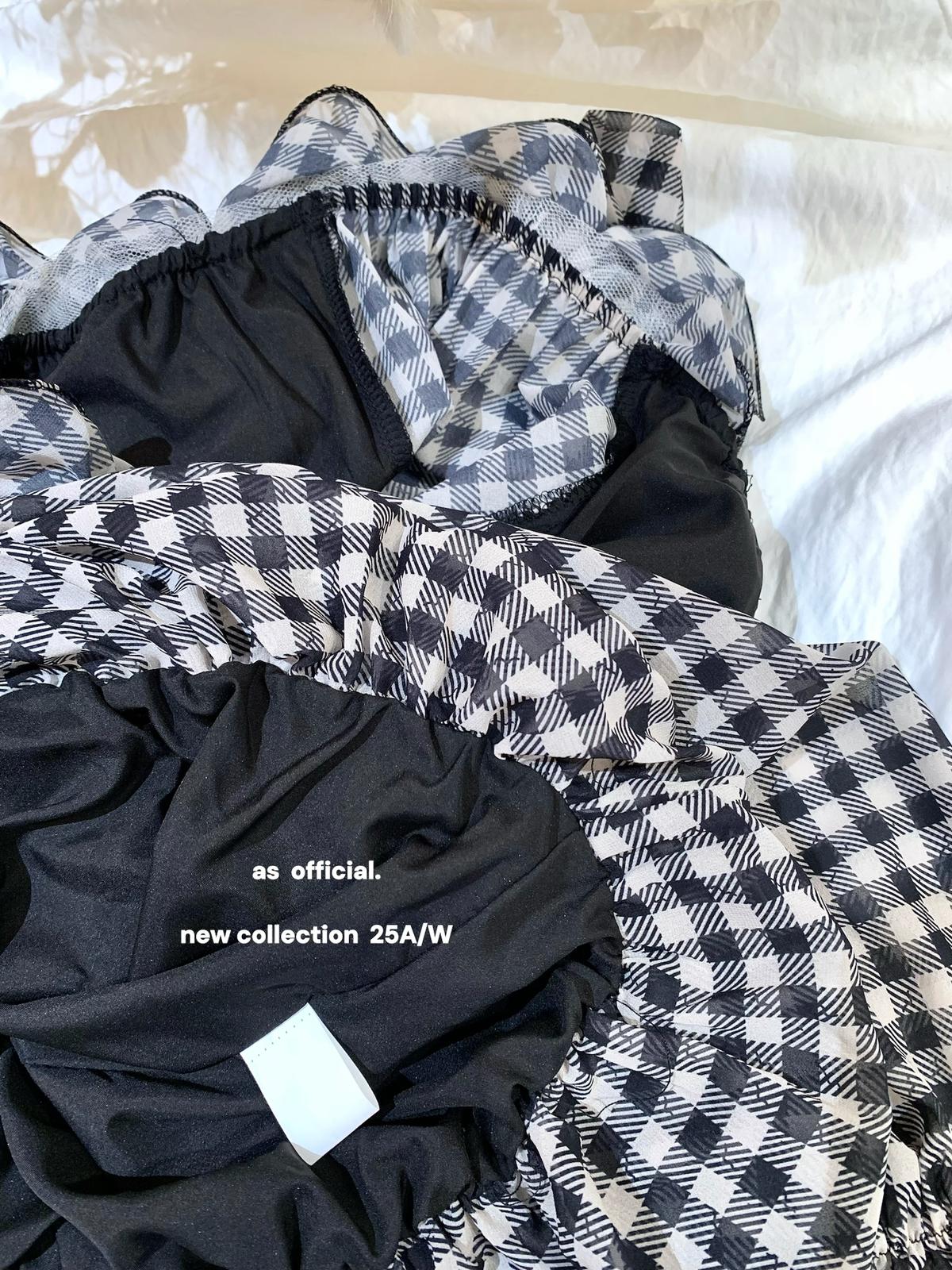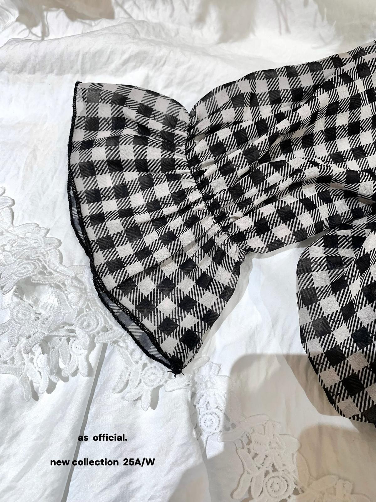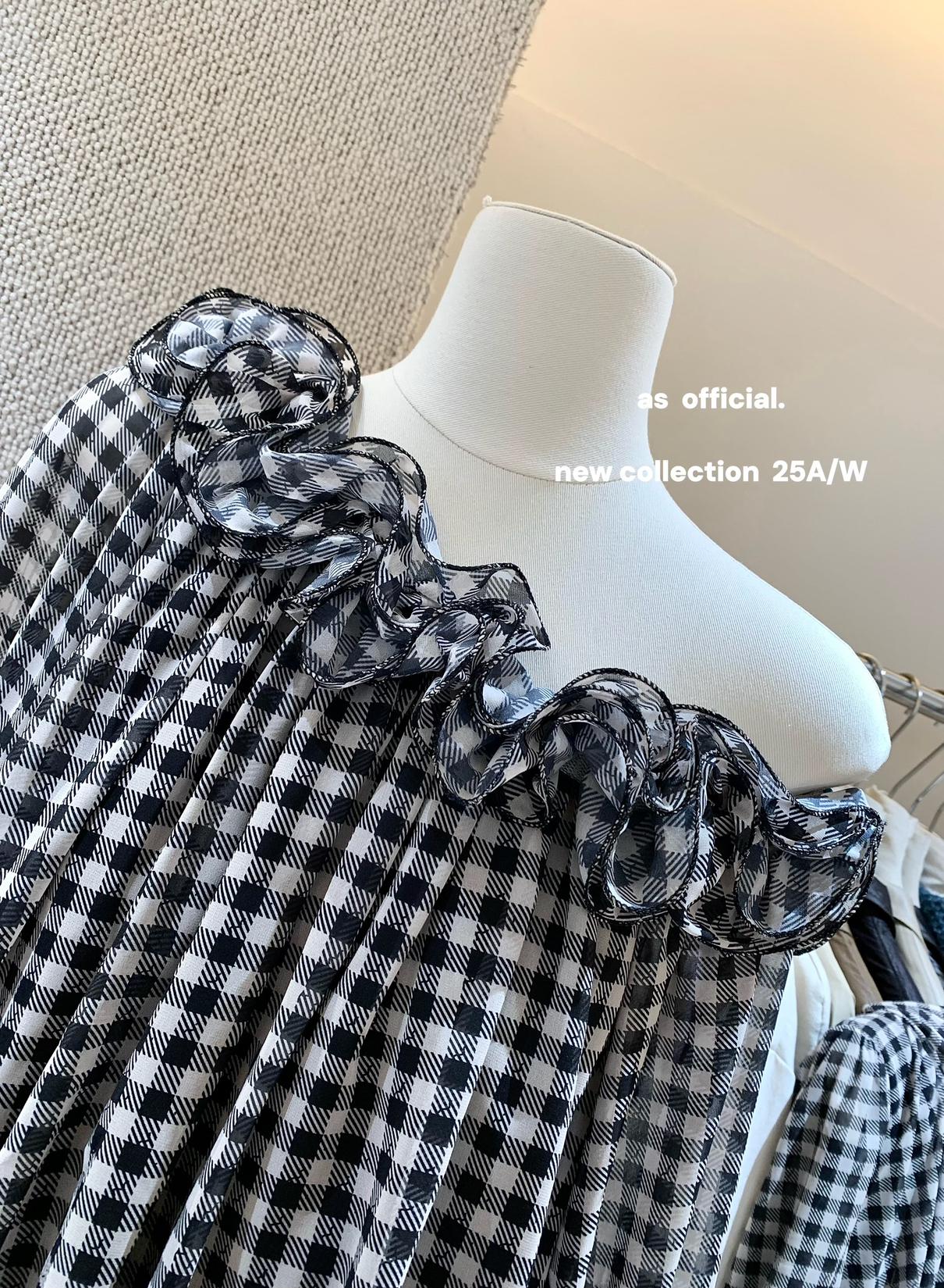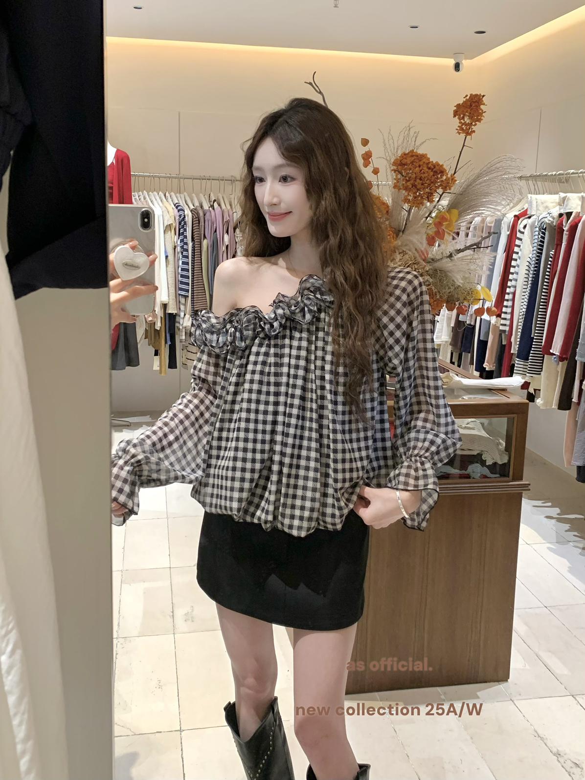 【C7065】銷冠系列款!美麗無上限·復古格紋 斜肩雪紡衫小衫