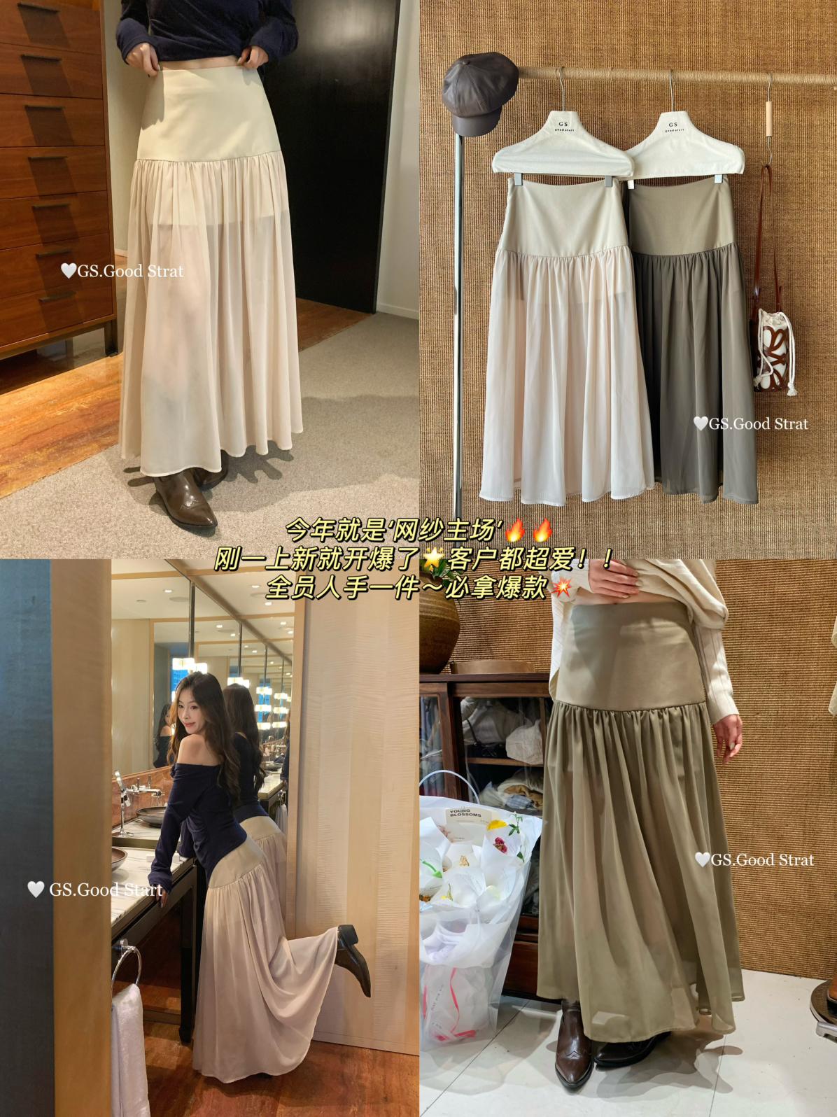 3. 【C7061】爆火流量款!人手一件!秋季气质复古网纱拼接百搭半身裙