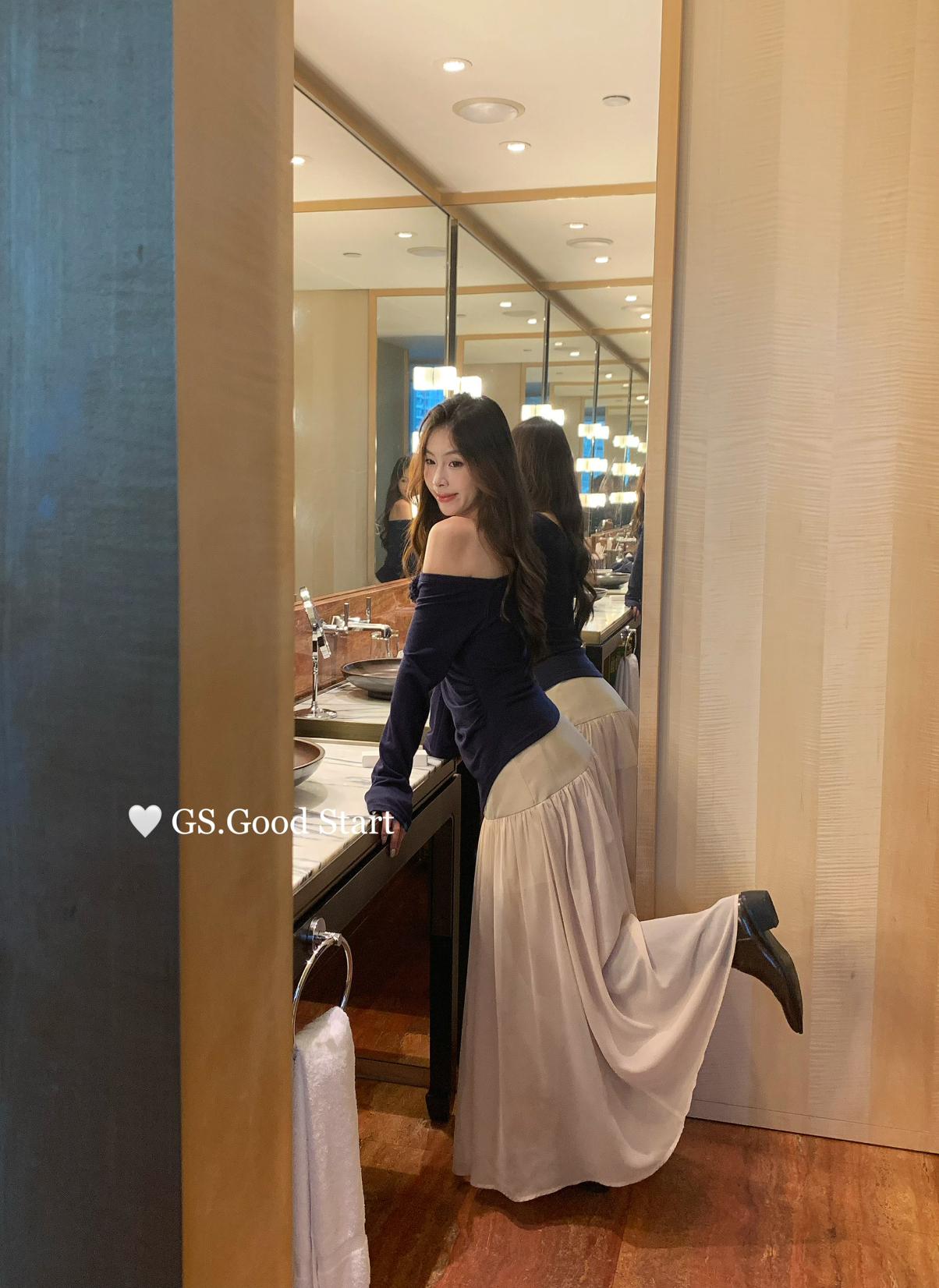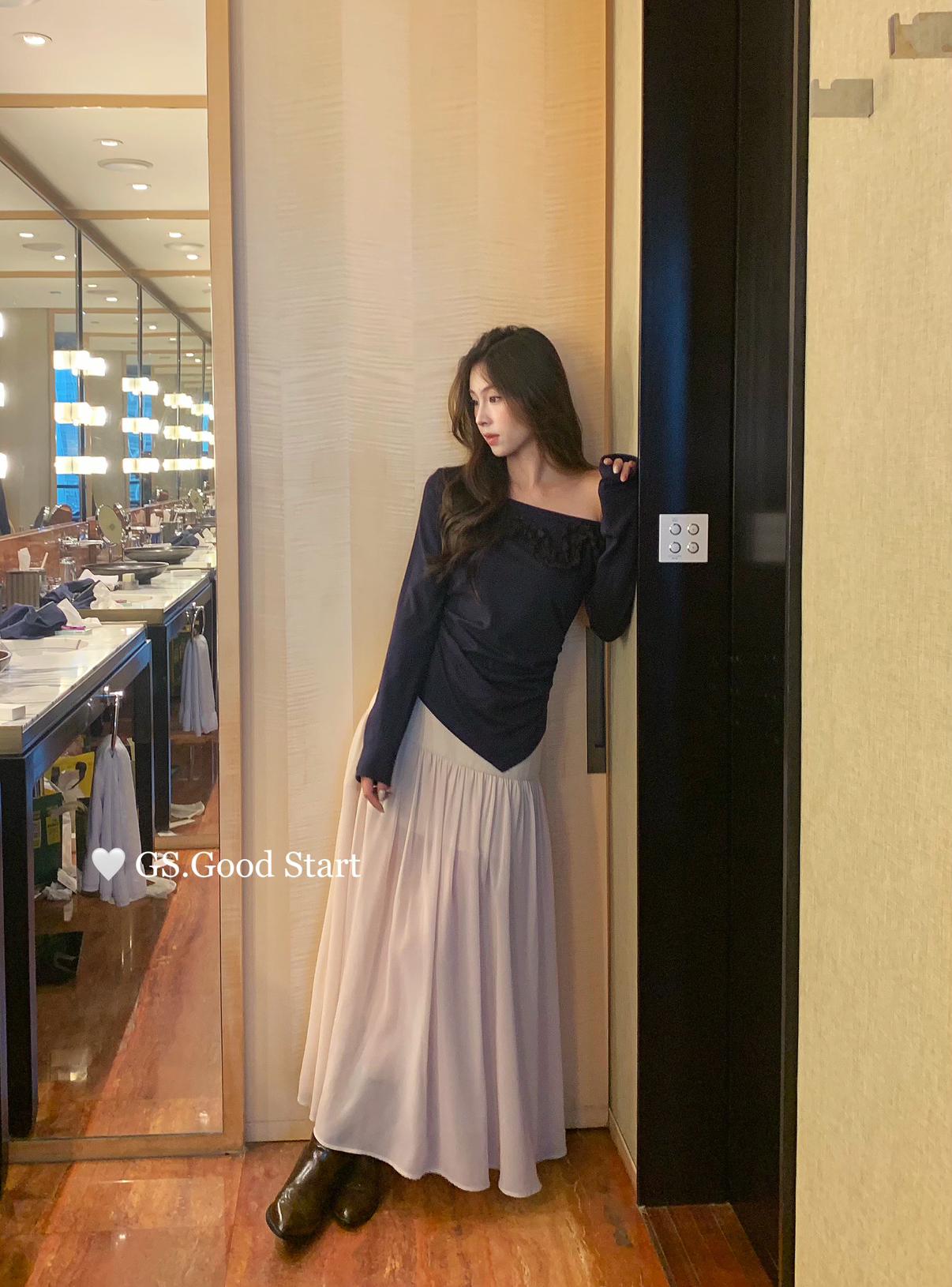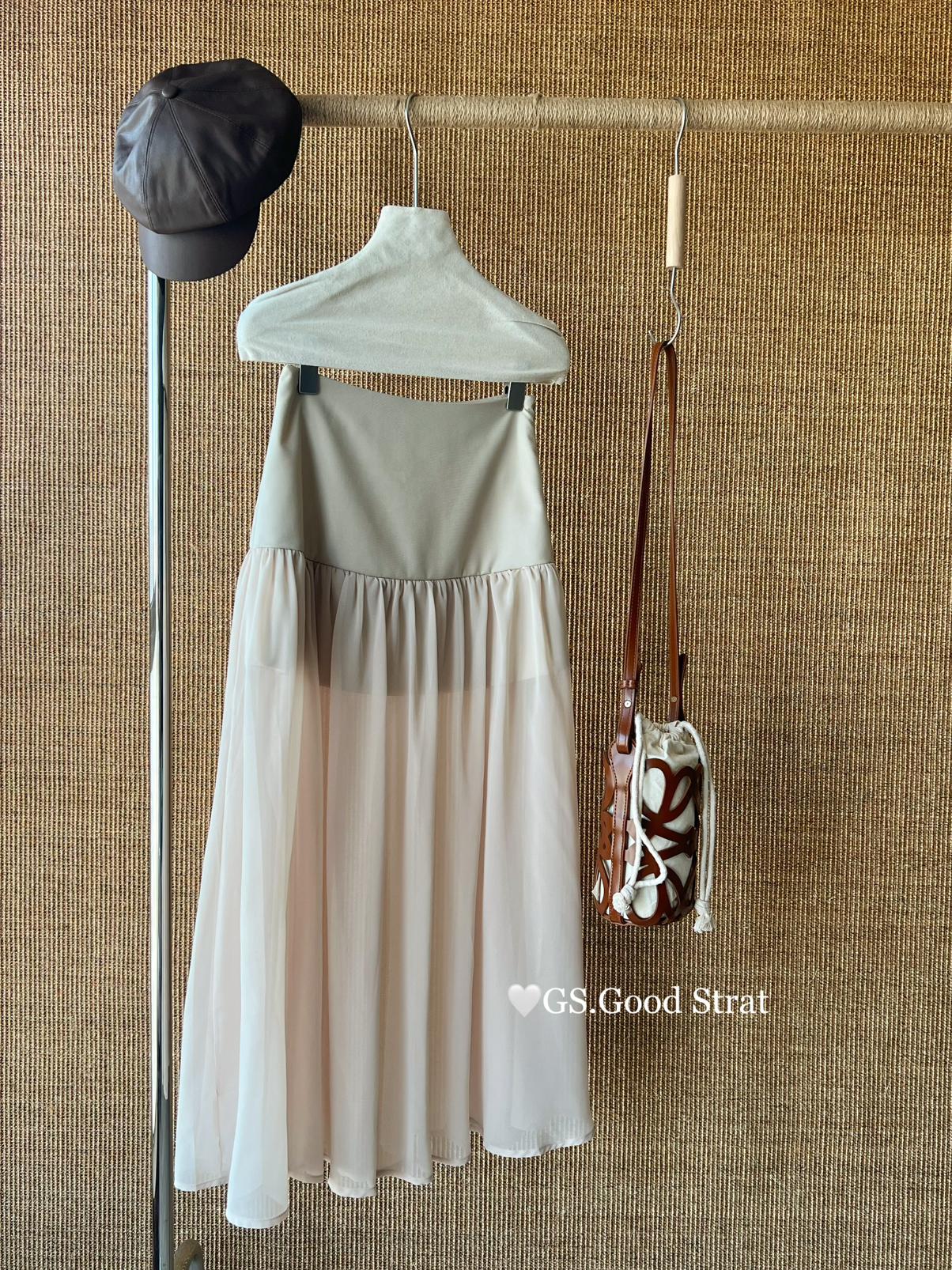 【C7061】爆火流量款!人手一件!秋季气质复古网纱拼接百搭半身裙