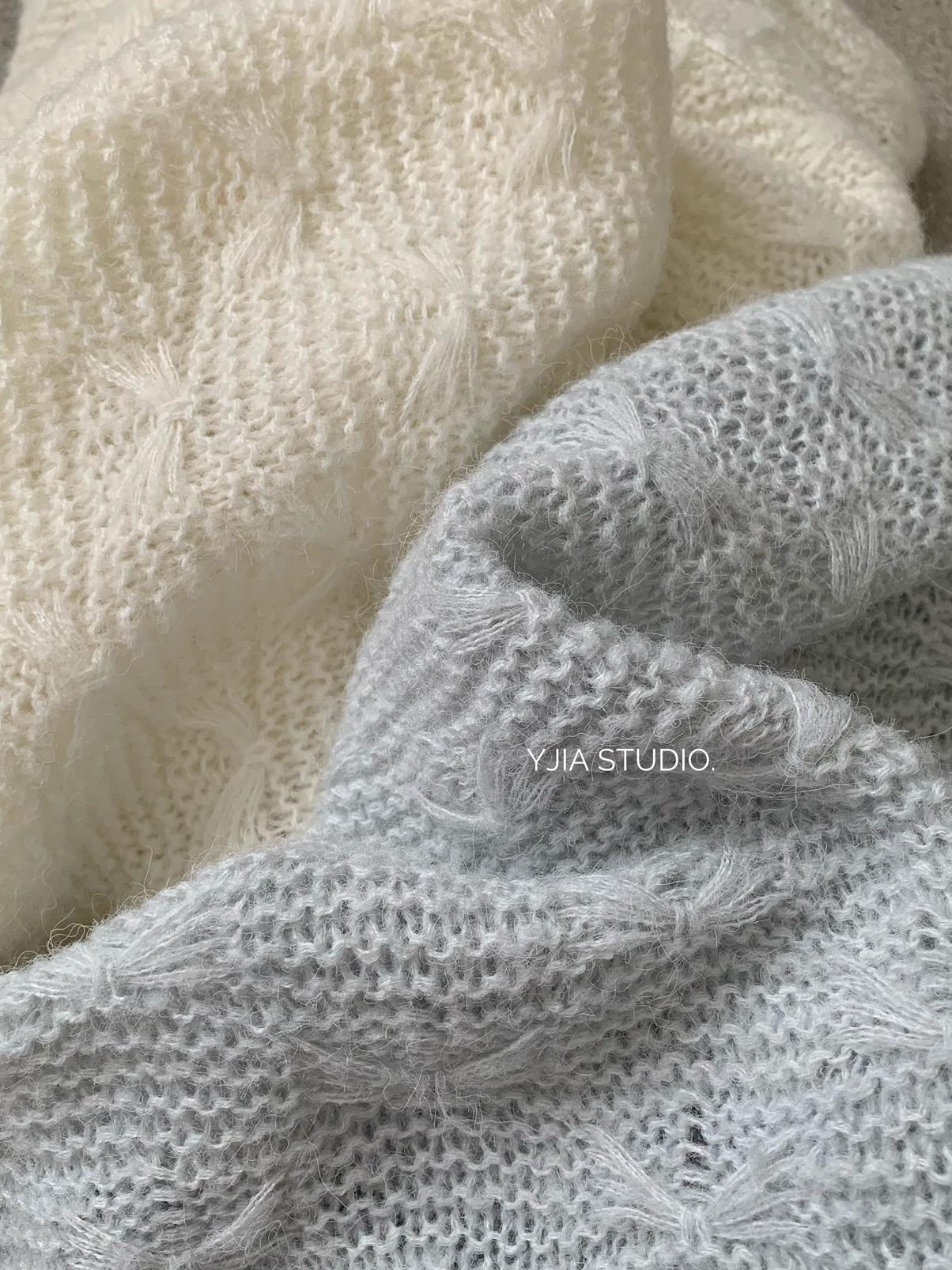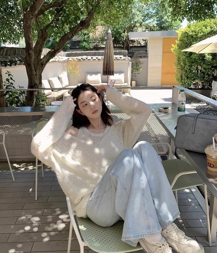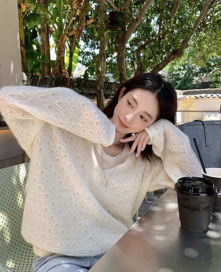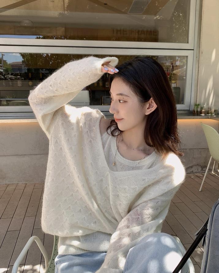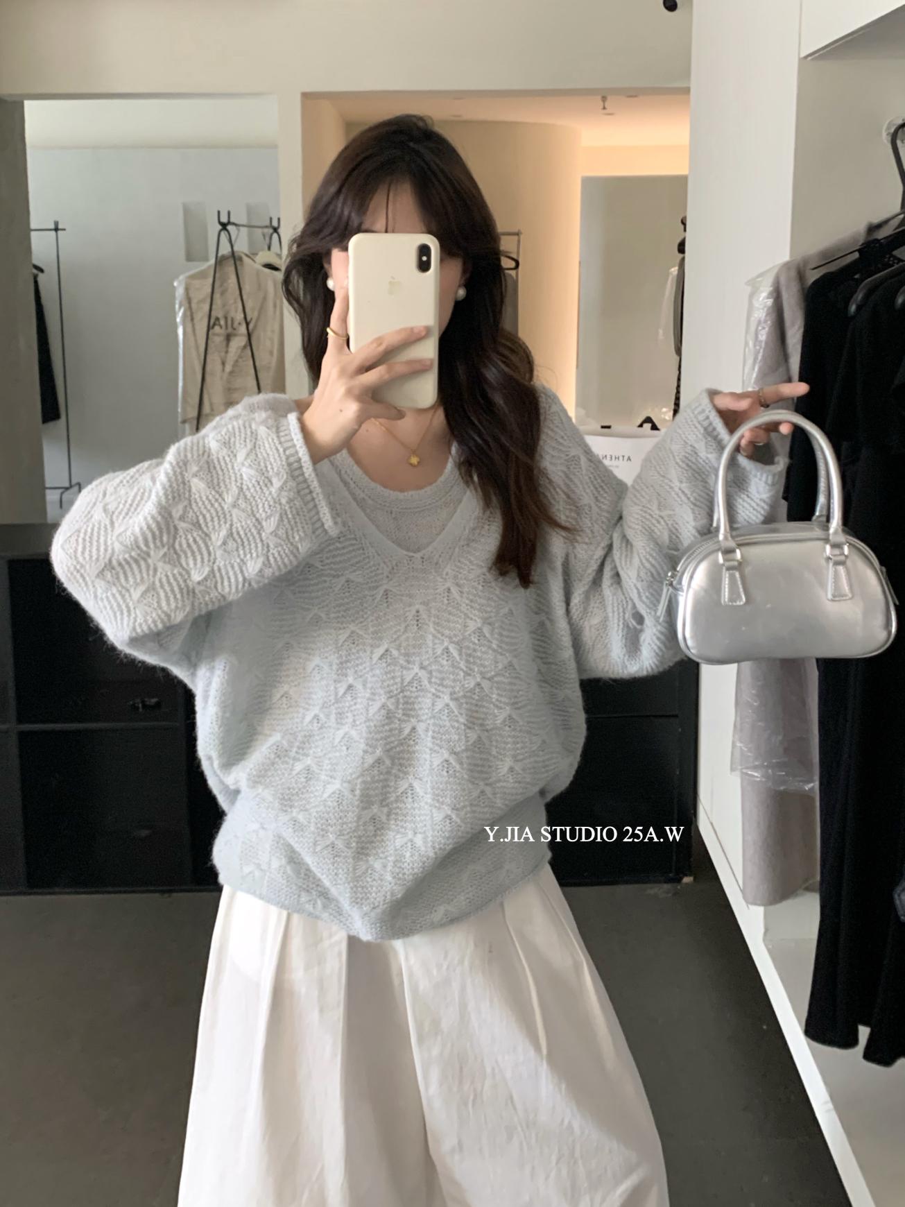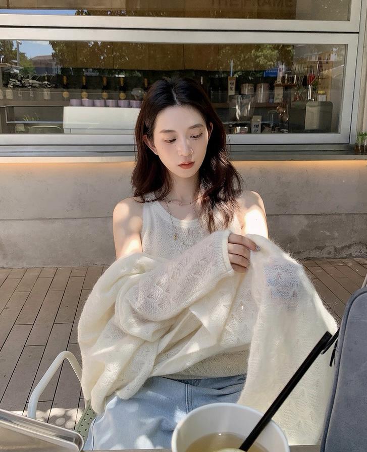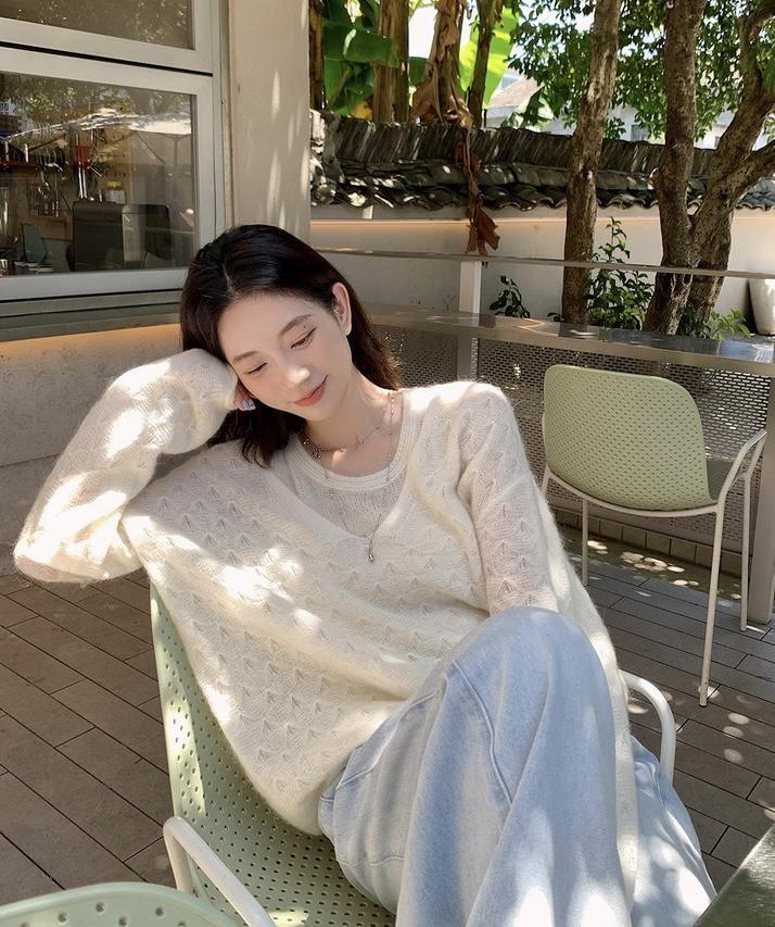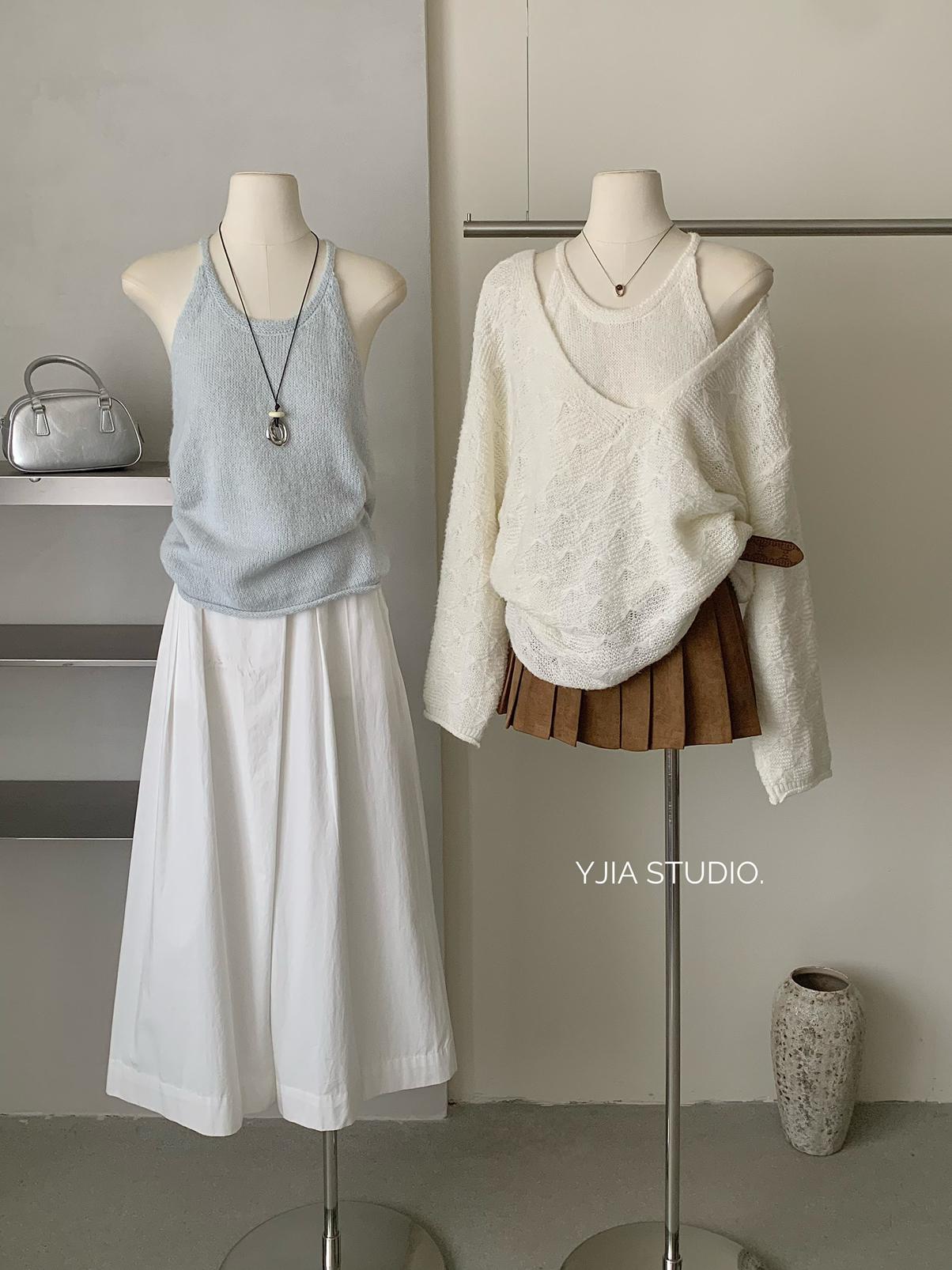 3. 【C7075】氣質慵懶風軟糯套頭百搭鉤花毛衣+針織背心兩件套裝