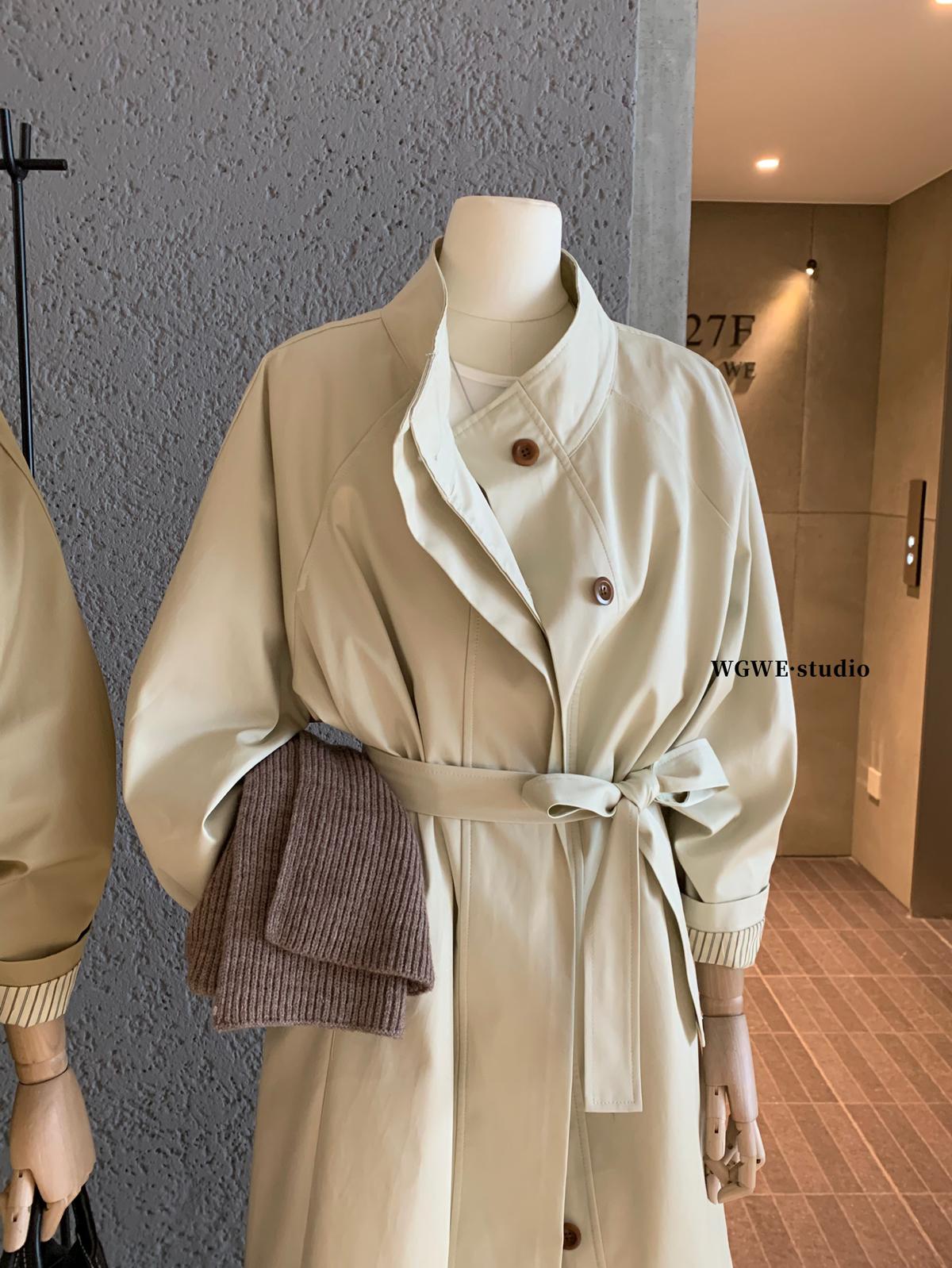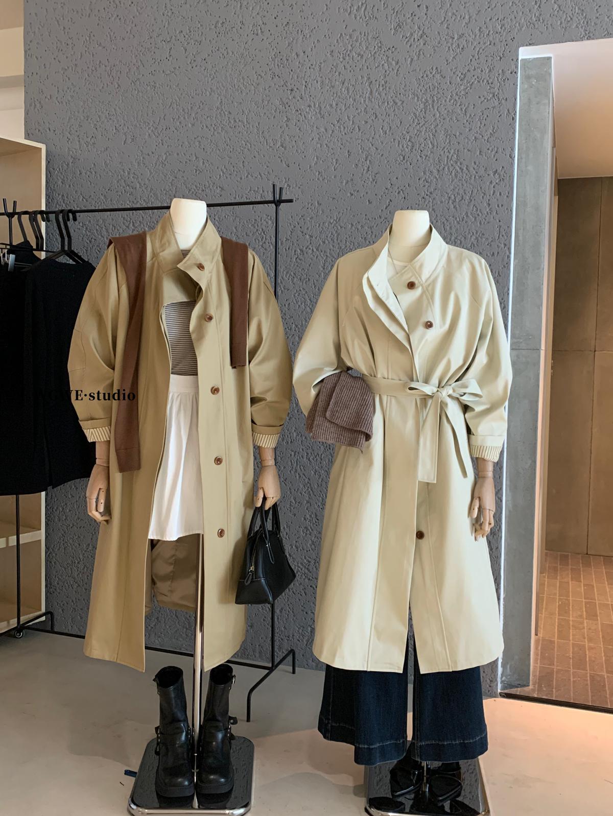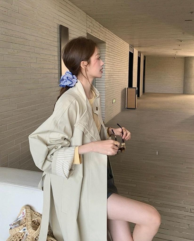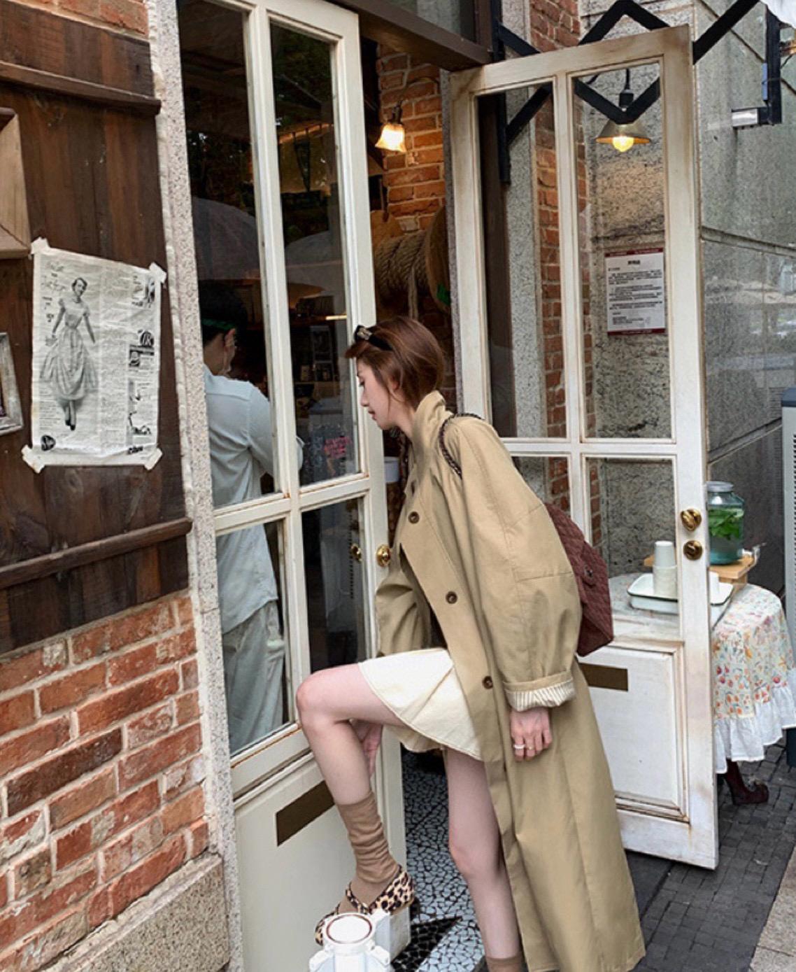 【C7079】都市浪漫英倫風垂感寬鬆顯瘦風衣外套小個子休閒風衣