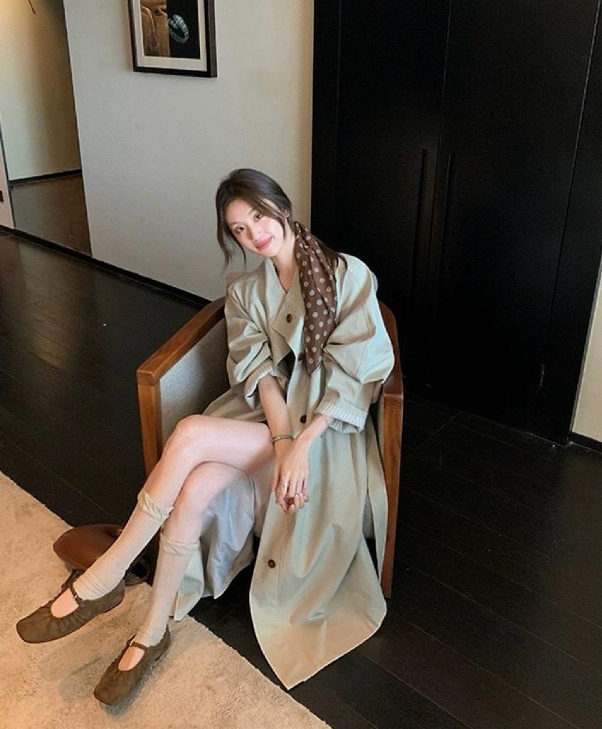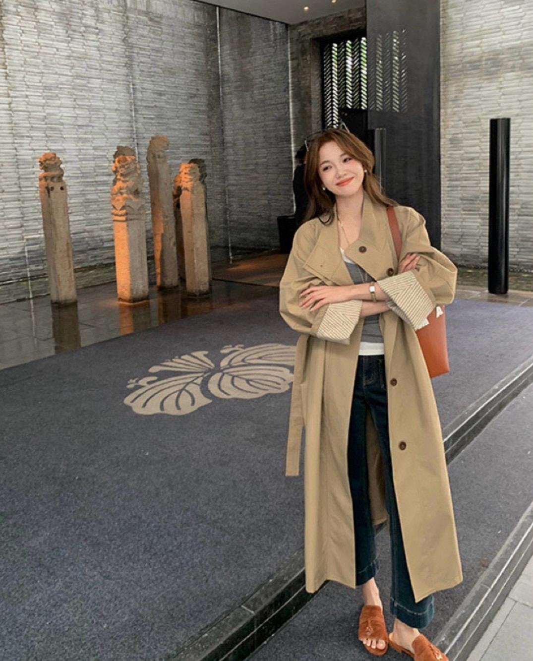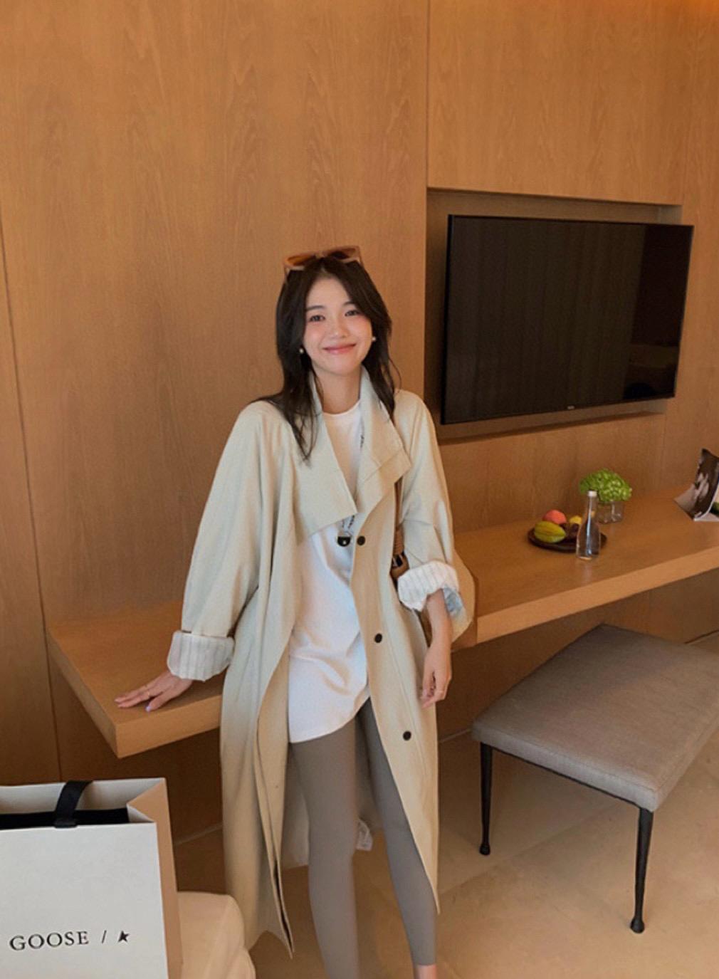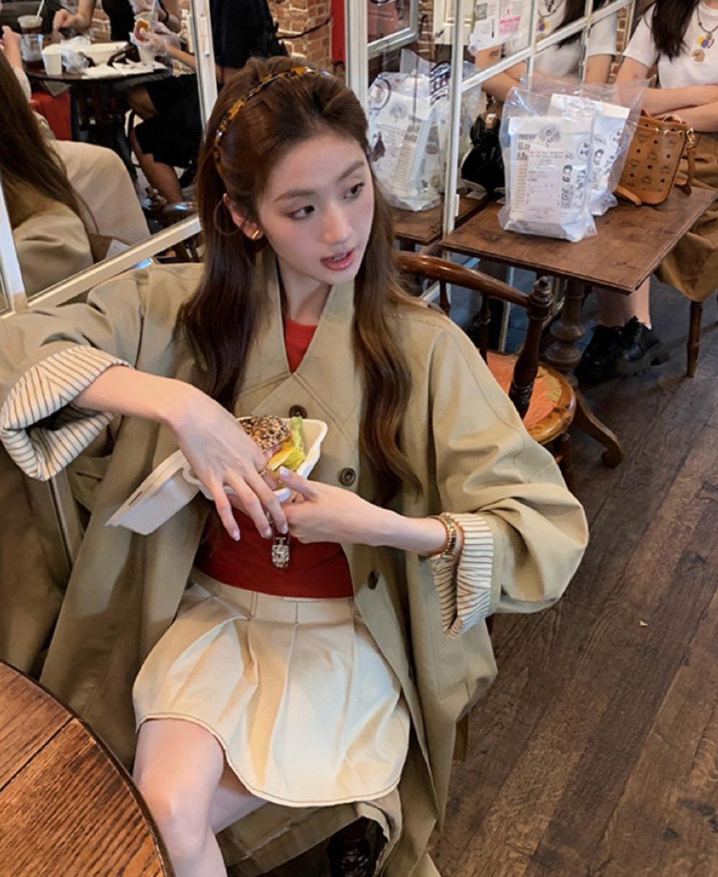 【C7079】都市浪漫英倫風垂感寬鬆顯瘦風衣外套小個子休閒風衣