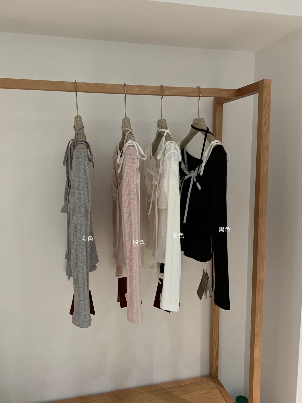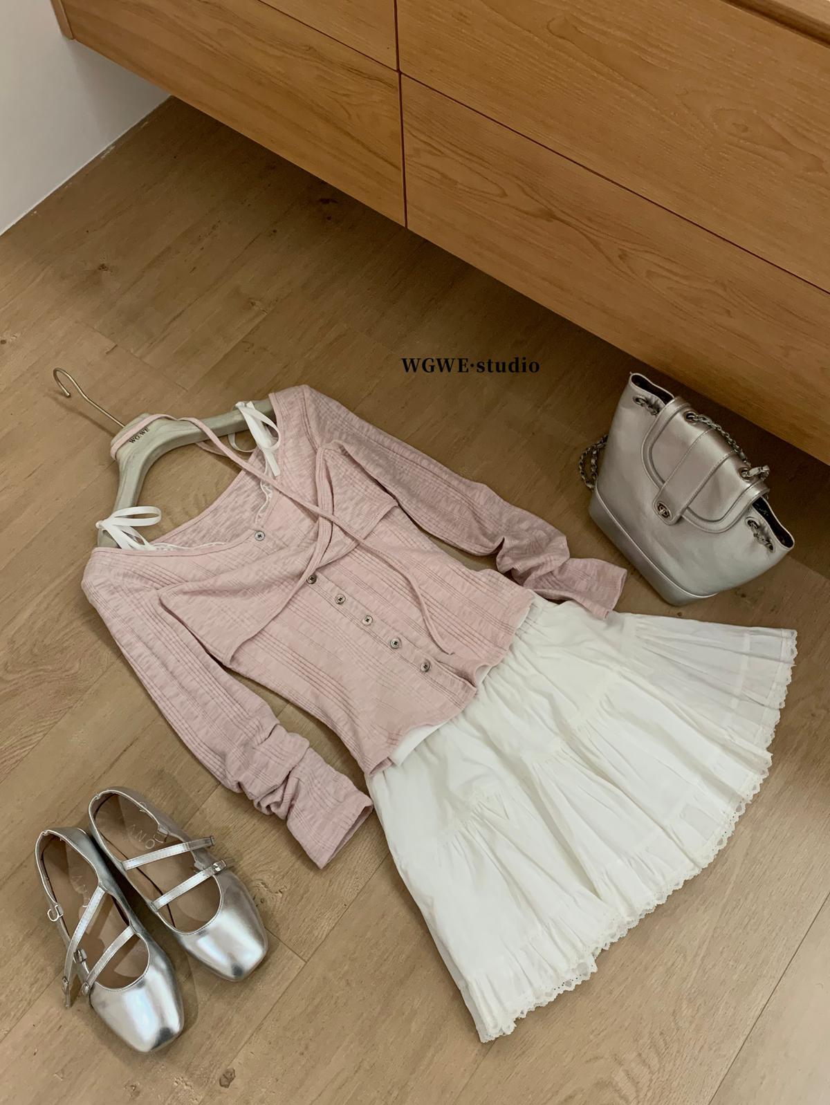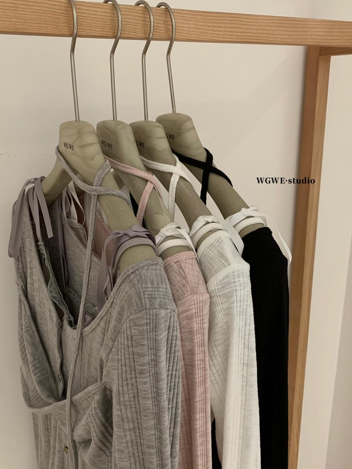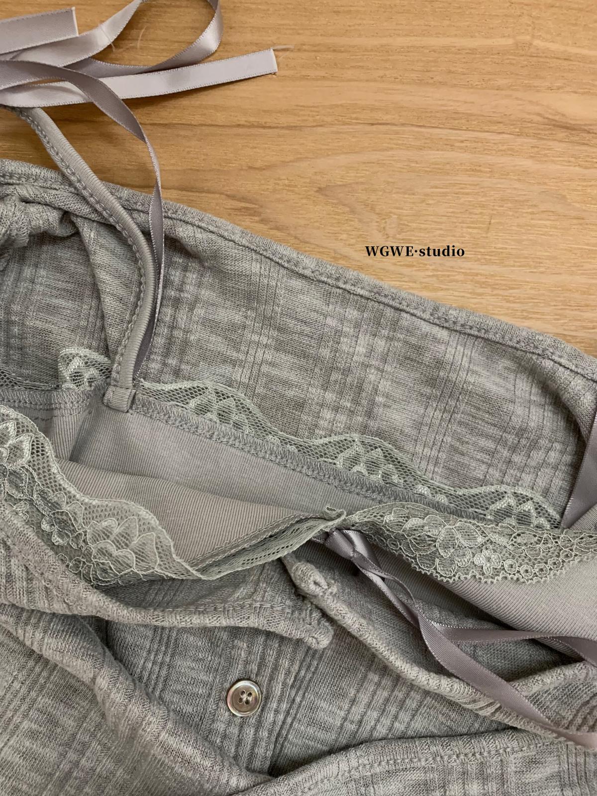 【C7086】疊穿純欲花邊吊帶背心+長袖T恤韓系兩件套裝(配飄繩)