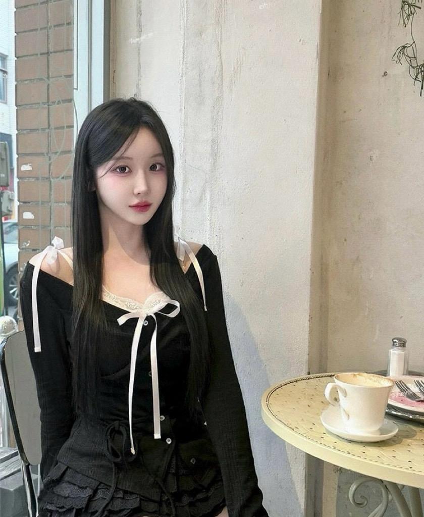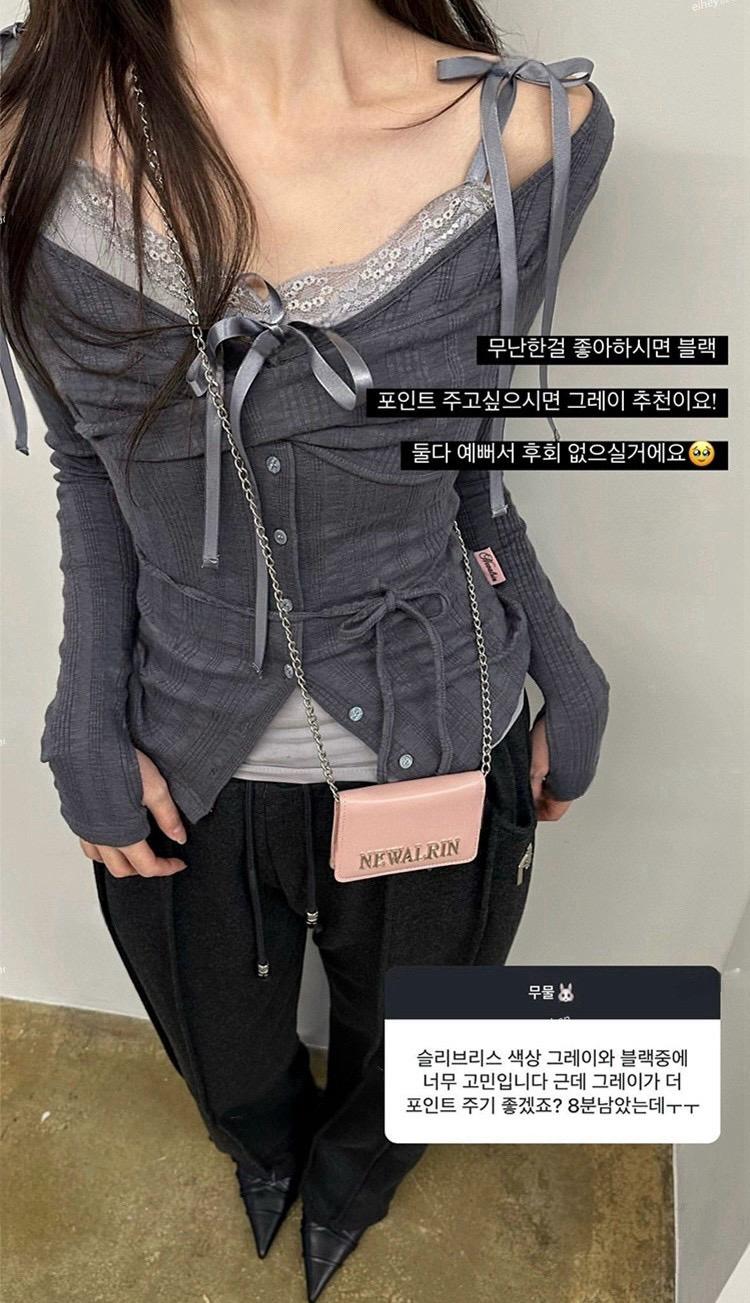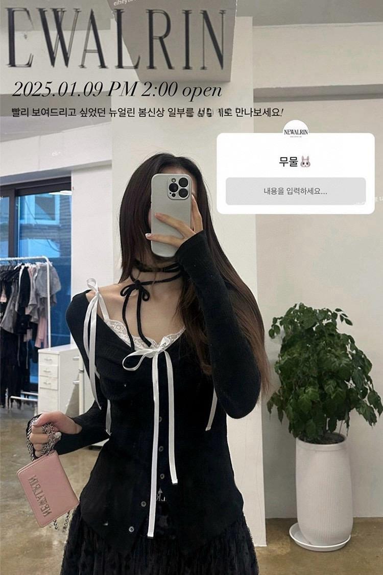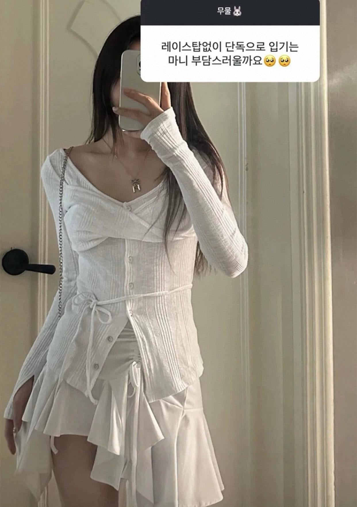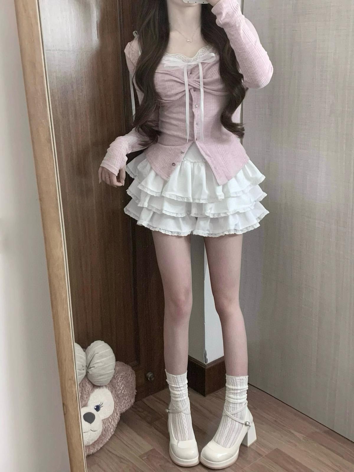 【C7086】疊穿純欲花邊吊帶背心+長袖T恤韓系兩件套裝(配飄繩)