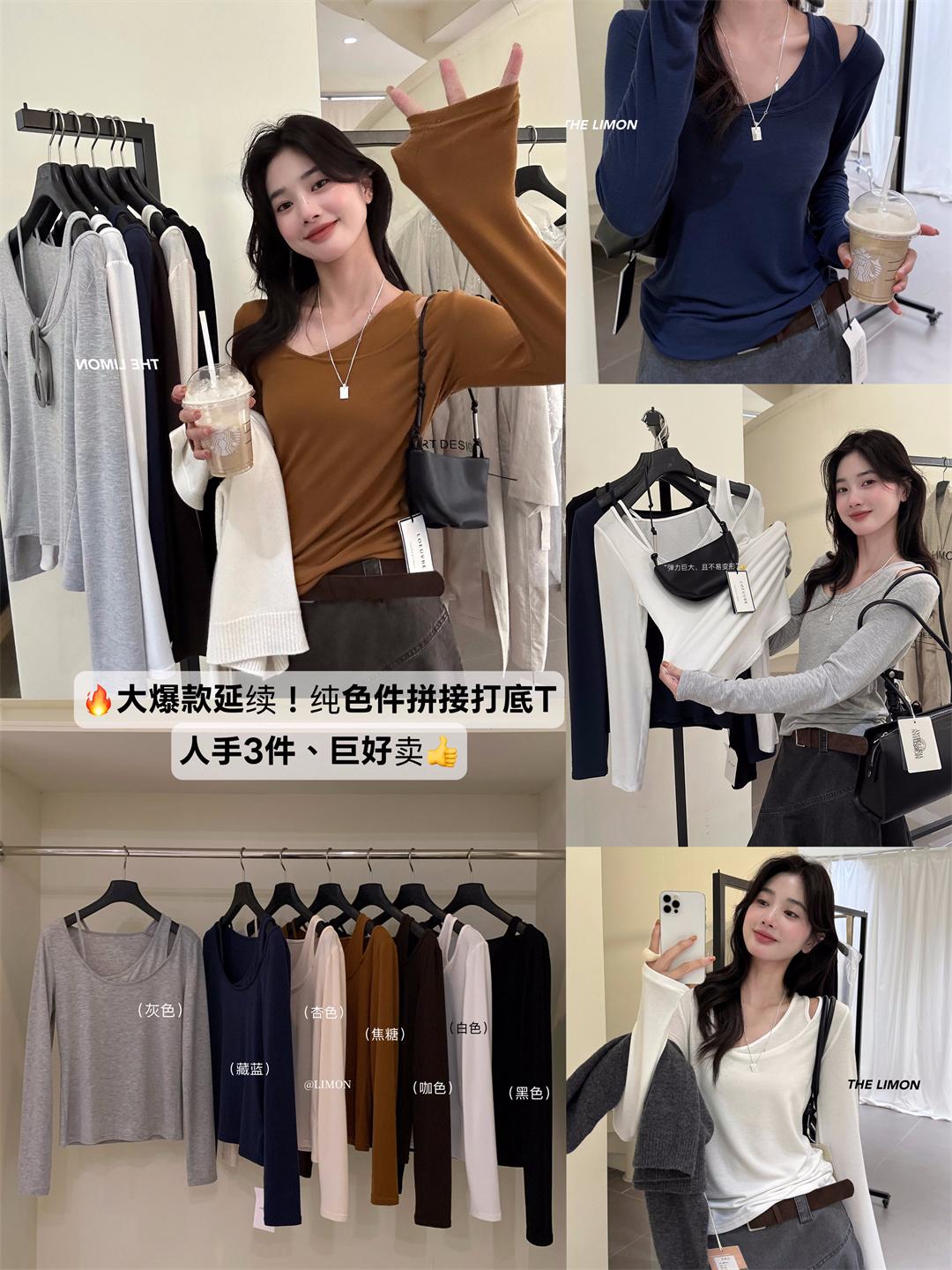 3. 【C7094】巨好賣!設計感不規則假兩件長袖T恤