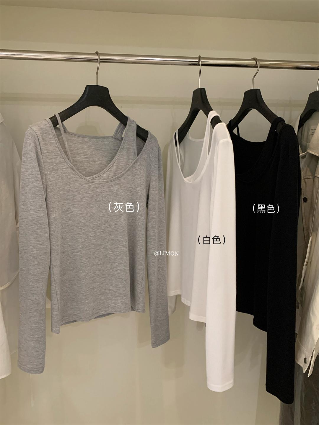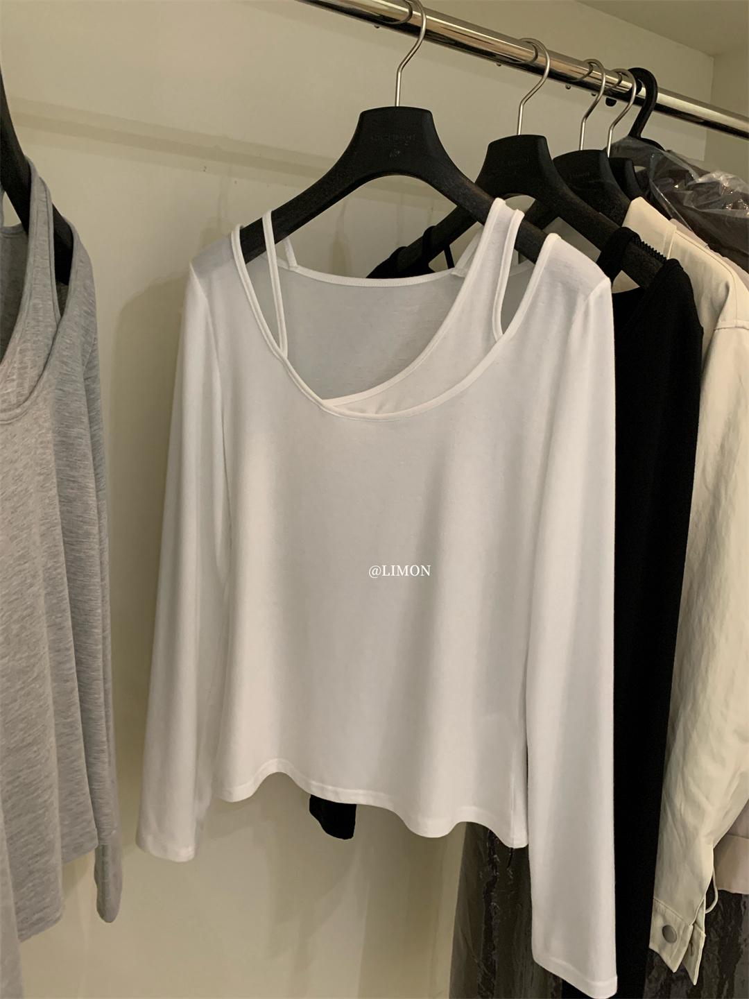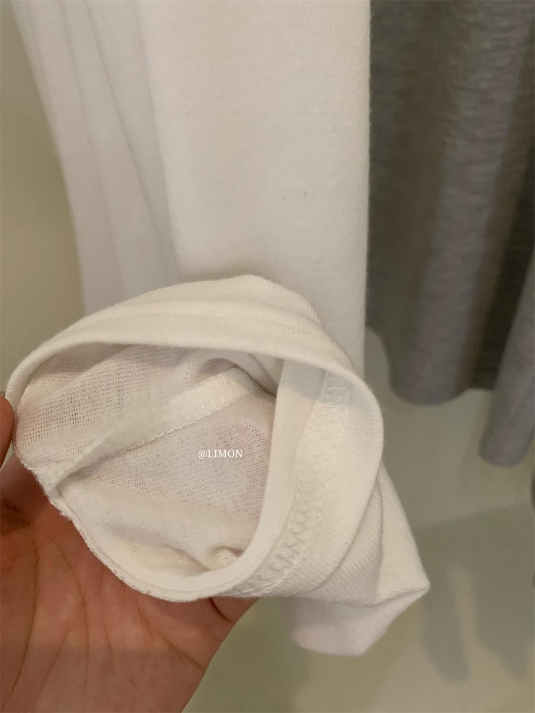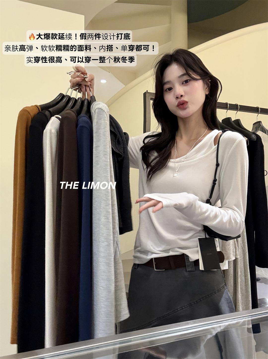 【C7094】巨好賣!設計感不規則假兩件長袖T恤