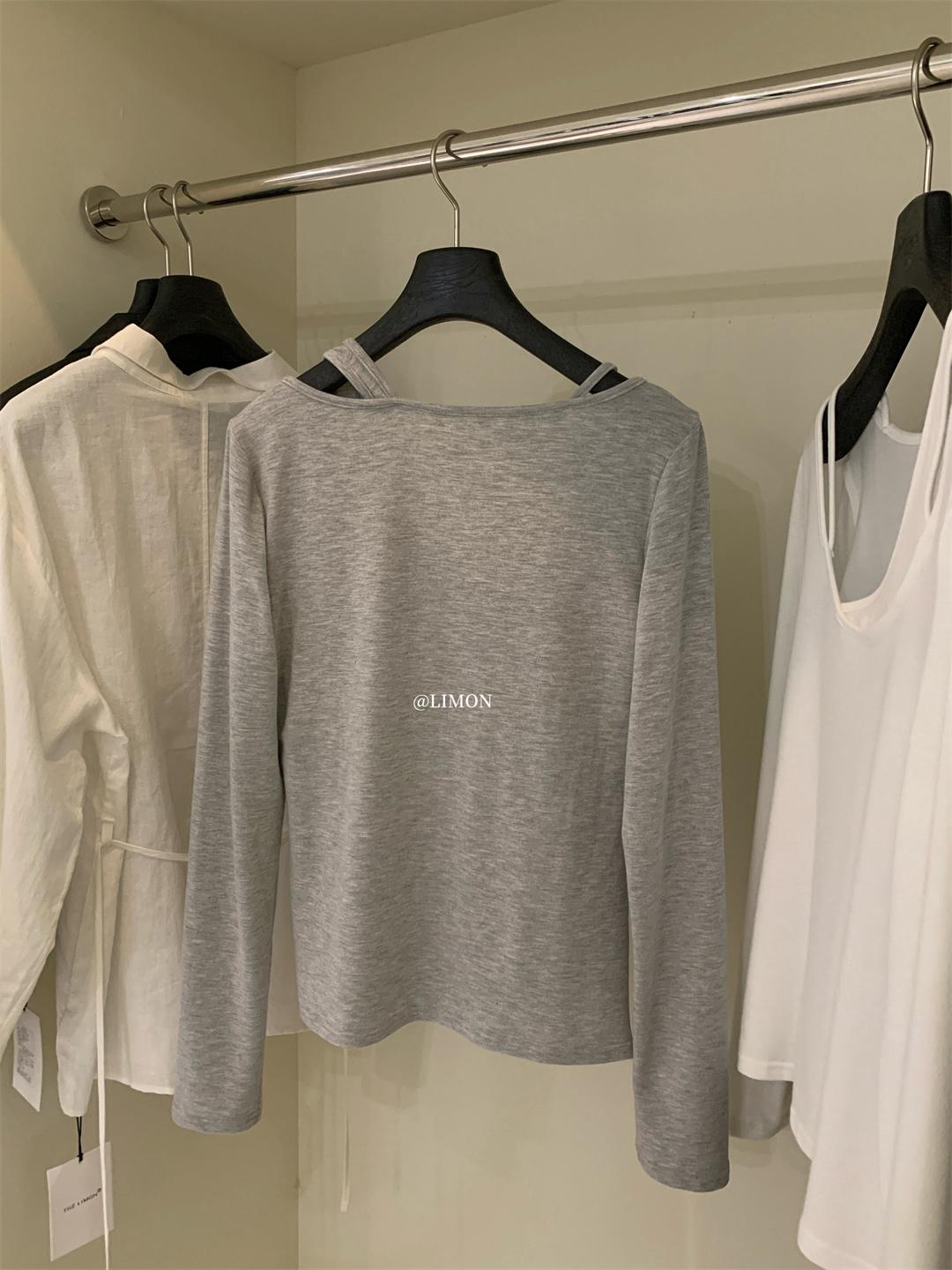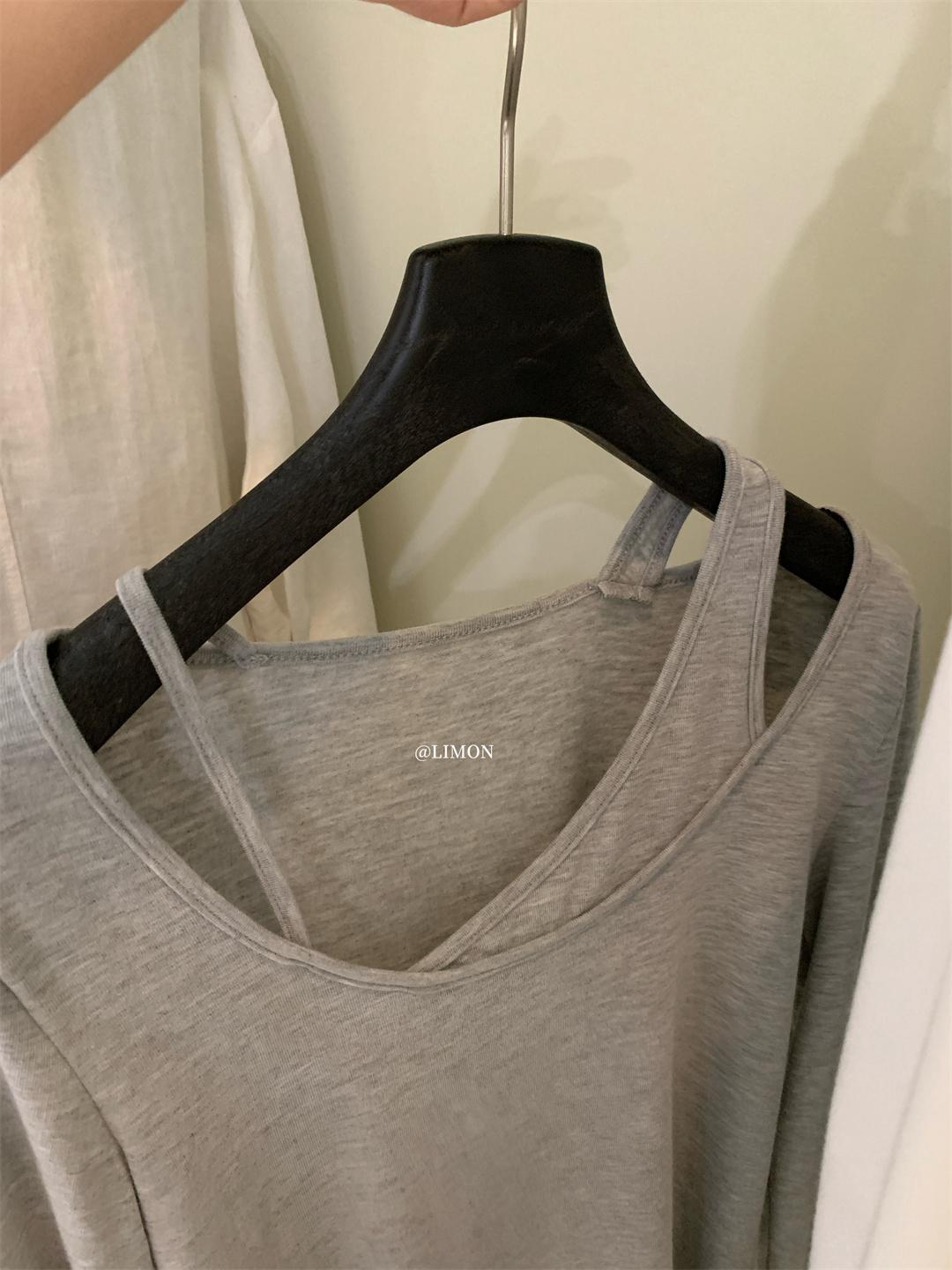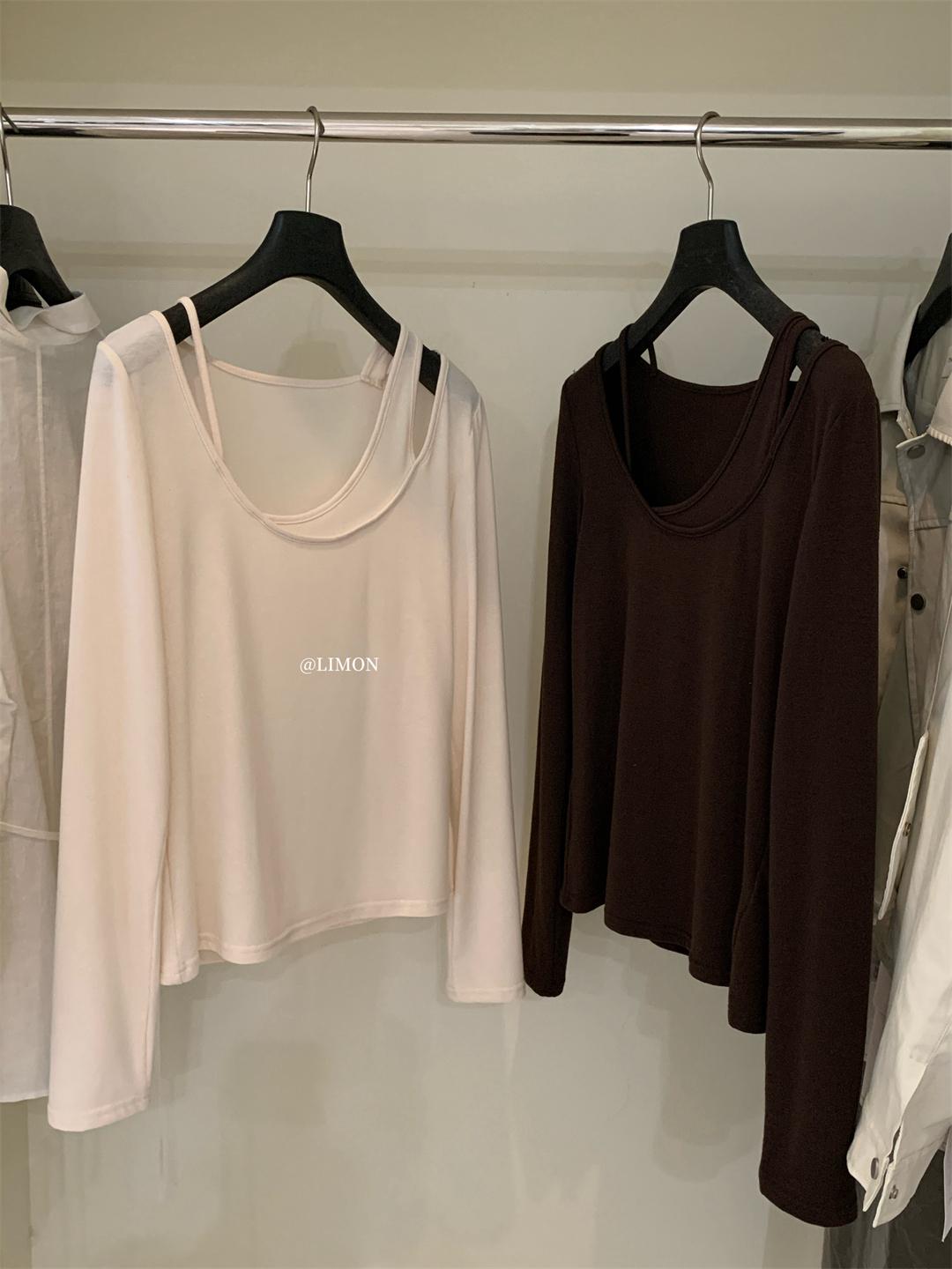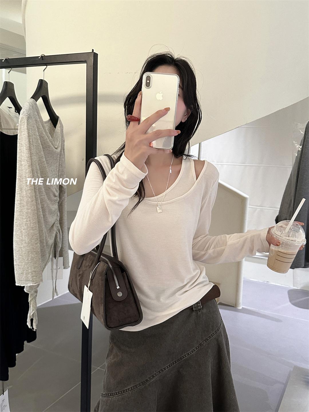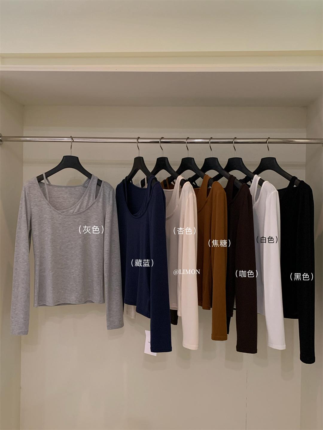 【C7094】巨好賣!設計感不規則假兩件長袖T恤