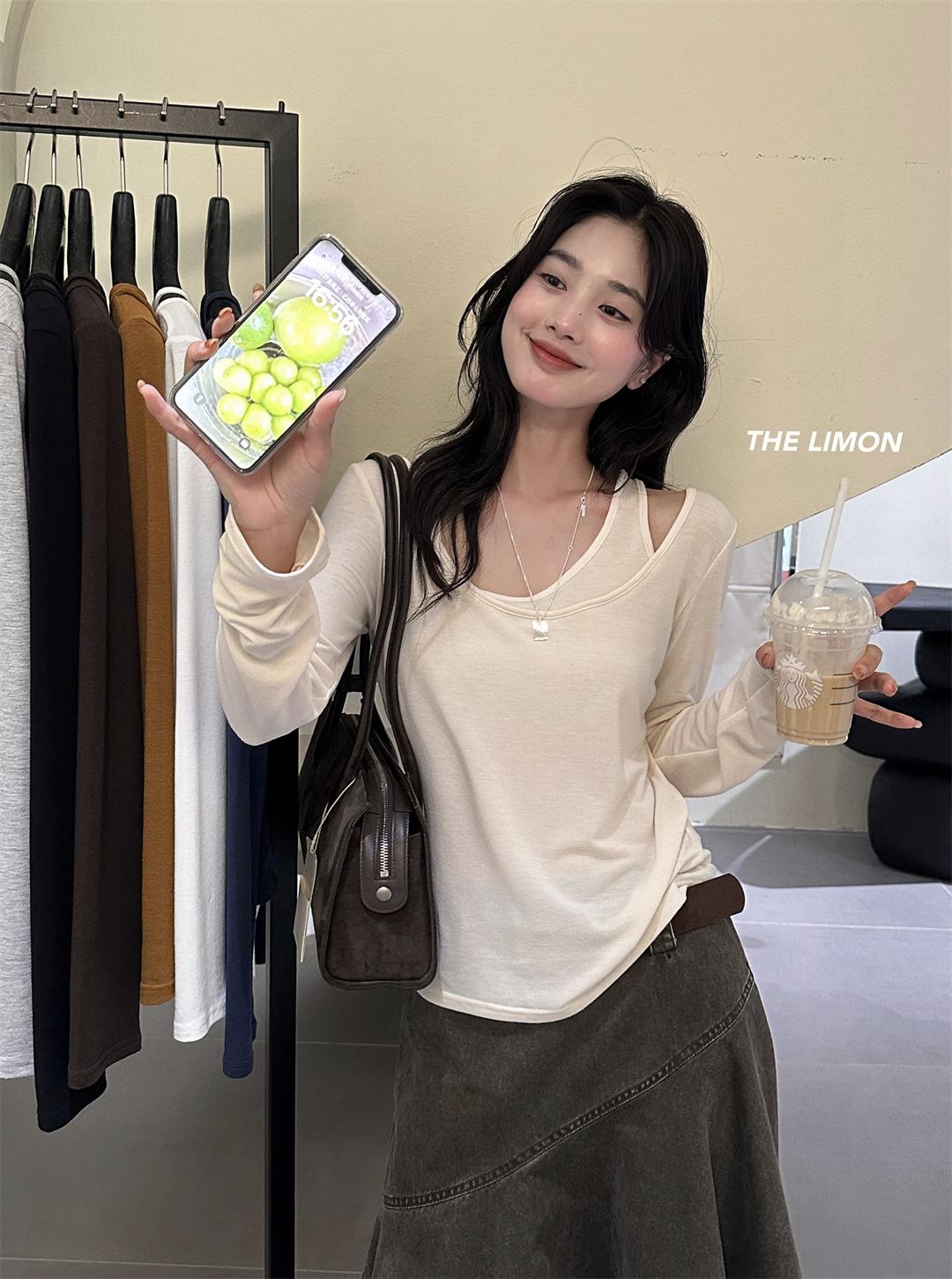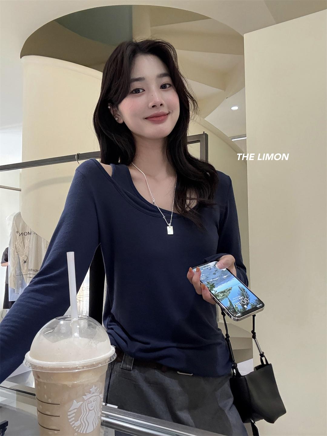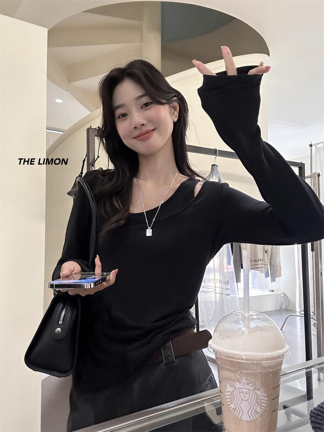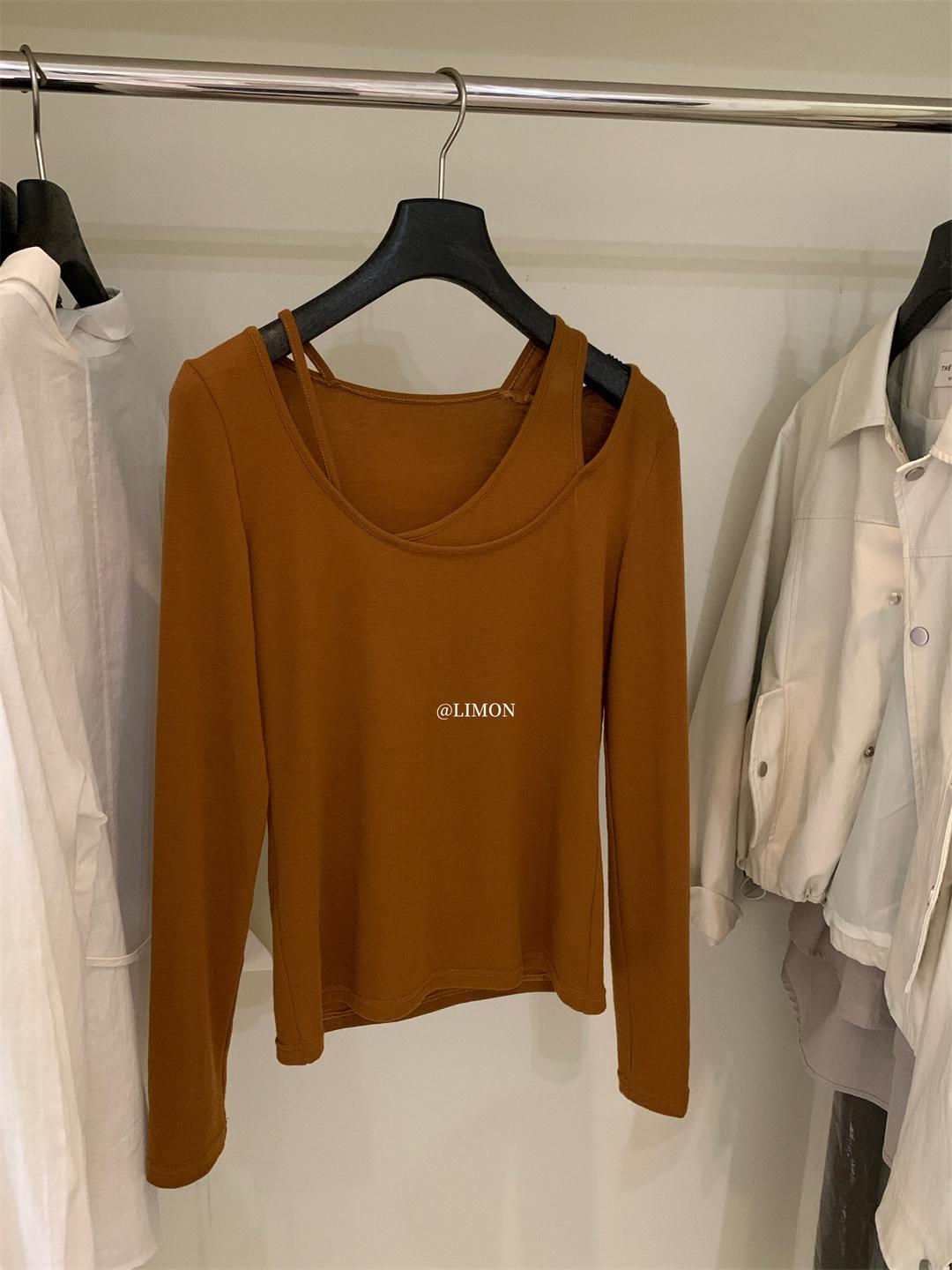 【C7094】巨好賣!設計感不規則假兩件長袖T恤