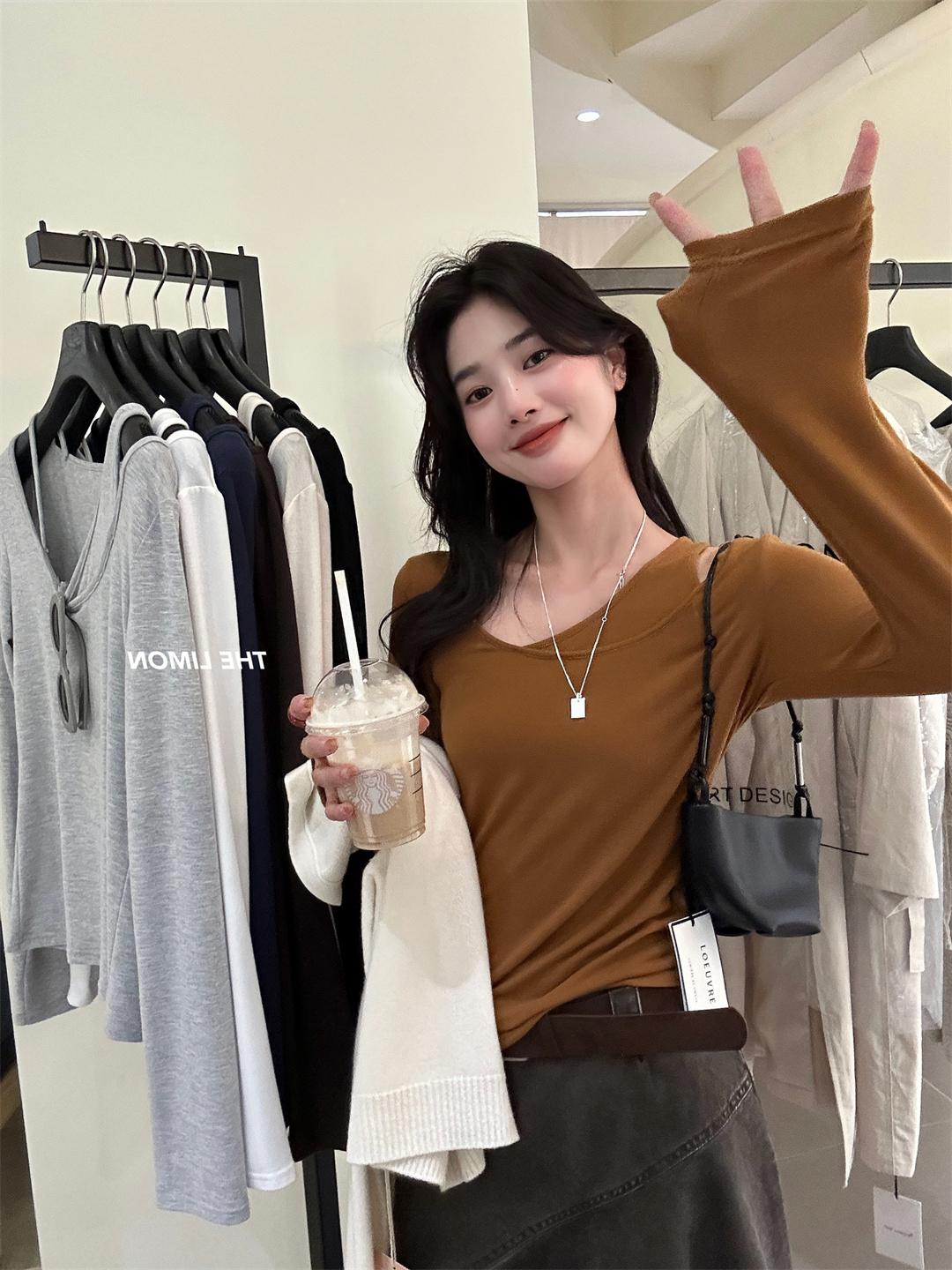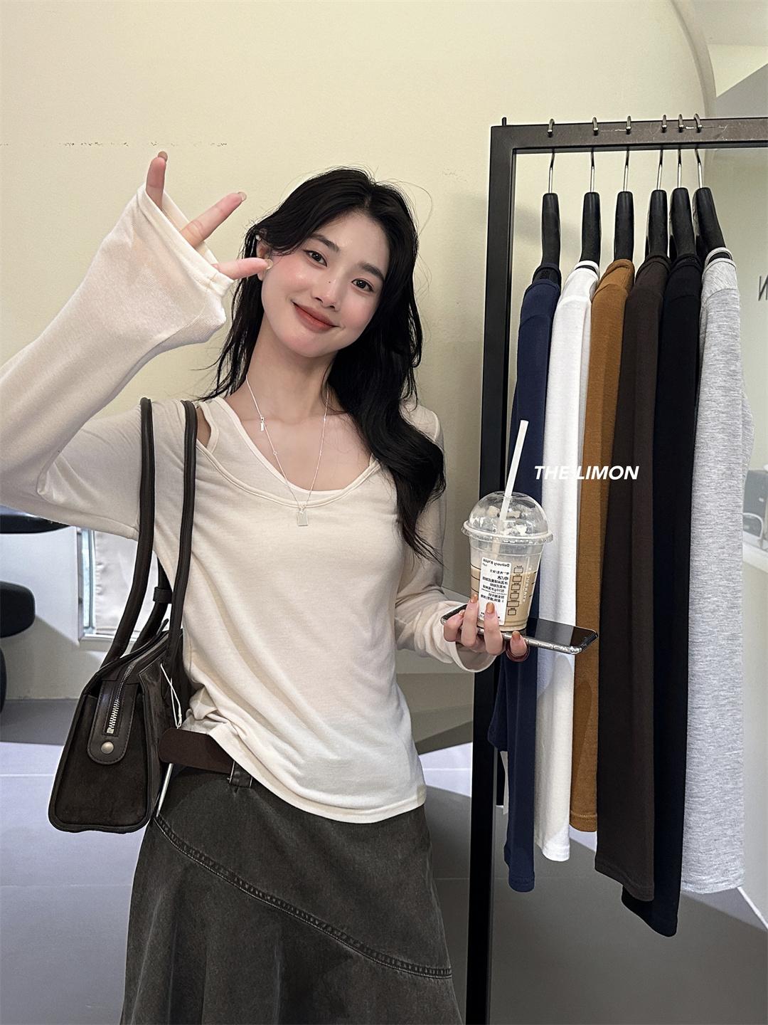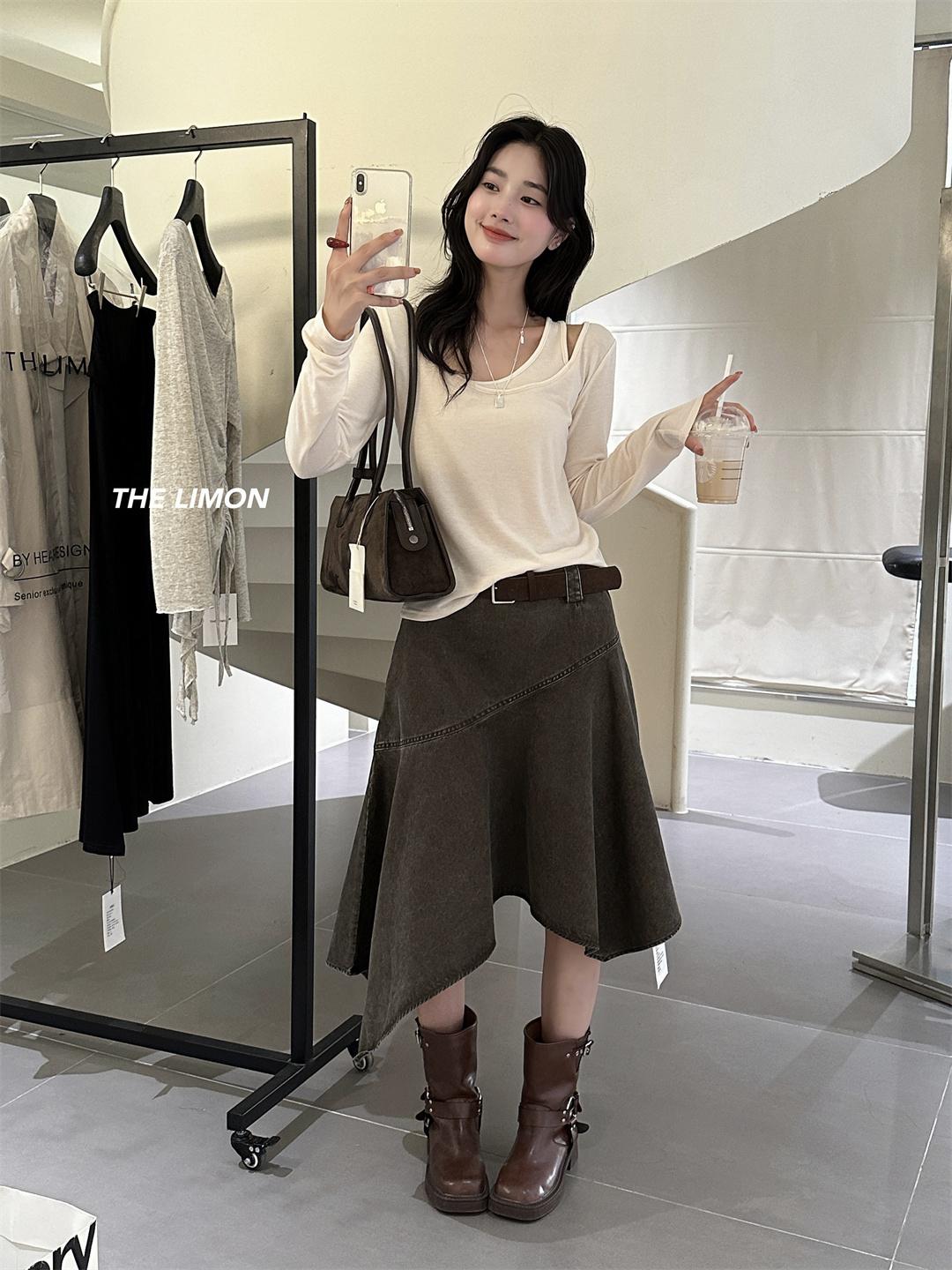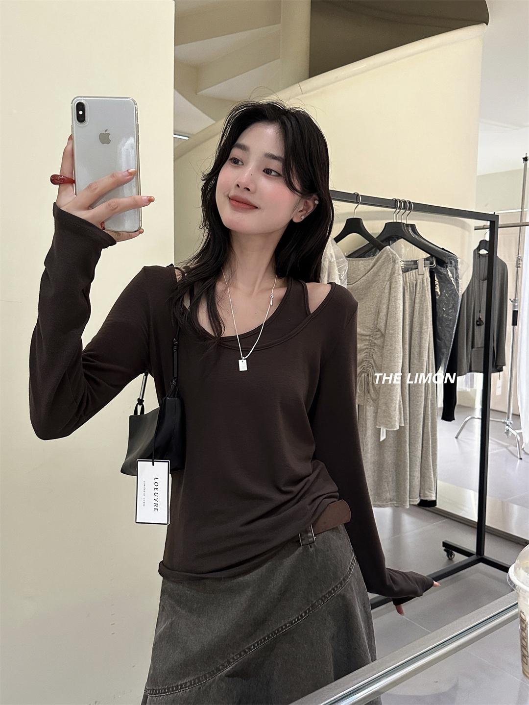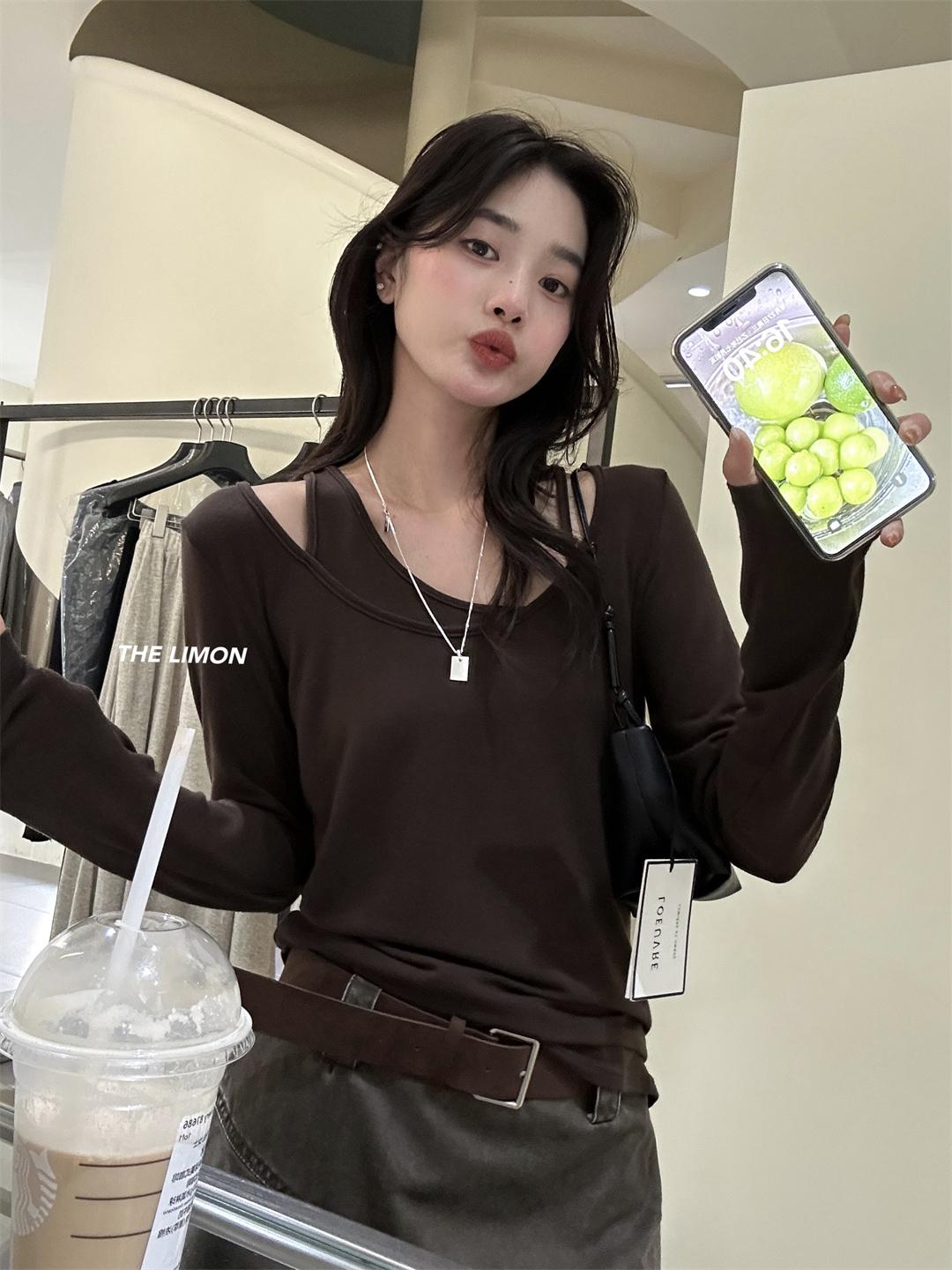 【C7094】巨好賣!設計感不規則假兩件長袖T恤
