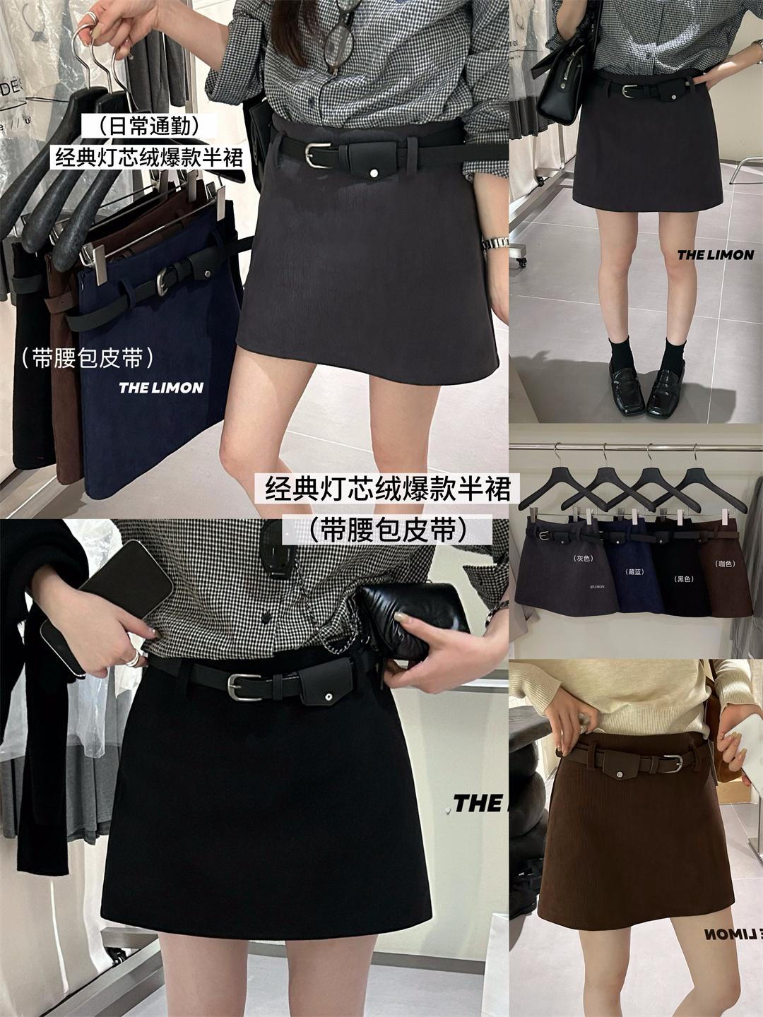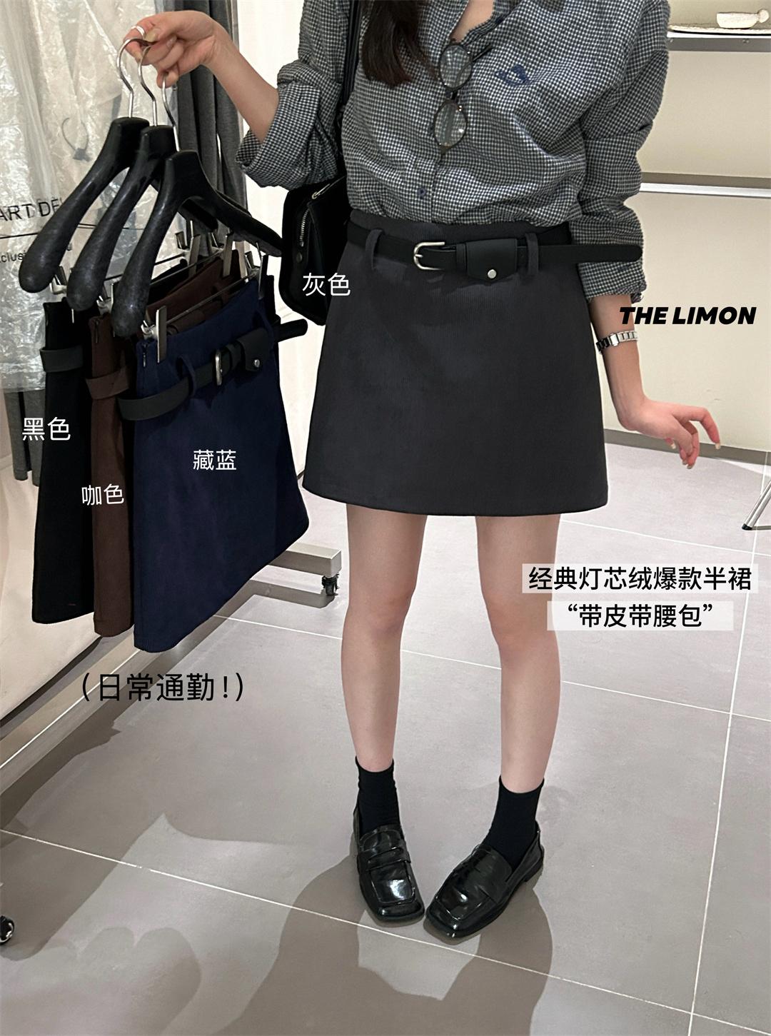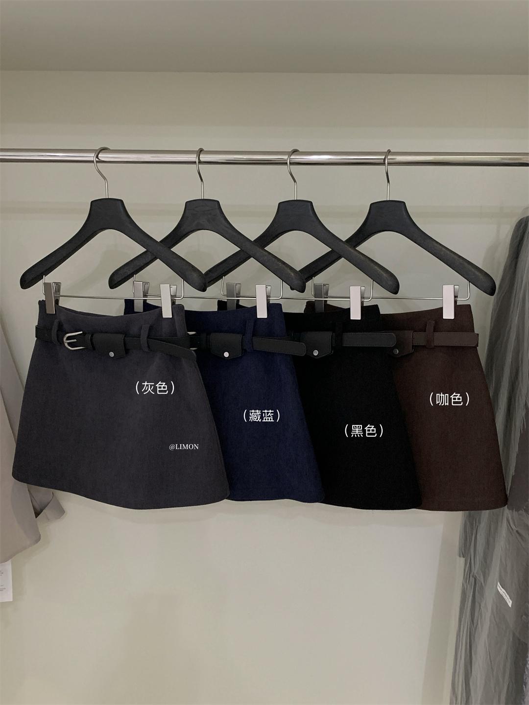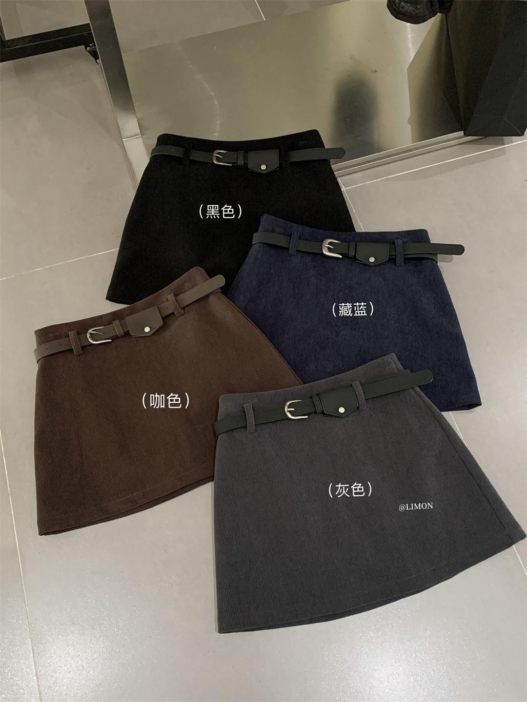 【C7098】日常通勤!爆款!經典燈芯絨顯瘦半身裙(配腰帶)