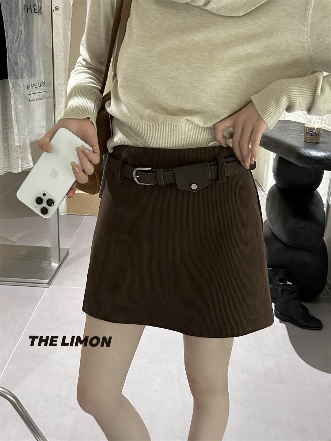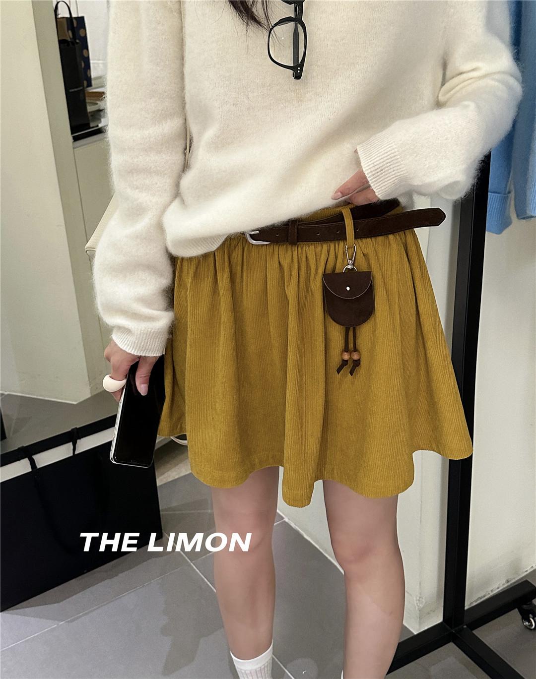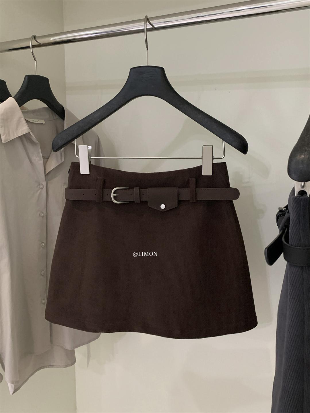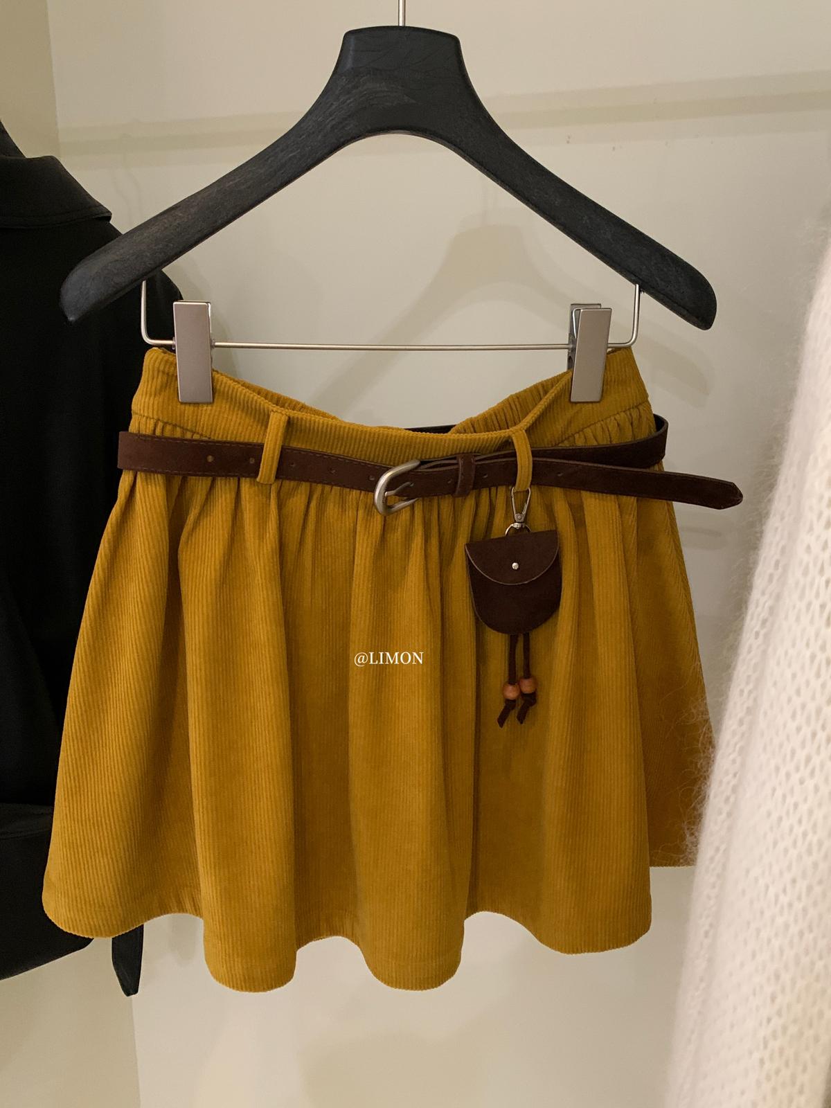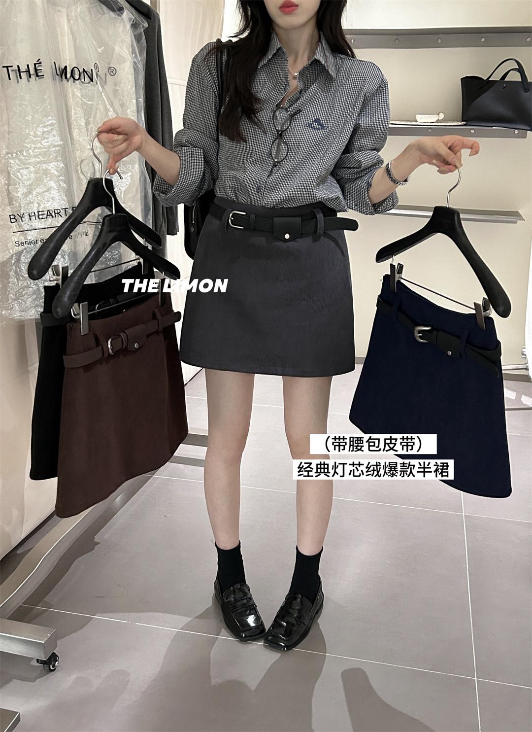 【C7098】日常通勤!爆款!經典燈芯絨顯瘦半身裙(配腰帶)