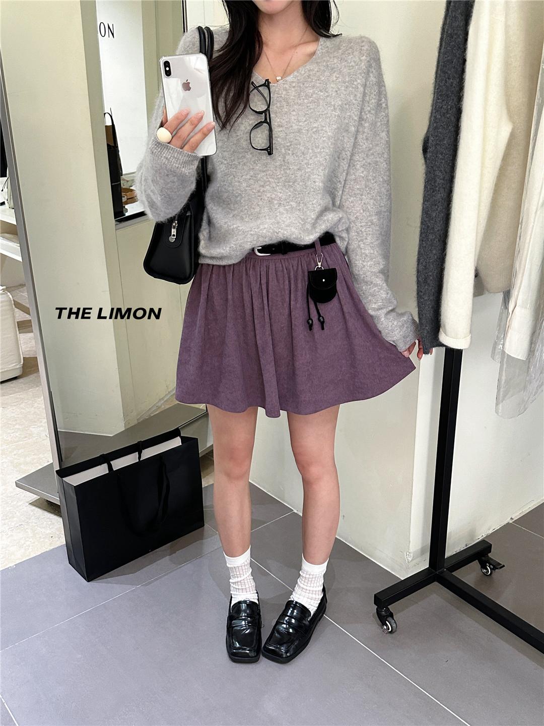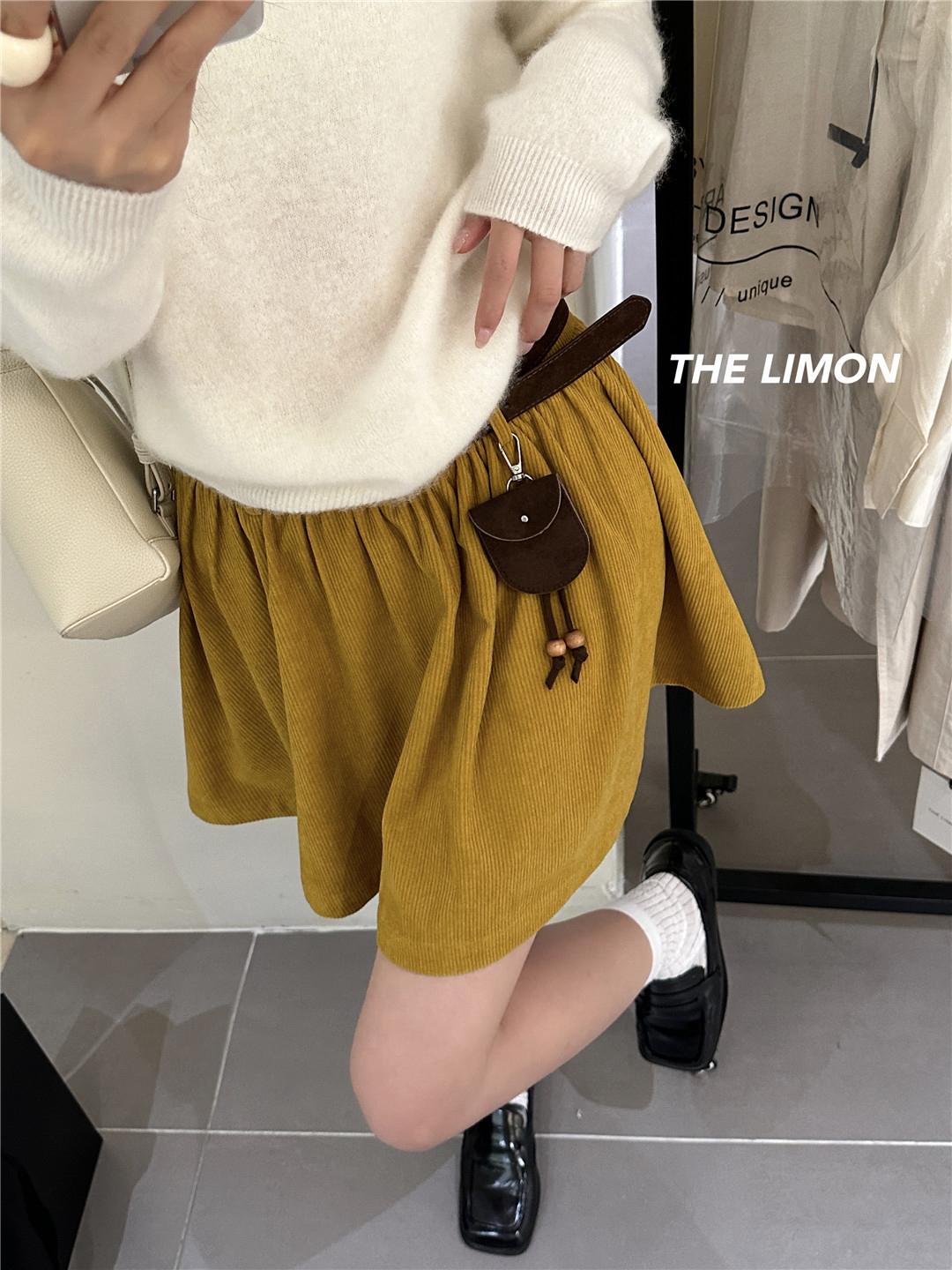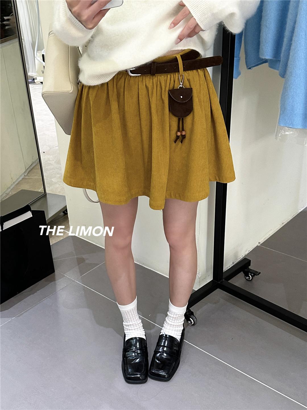 【C7104】重工百搭鬆緊顯瘦燈芯絨半身裙(配腰帶)