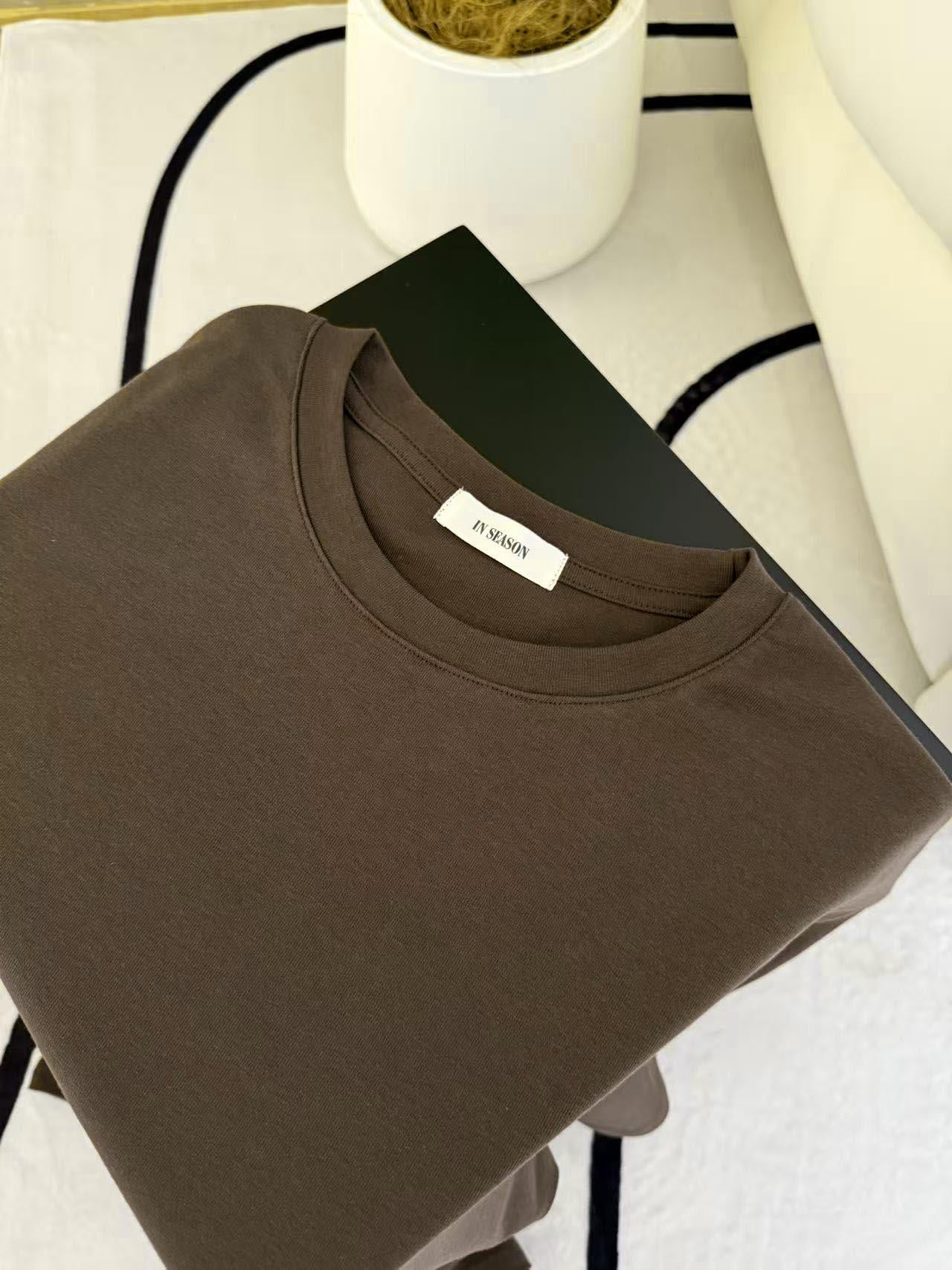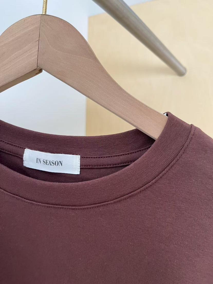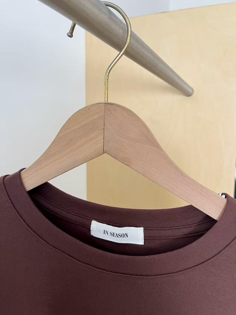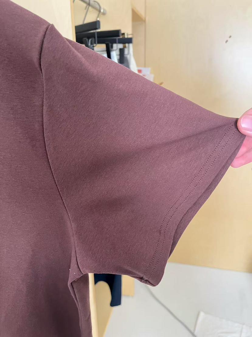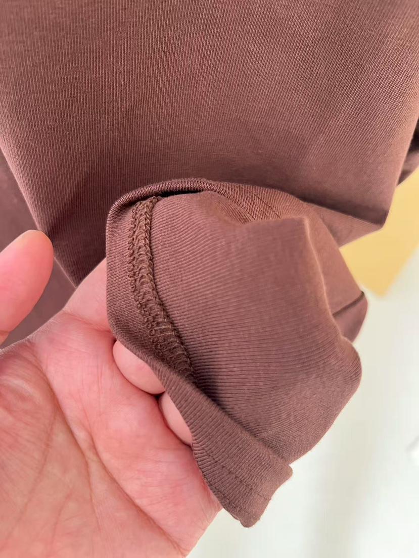 【C7128】小衆創意梨子印花圓領寬鬆舒適非常百顯瘦咖色短袖T恤