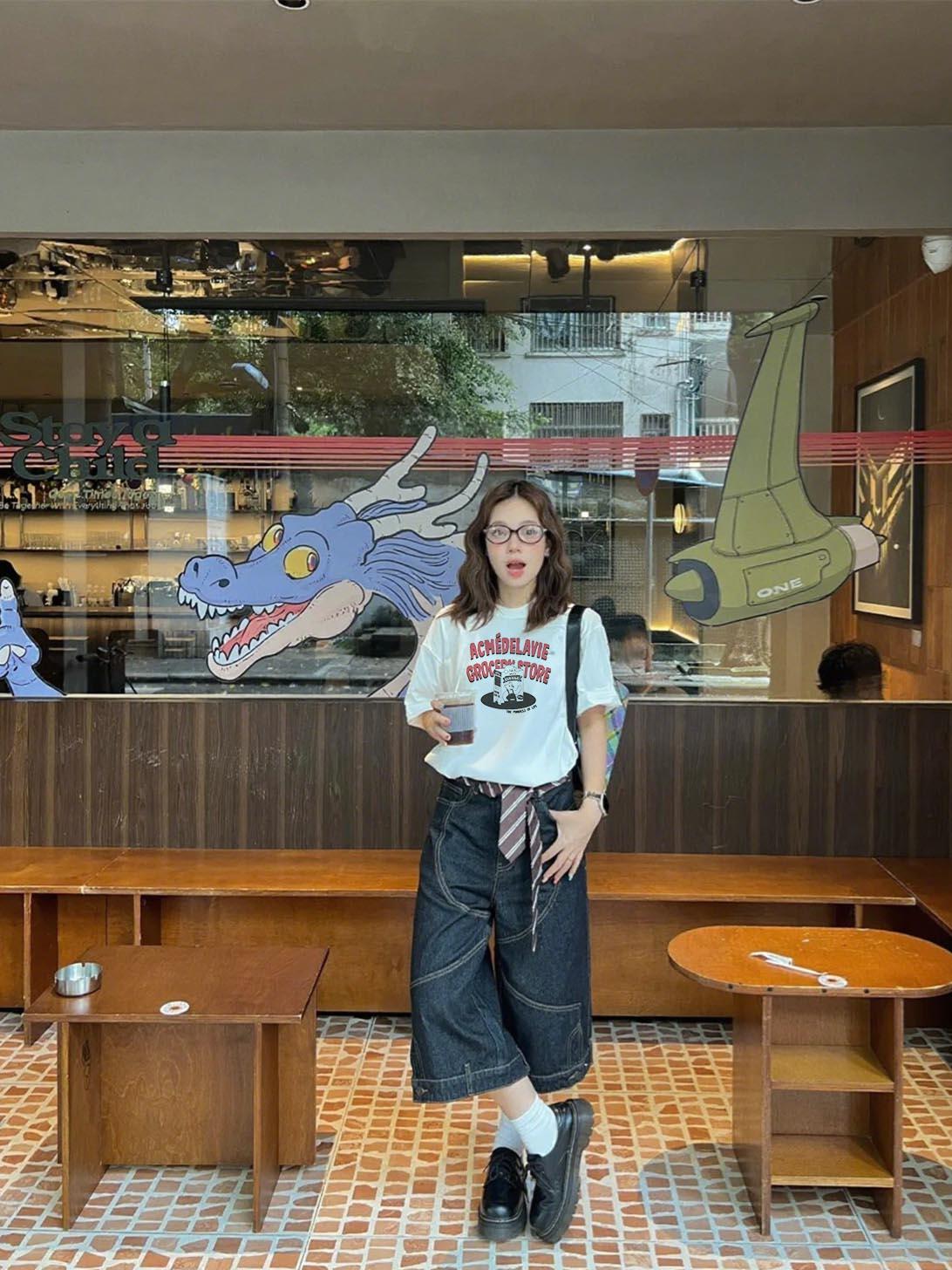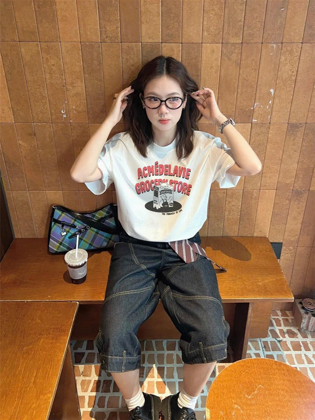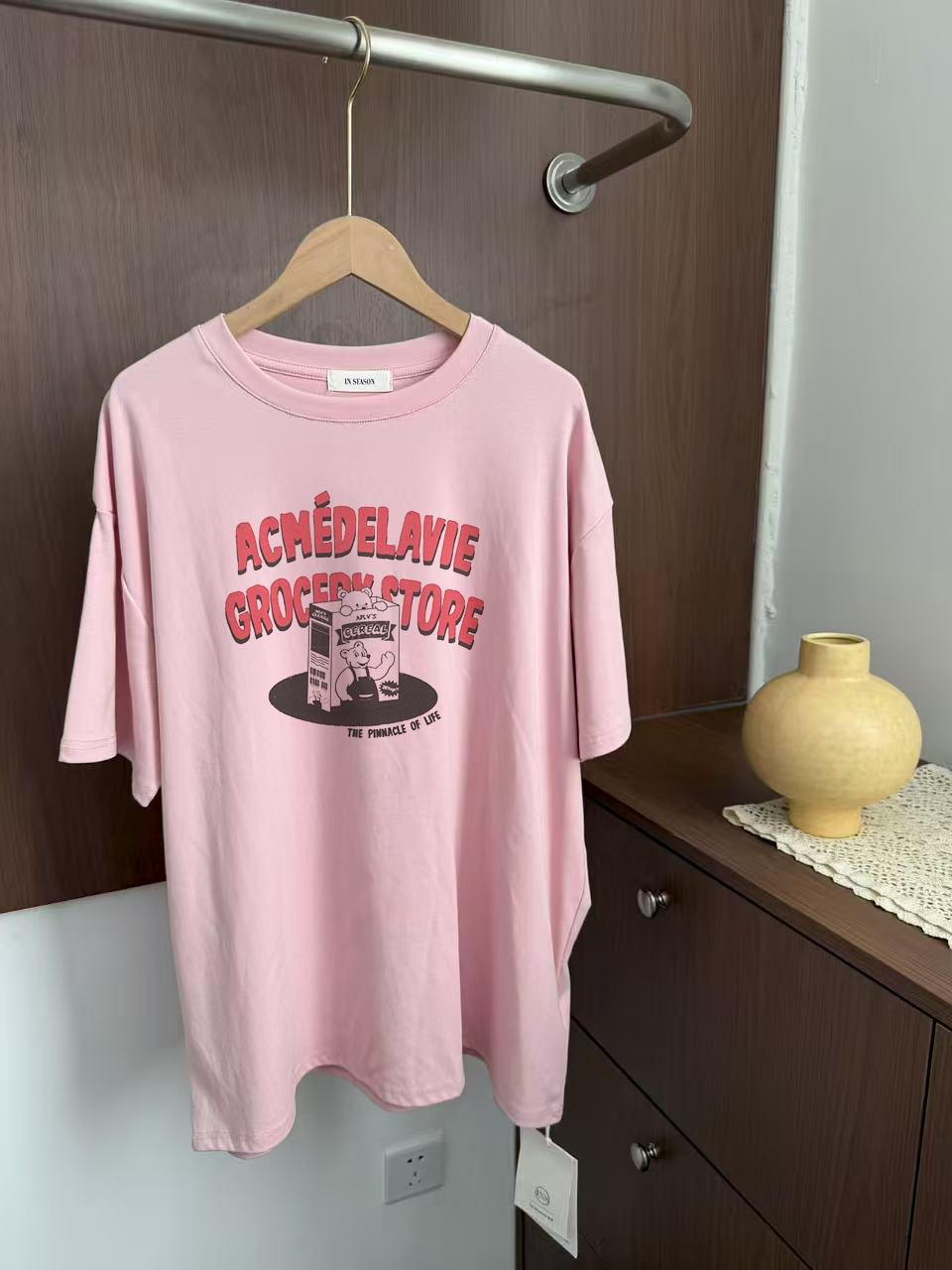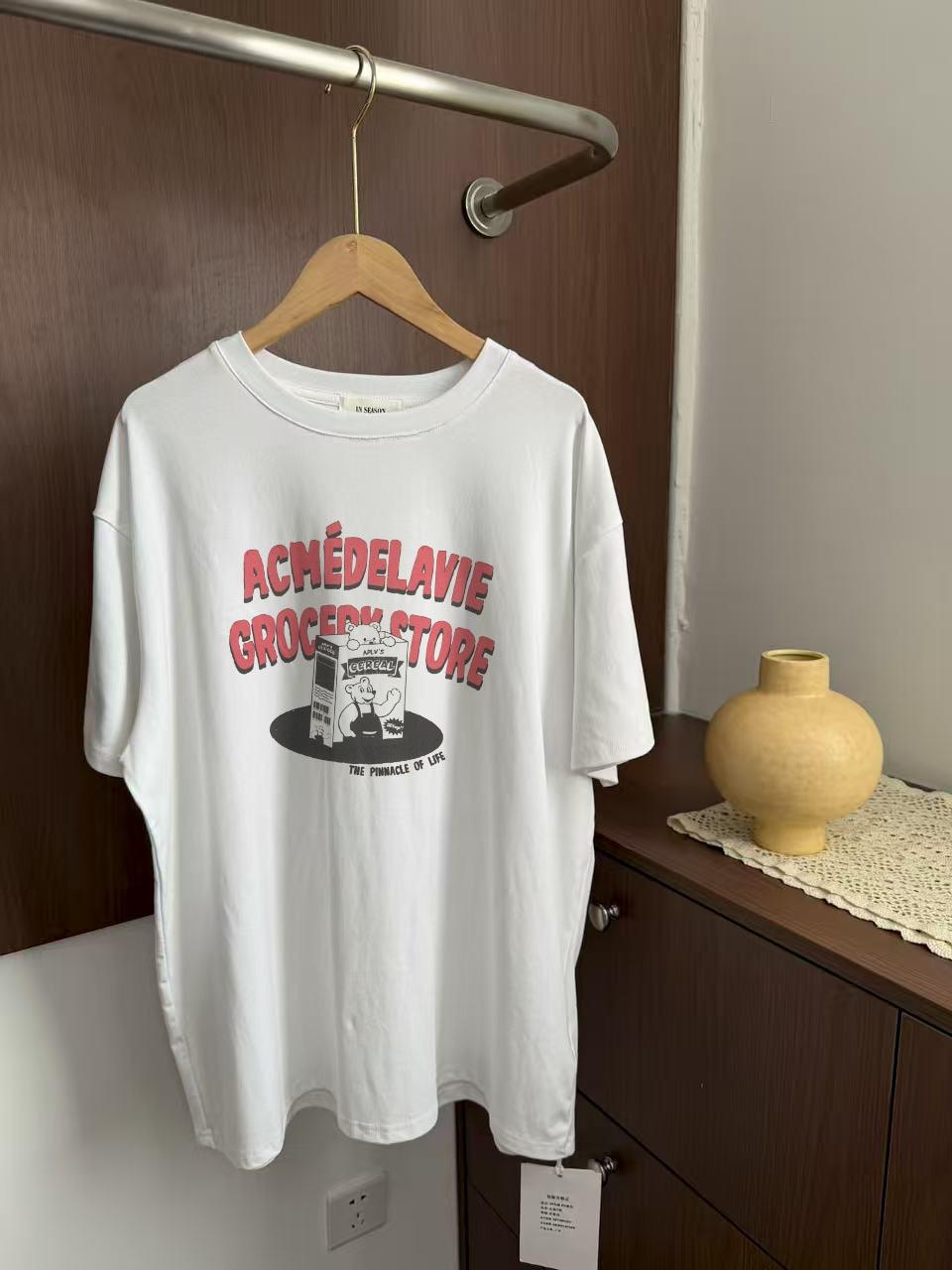 【C7131】ins風童趣招牌小熊商店直噴印花寬鬆圓領短袖T恤