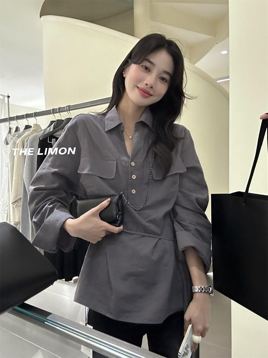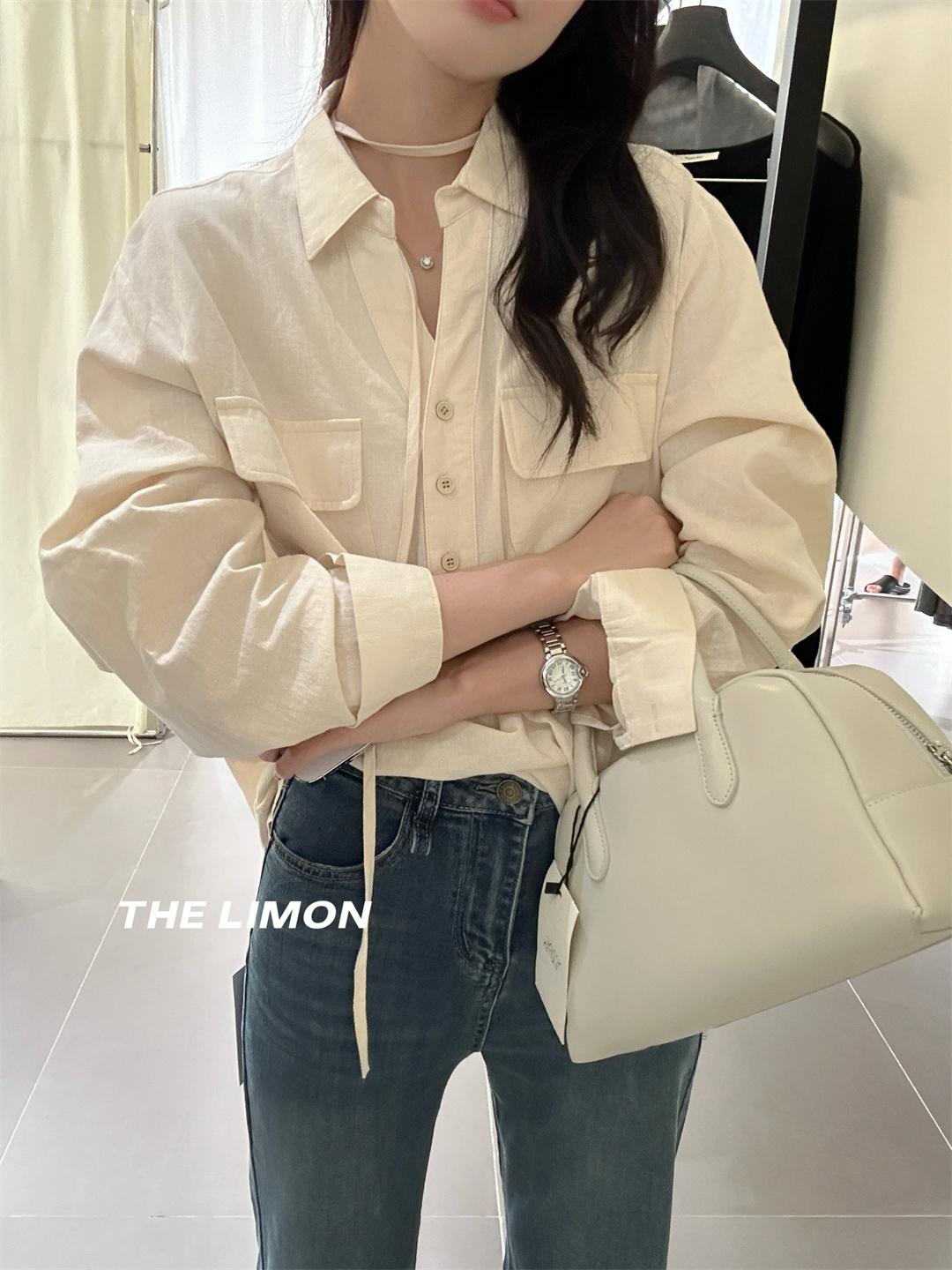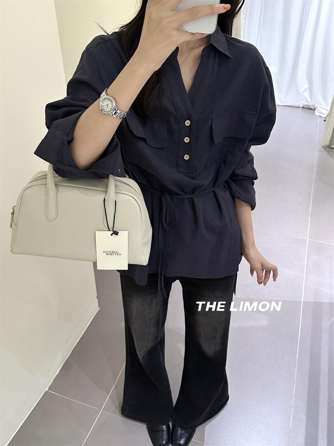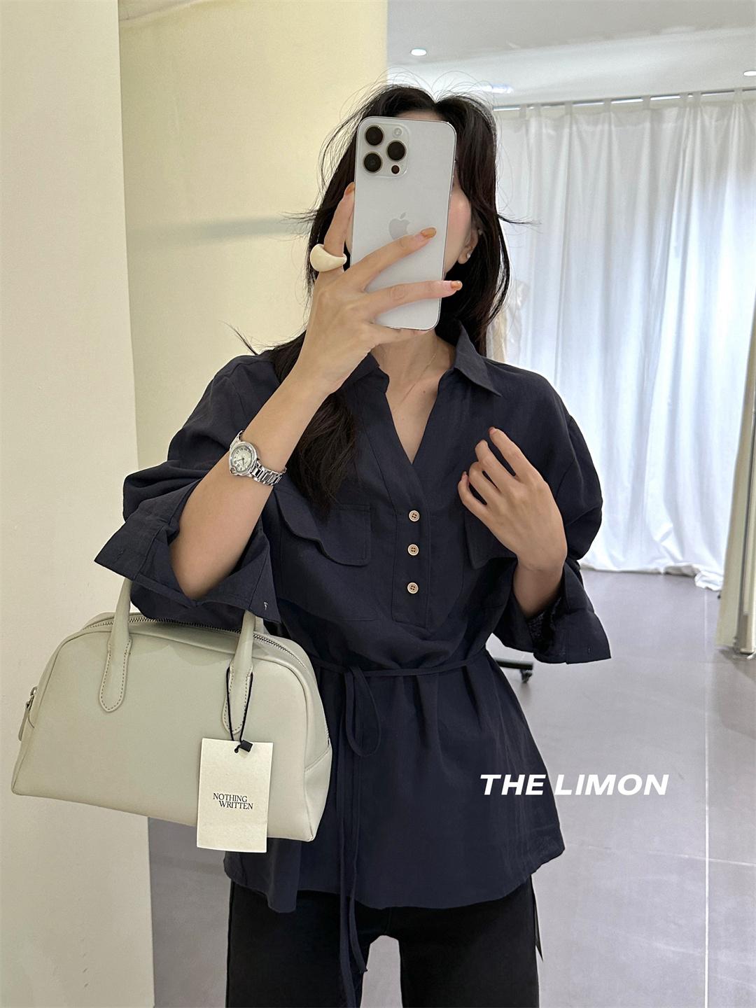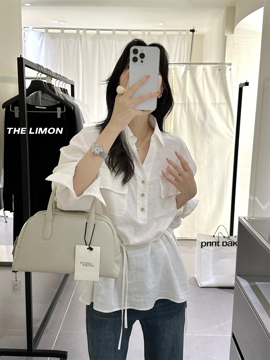 【C7095】專屬氛圍感苧麻繫帶收腰設計感襯衫(配腰繩)