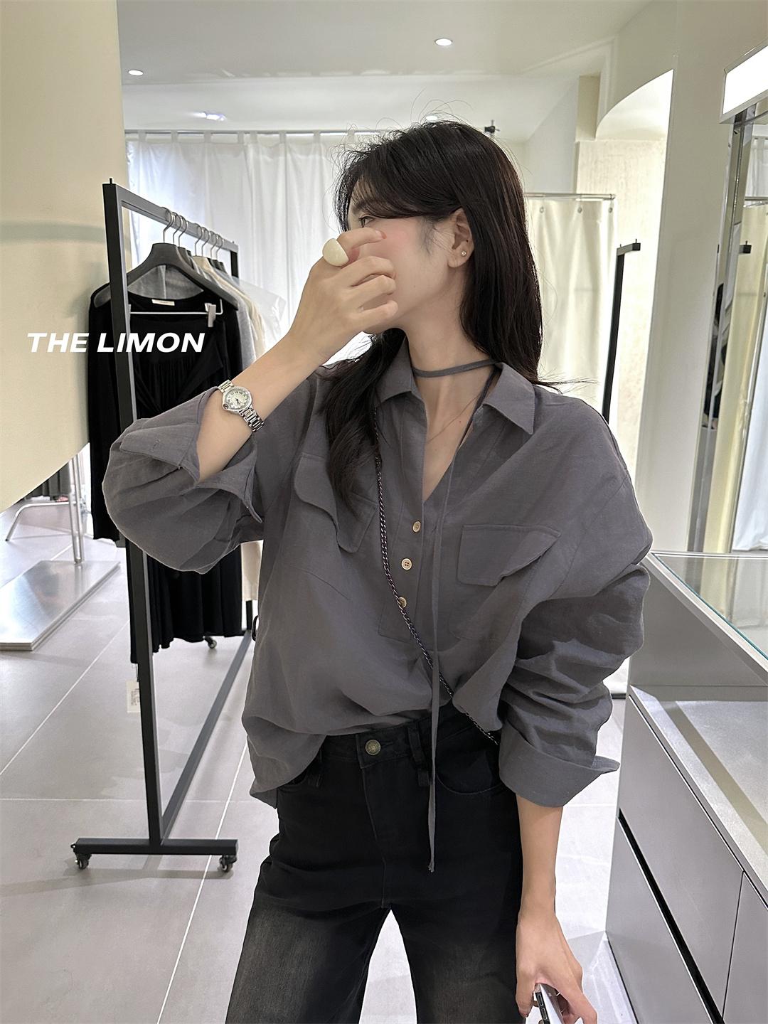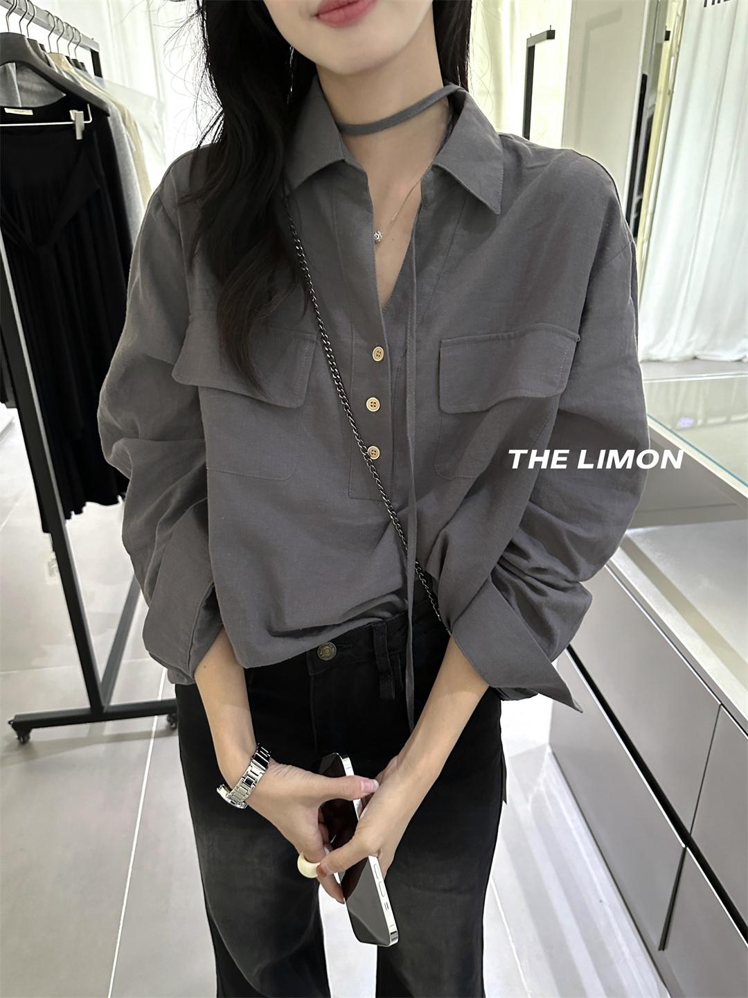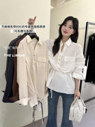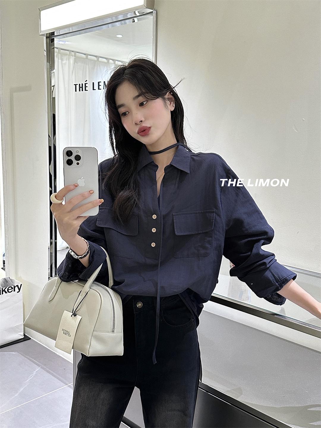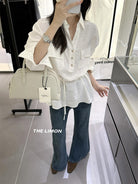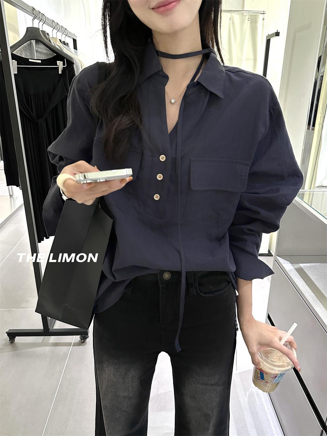 【C7095】專屬氛圍感苧麻繫帶收腰設計感襯衫(配腰繩)