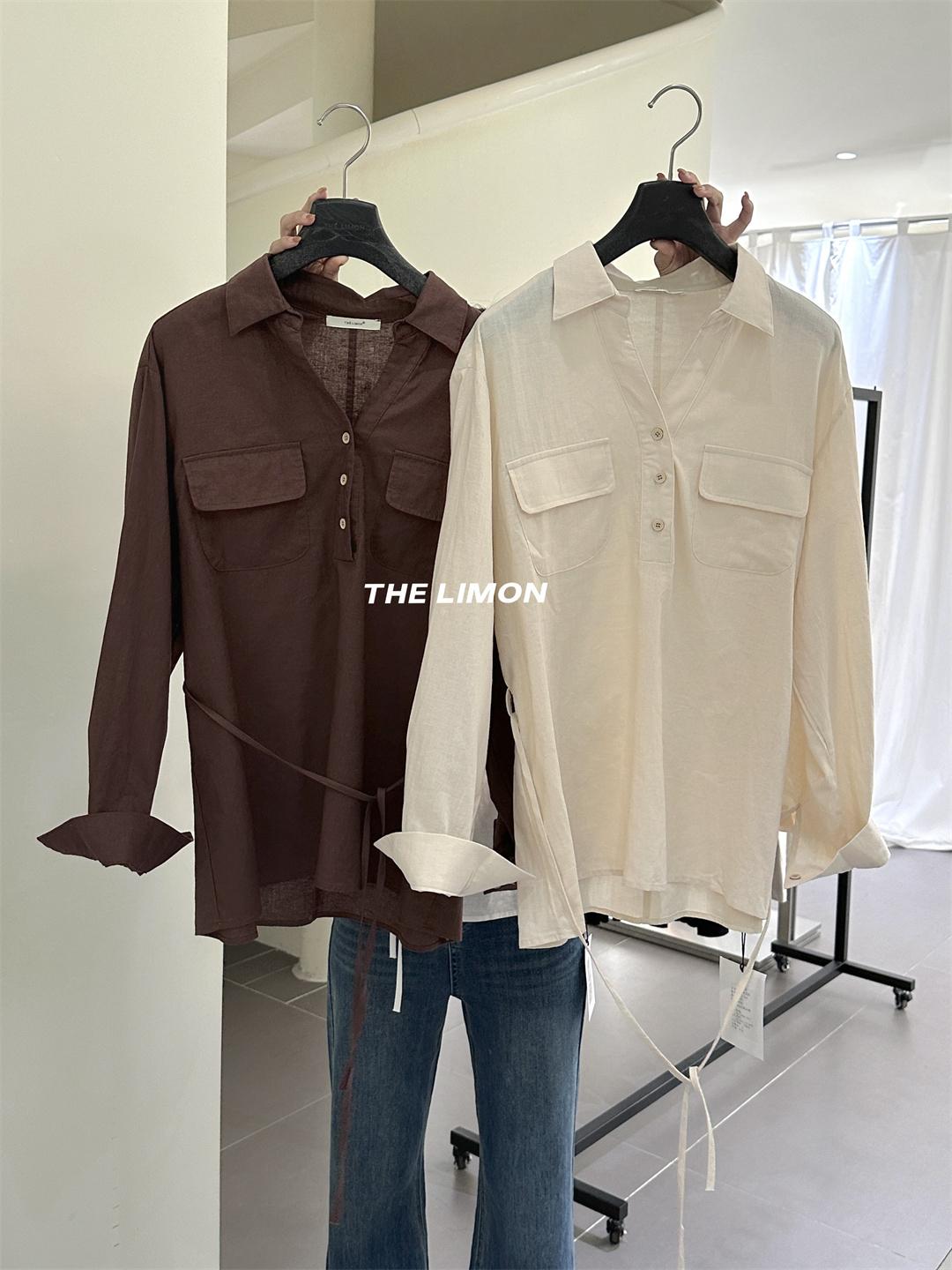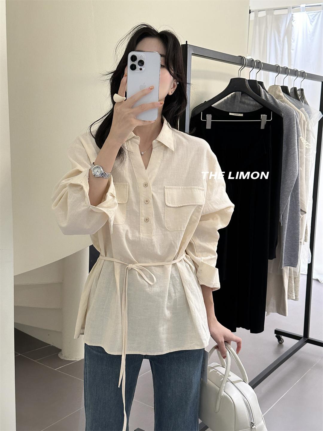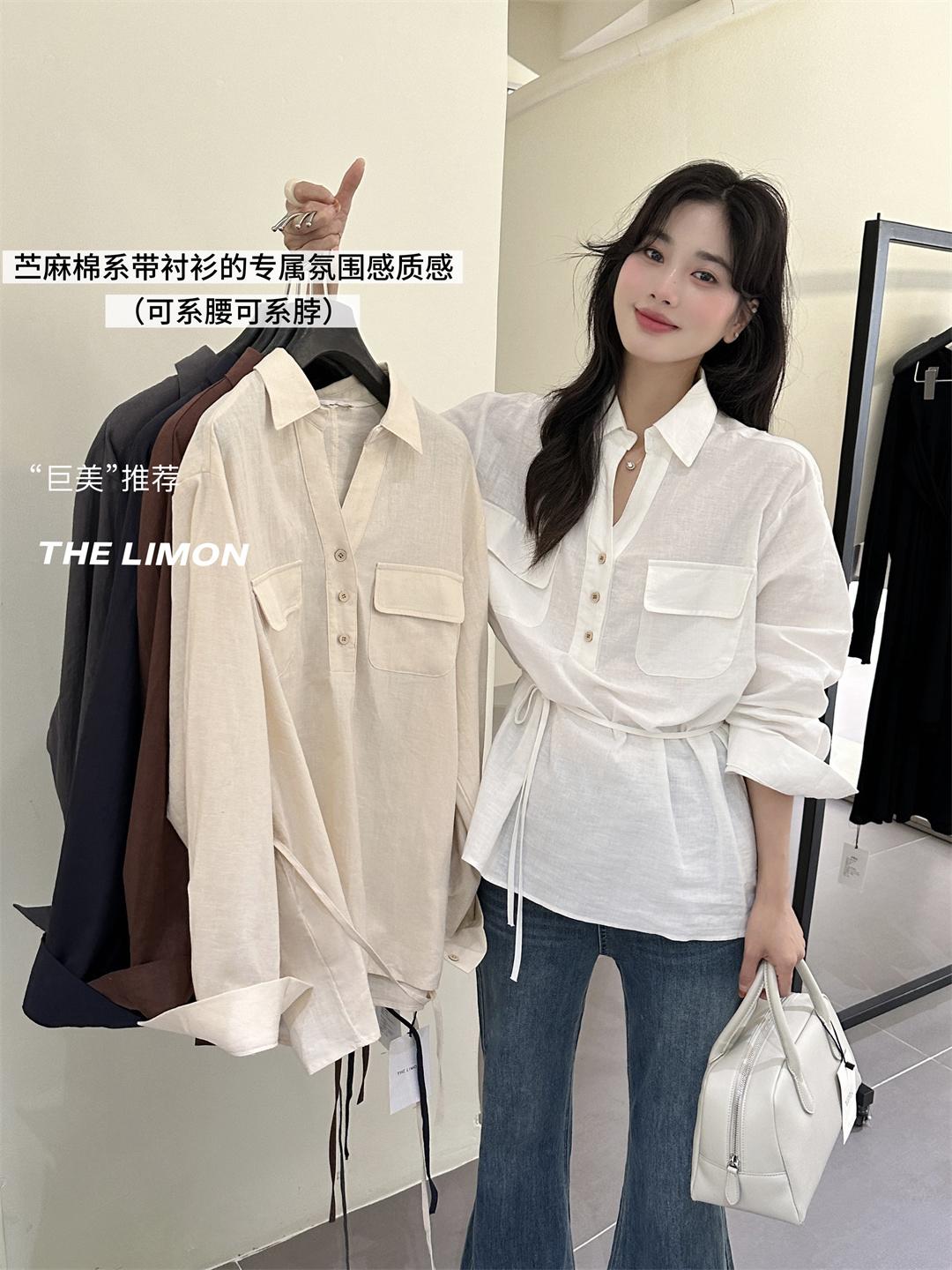 3. 【C7095】專屬氛圍感苧麻繫帶收腰設計感襯衫(配腰繩)