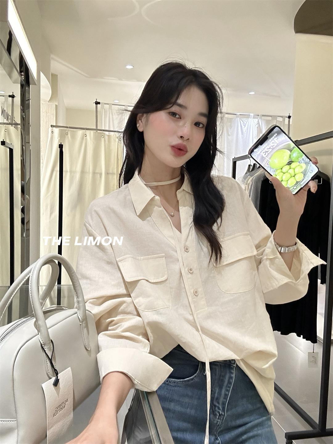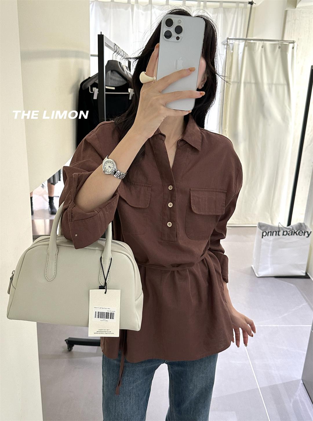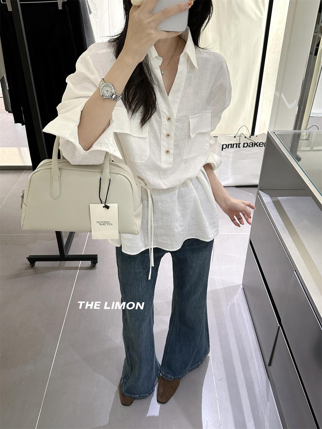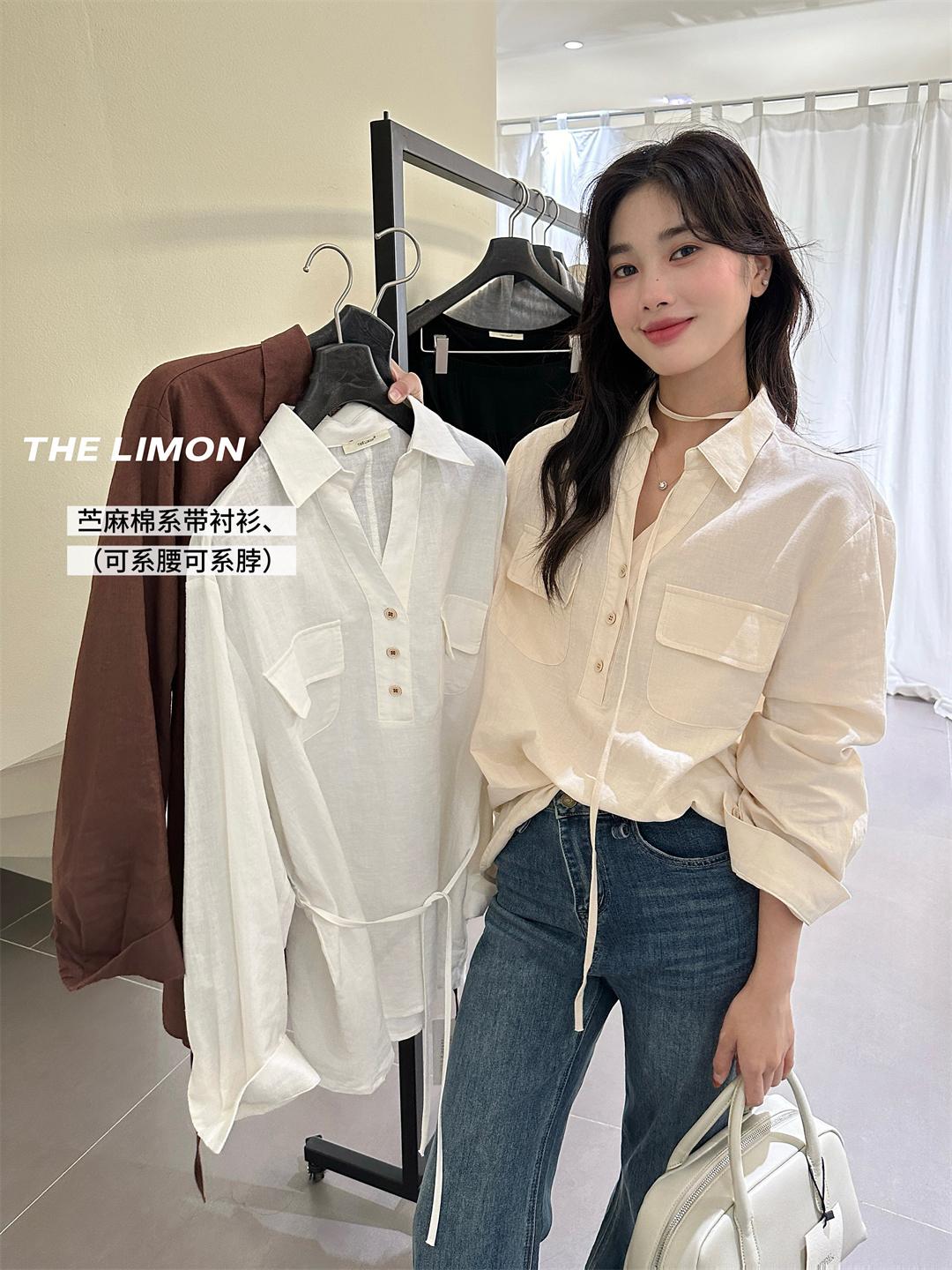 3. 【C7095】專屬氛圍感苧麻繫帶收腰設計感襯衫(配腰繩)