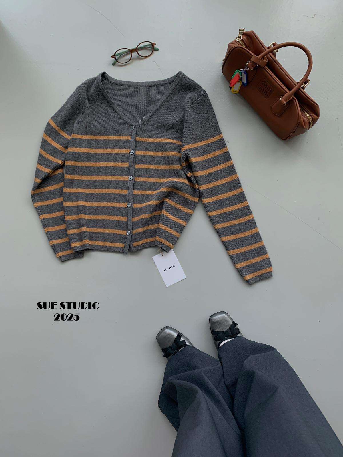 3. 【C7113】韓系休閒百搭經典V領寬鬆條紋常規款針織衫