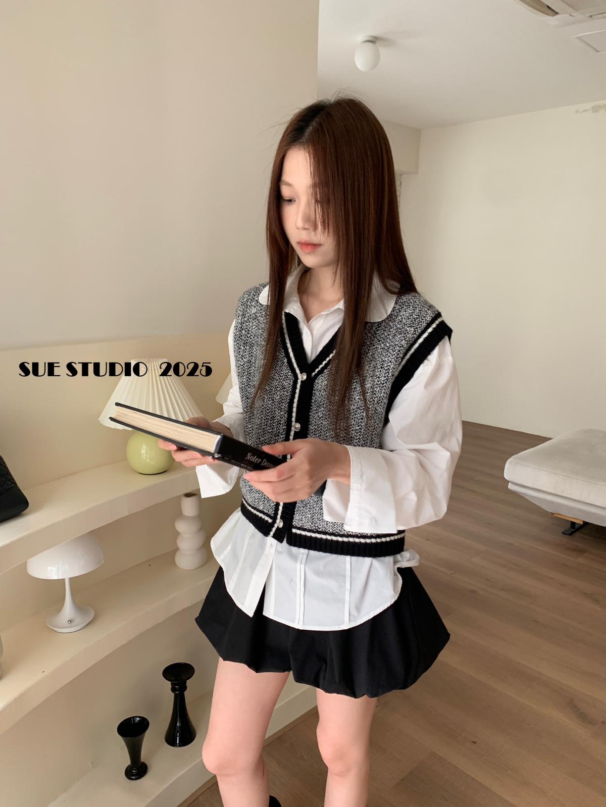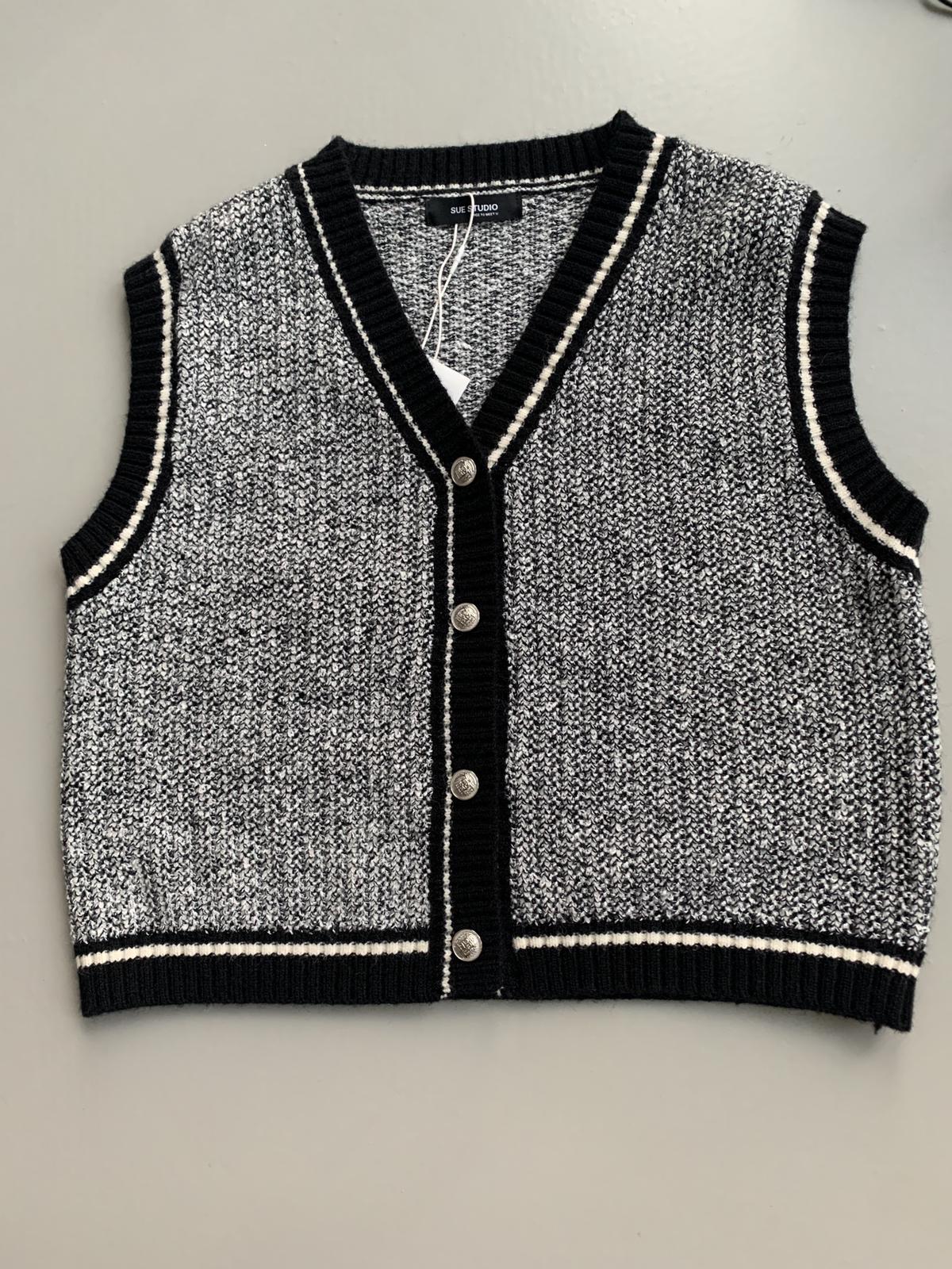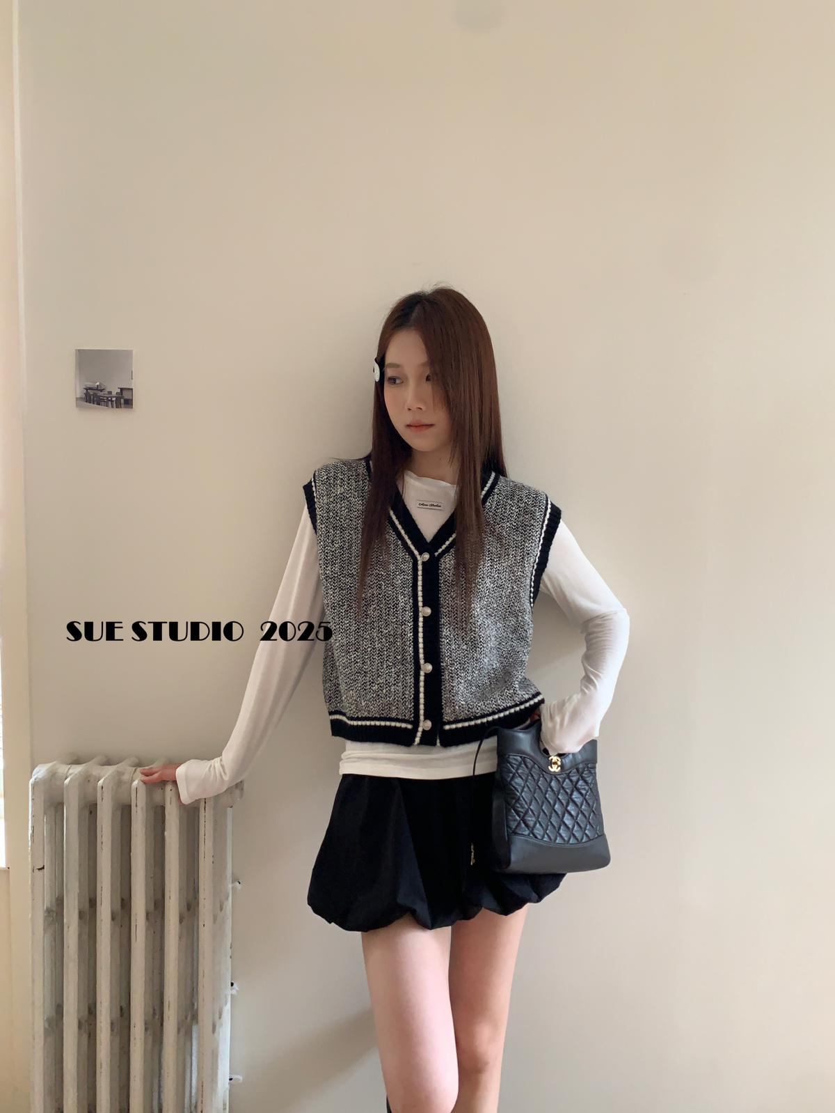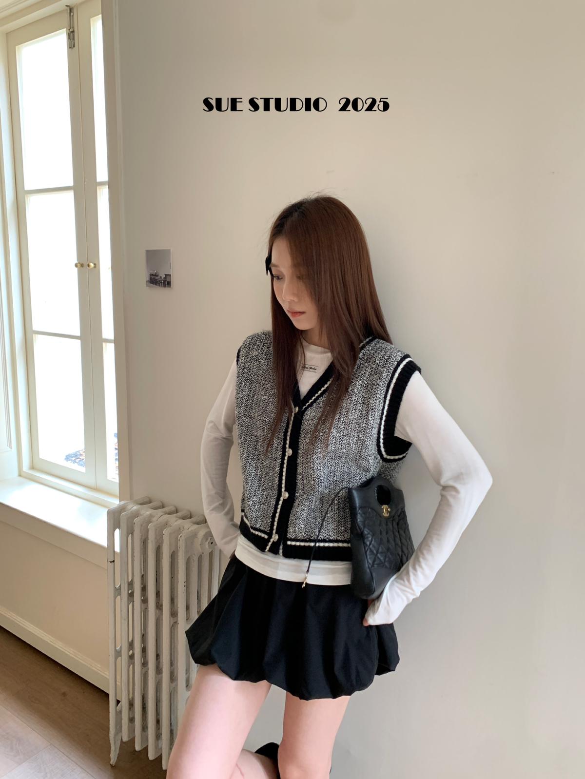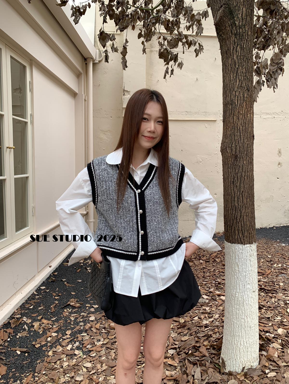 3. 【C7114】韓系小香風簡約百搭拼色單排扣無袖馬甲