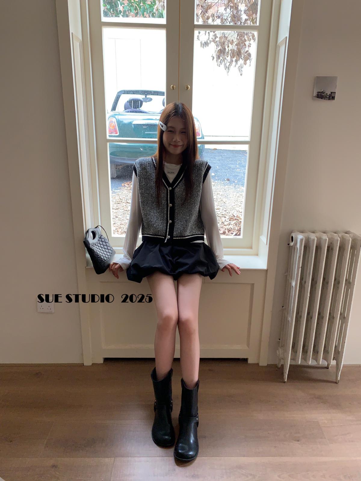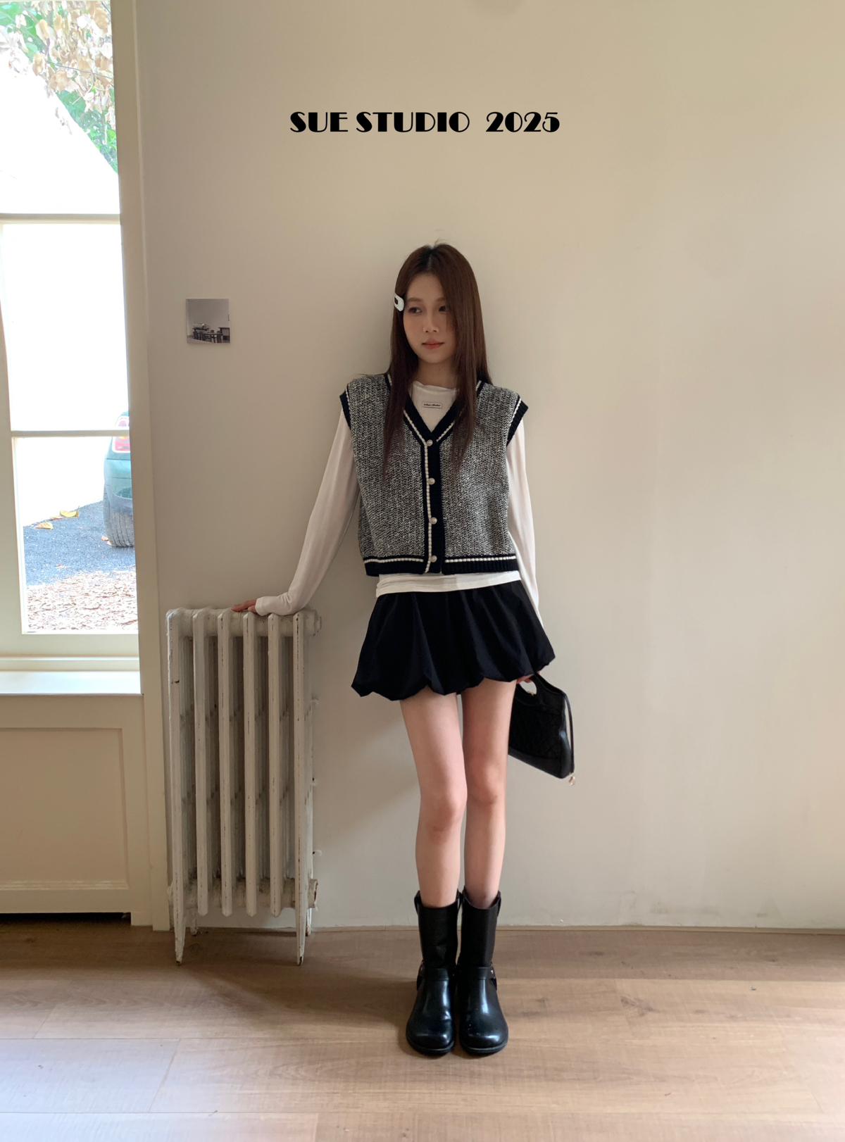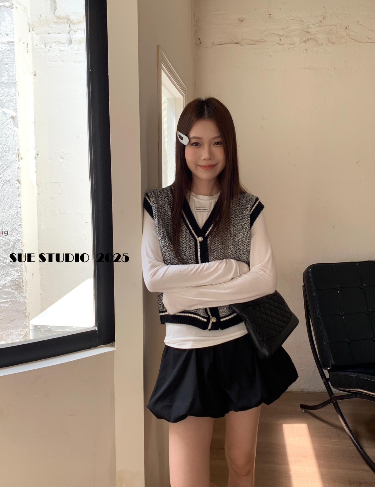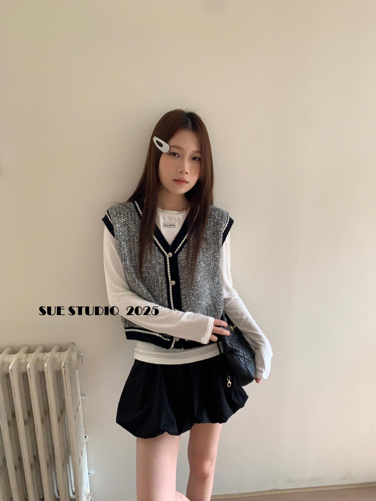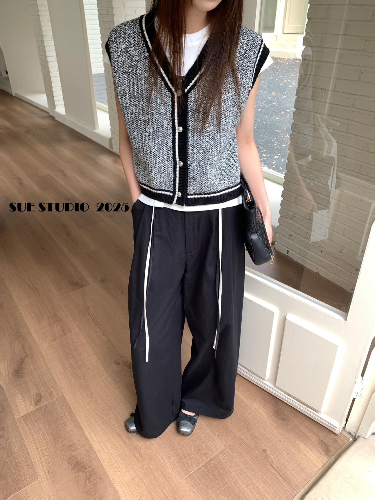 3. 【C7114】韓系小香風簡約百搭拼色單排扣無袖馬甲
