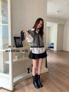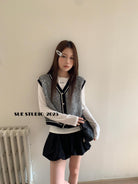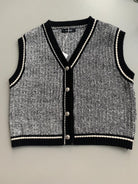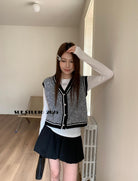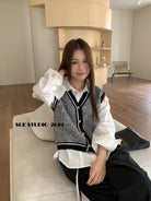 【C7114】韓系小香風簡約百搭拼色單排扣無袖馬甲