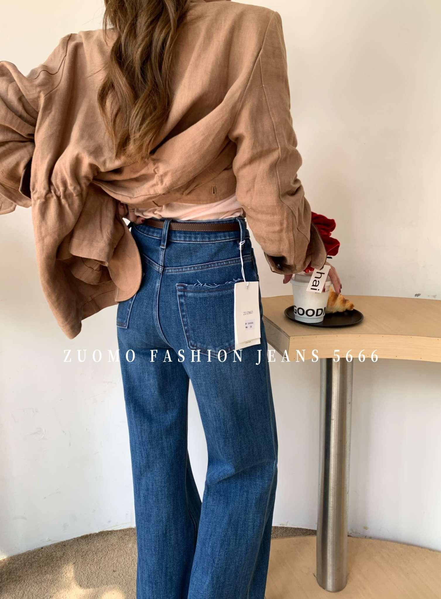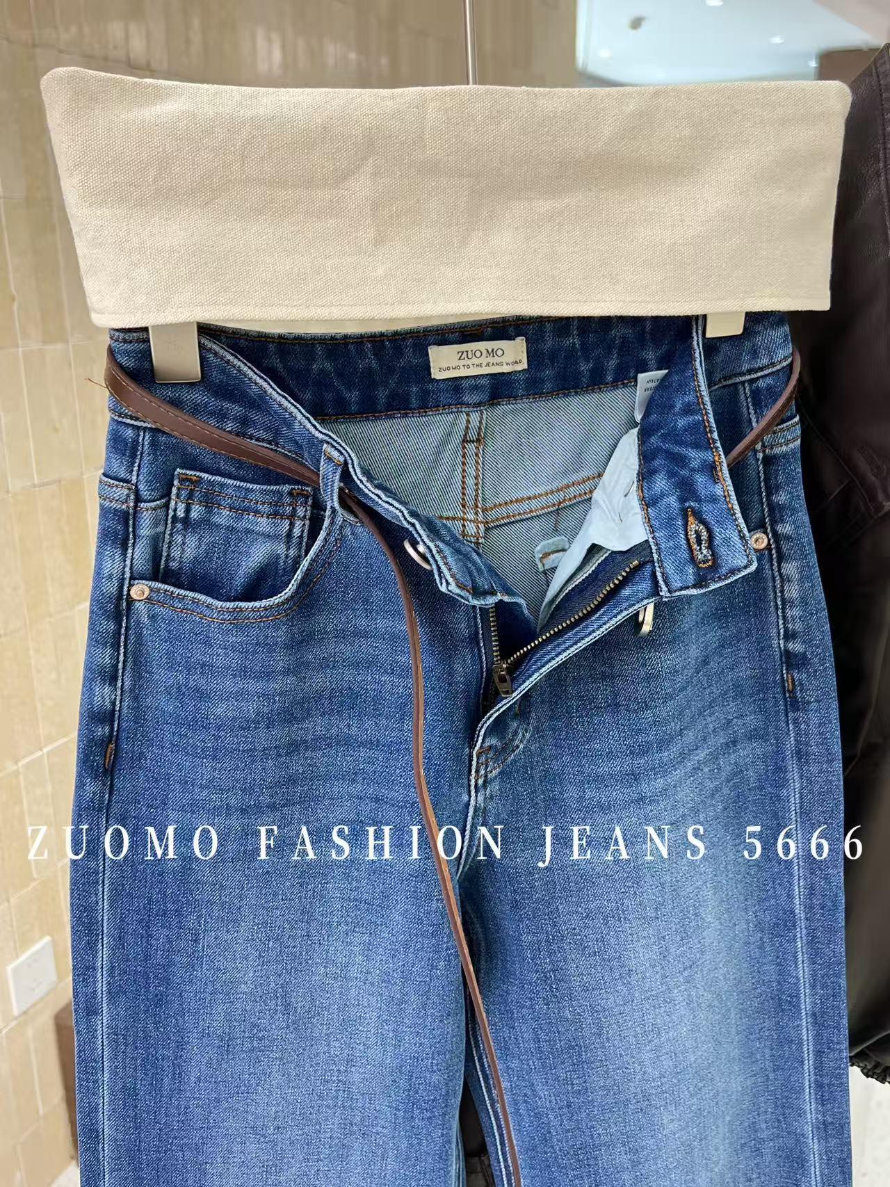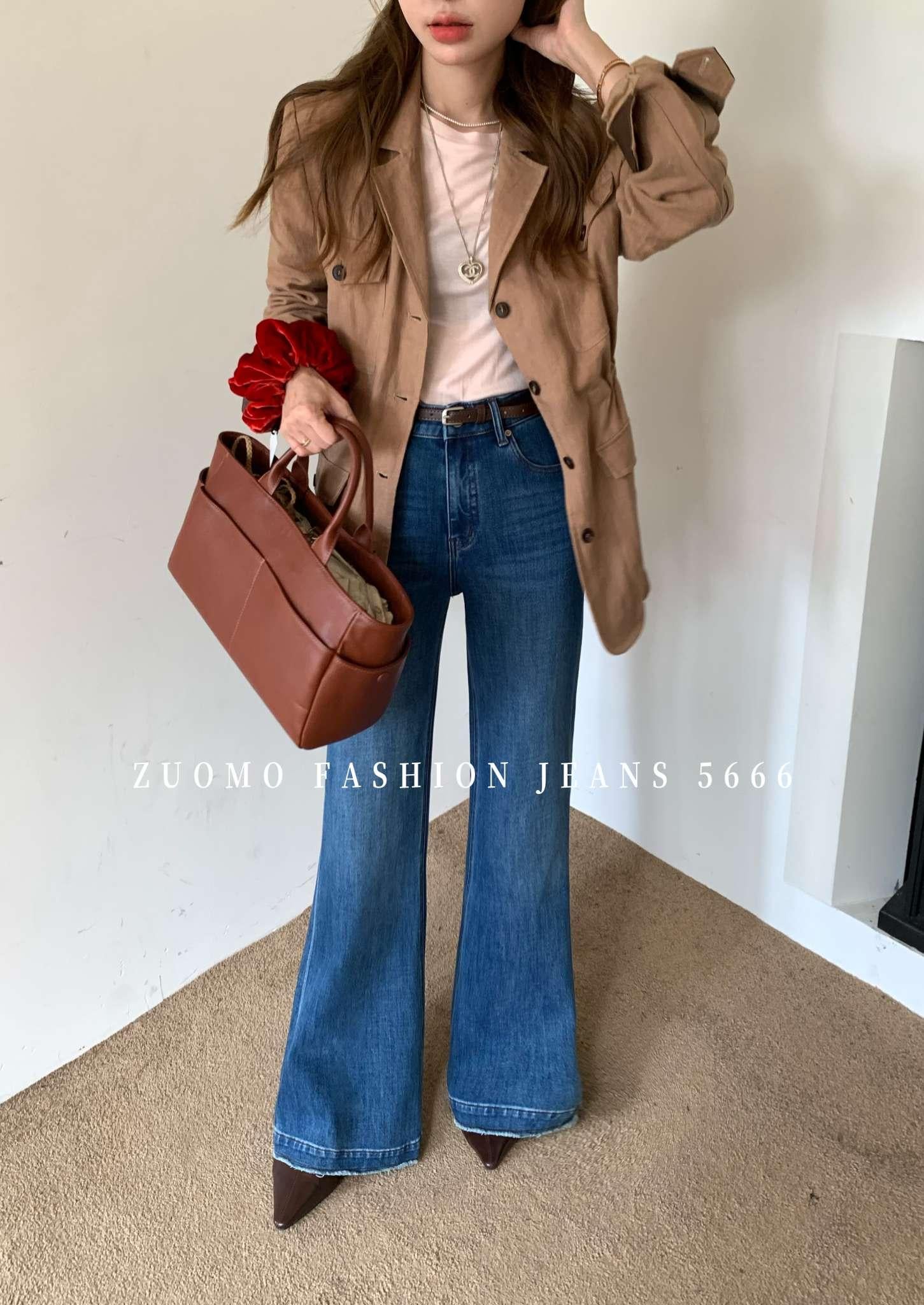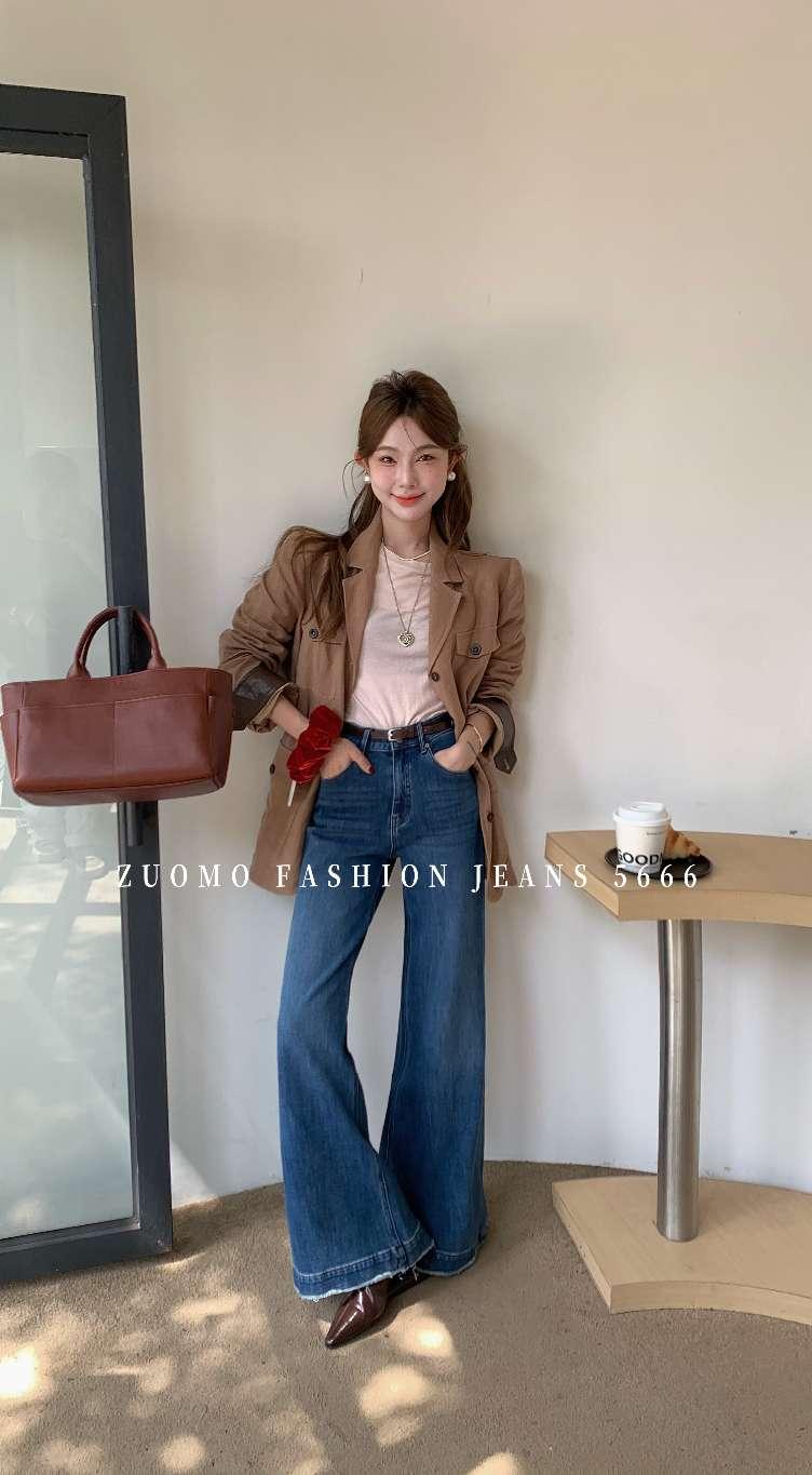 【C7115】高品質四面彈筒喇叭寬邊褲腳須邊洋氣十足設計牛仔褲(配腰帶)