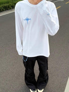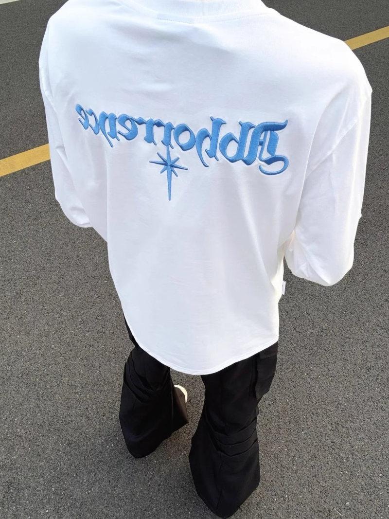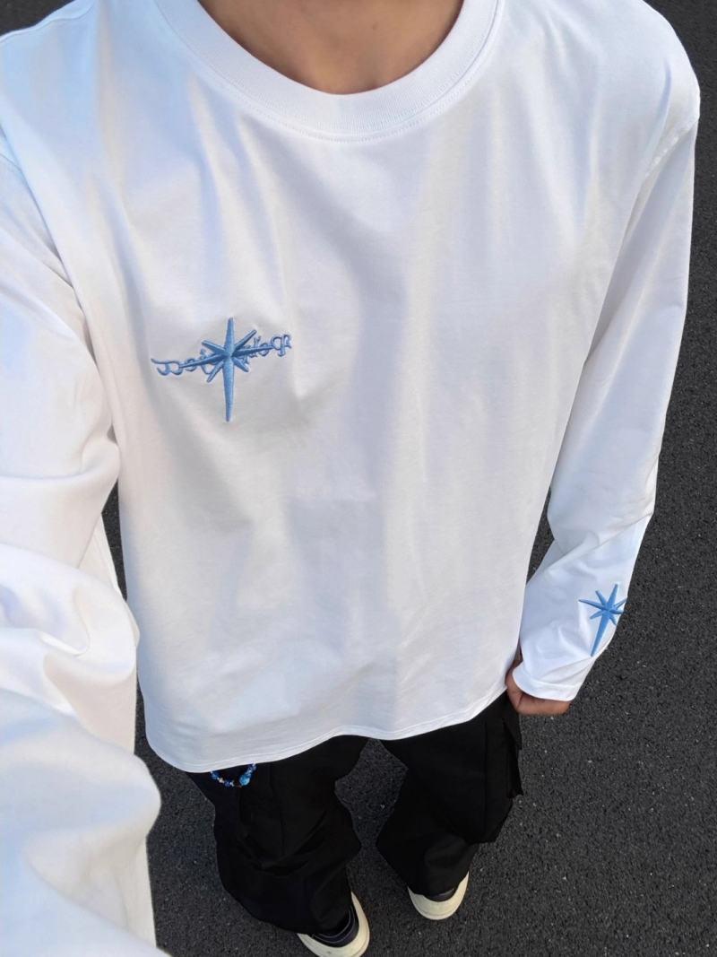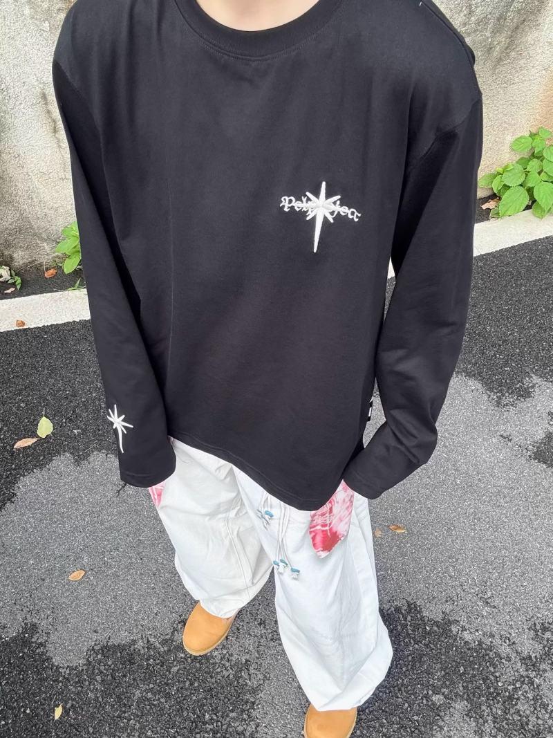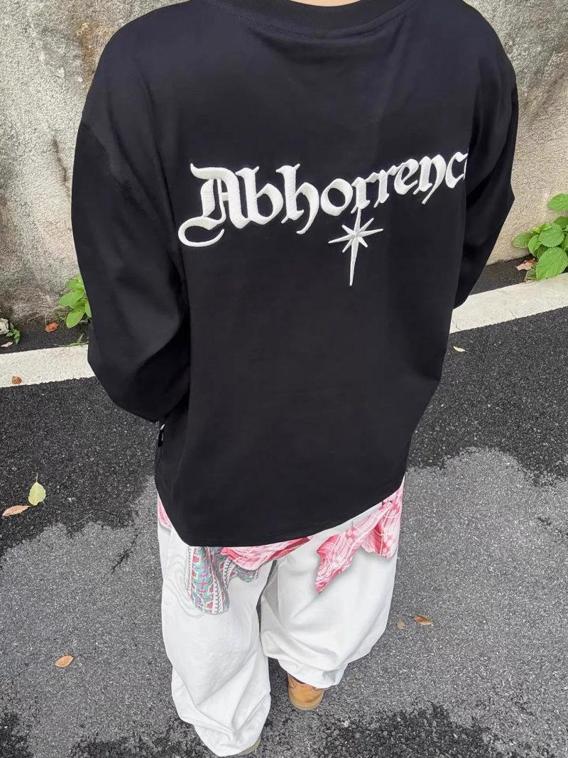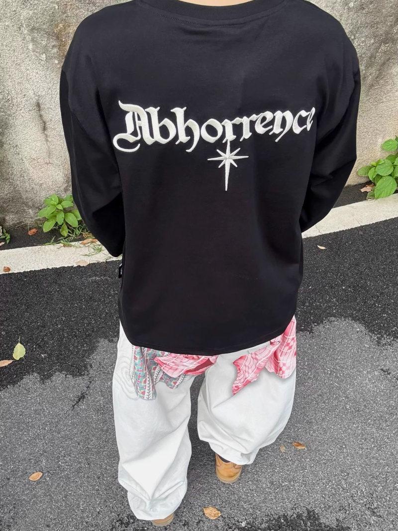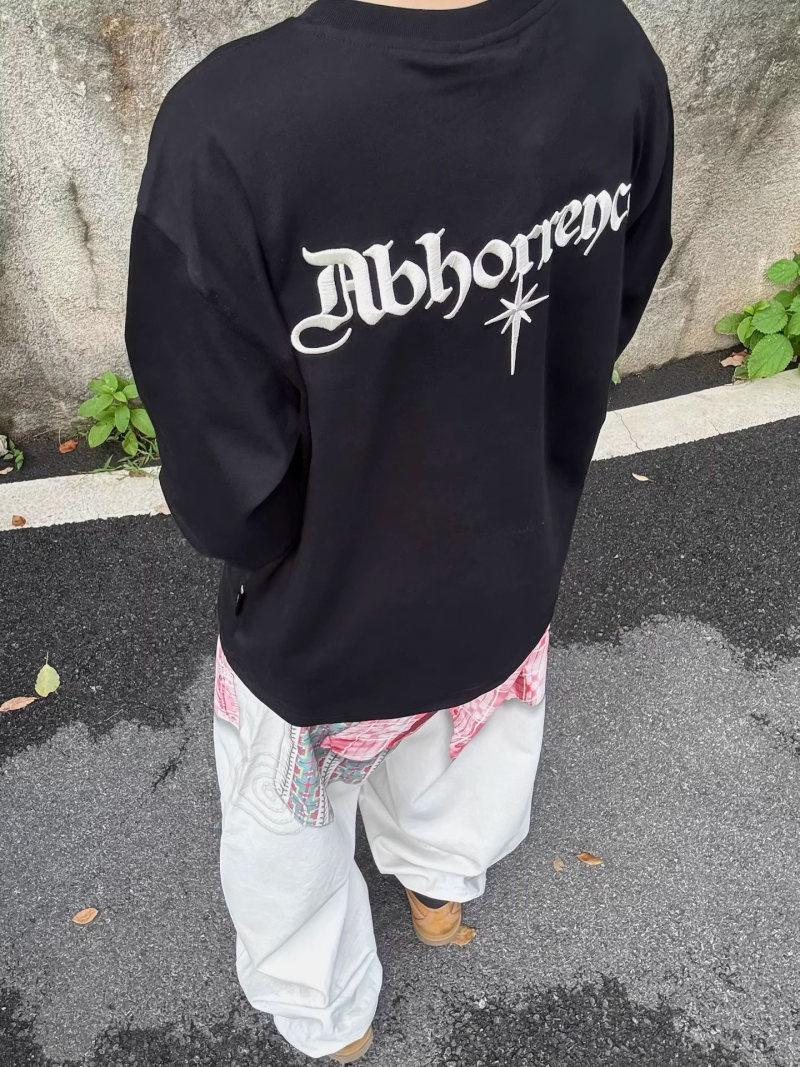 【YS2231】簡約休閒圓領寬鬆字母刺繡長袖T恤