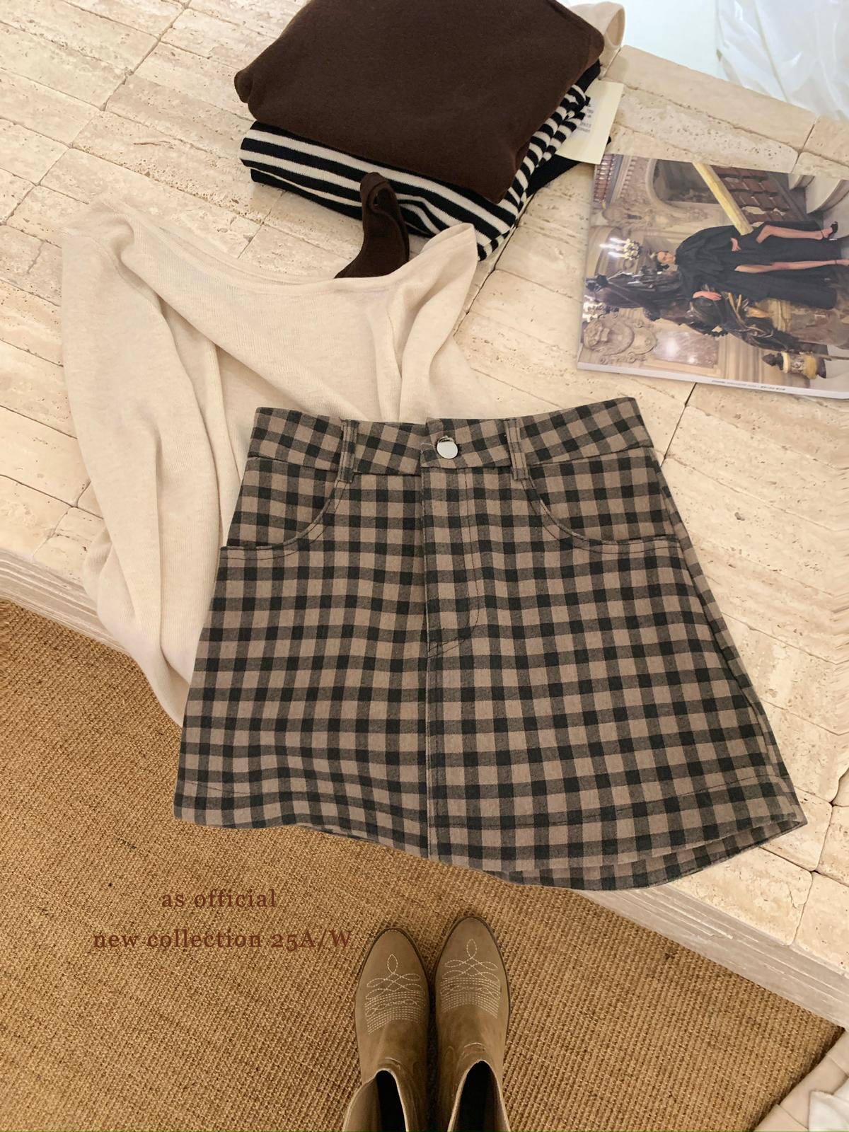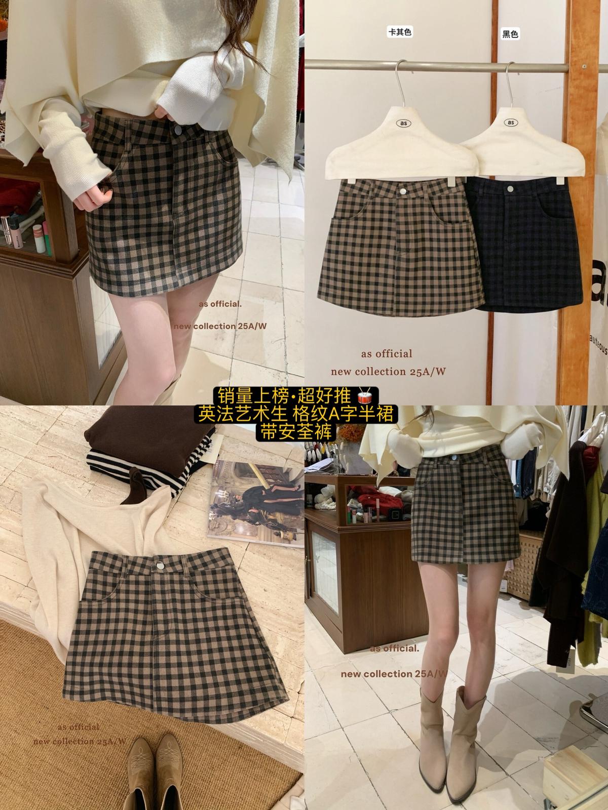 【C7164】強推!搭配祕籍~秋日復古格紋A字短裙半身裙(會補N次!!)