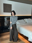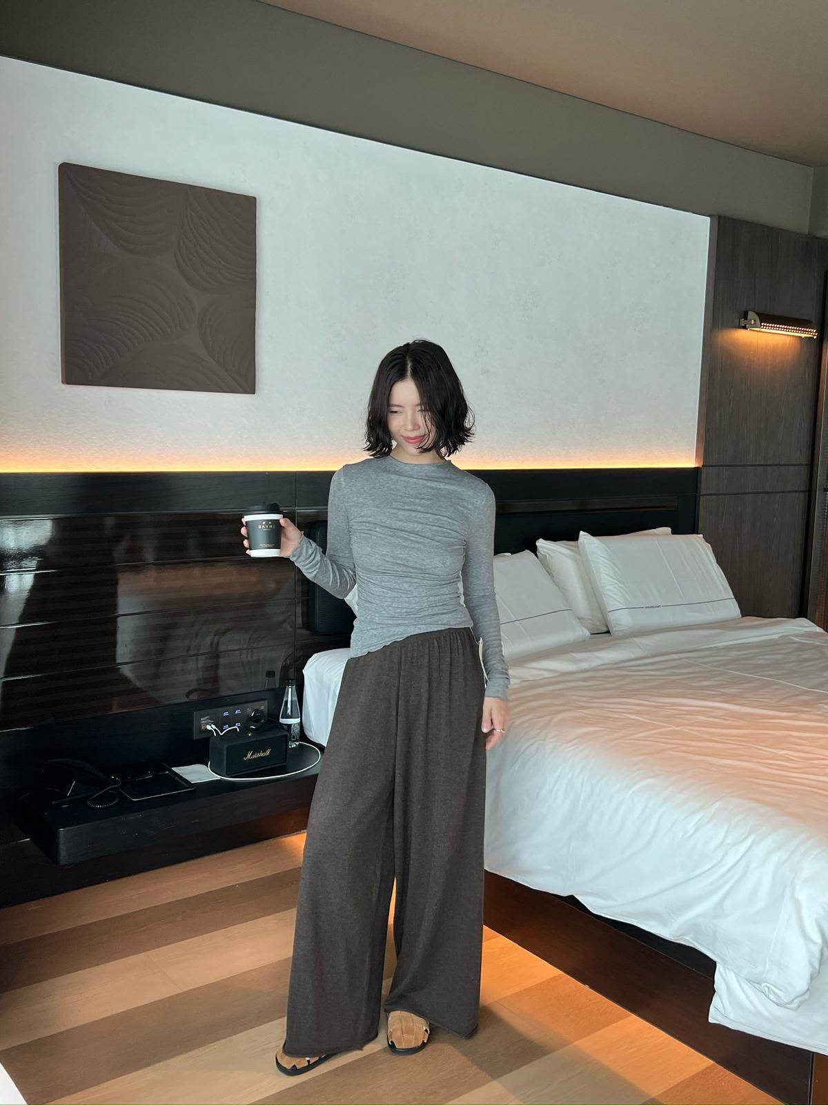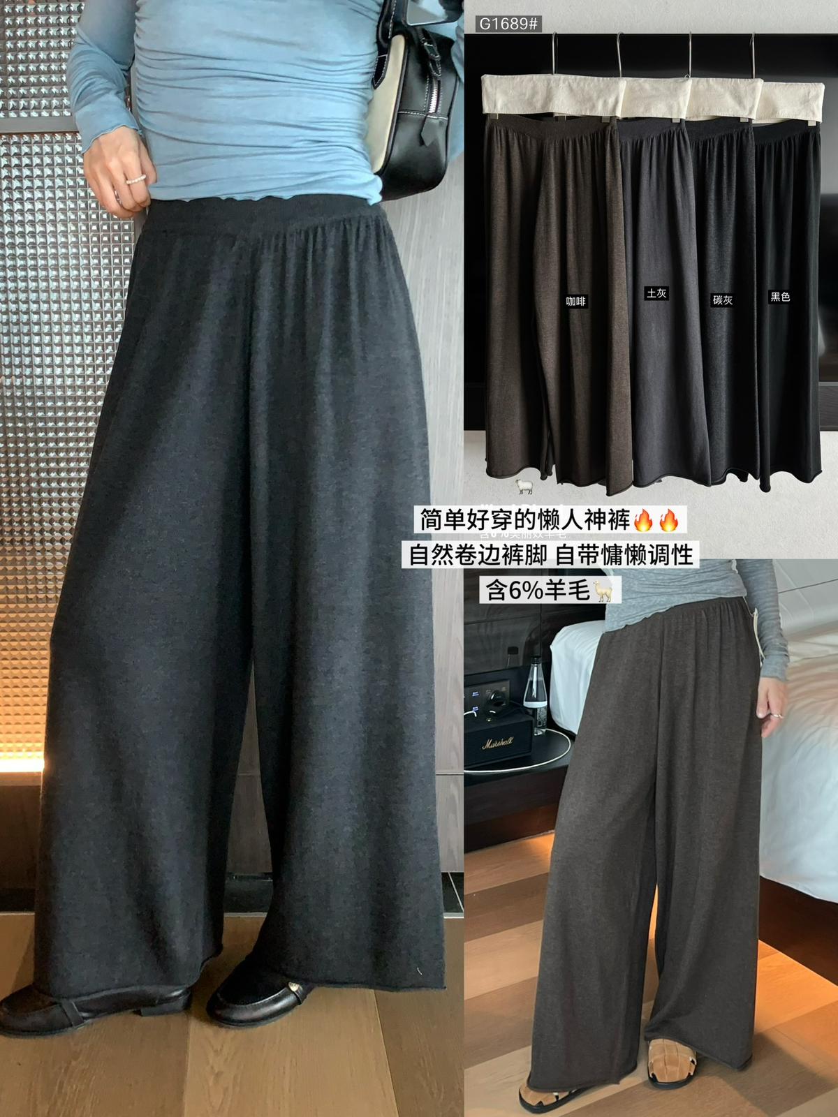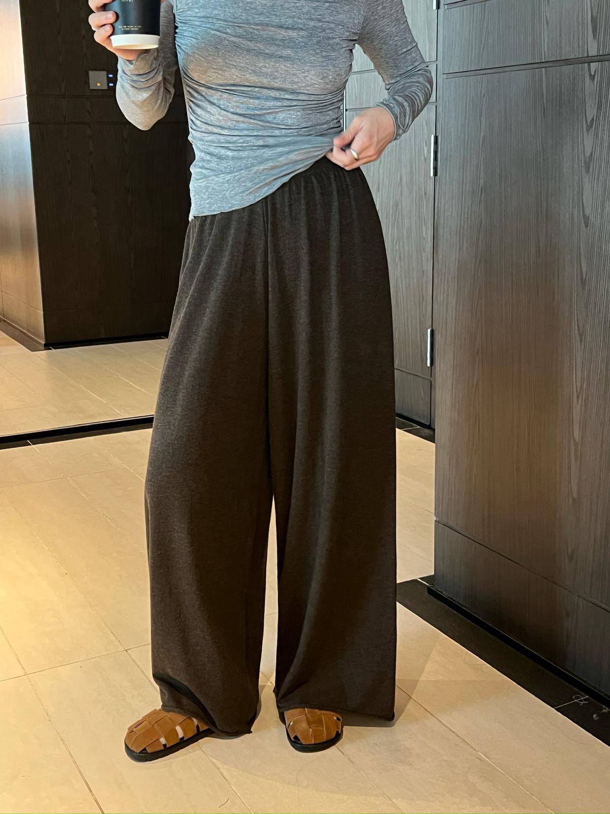 【C7172】慵懶風鬆緊腰自然羊毛混紡休閒褲(含6%羊毛)