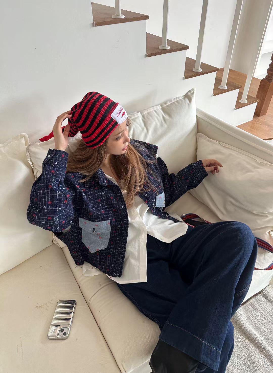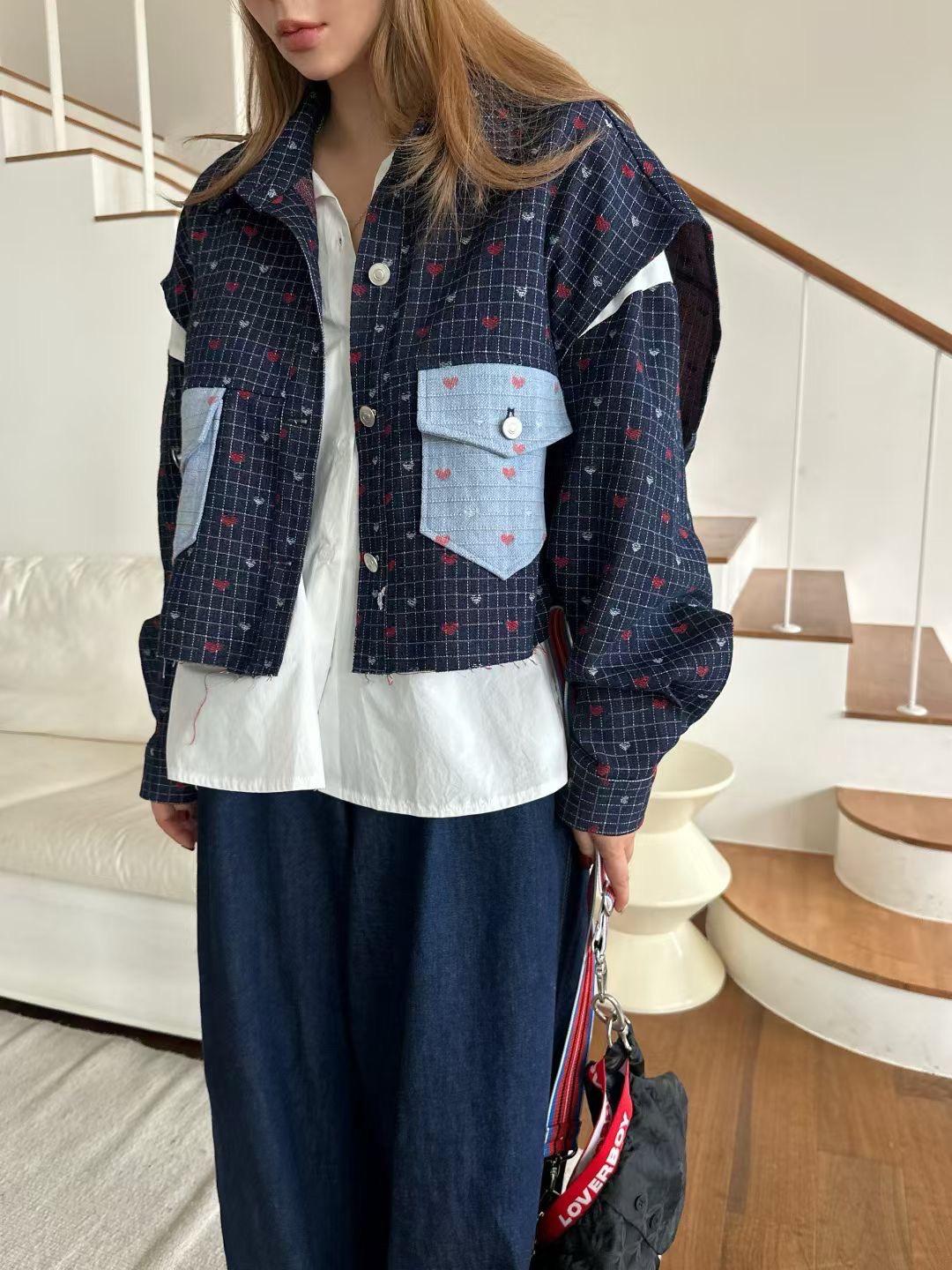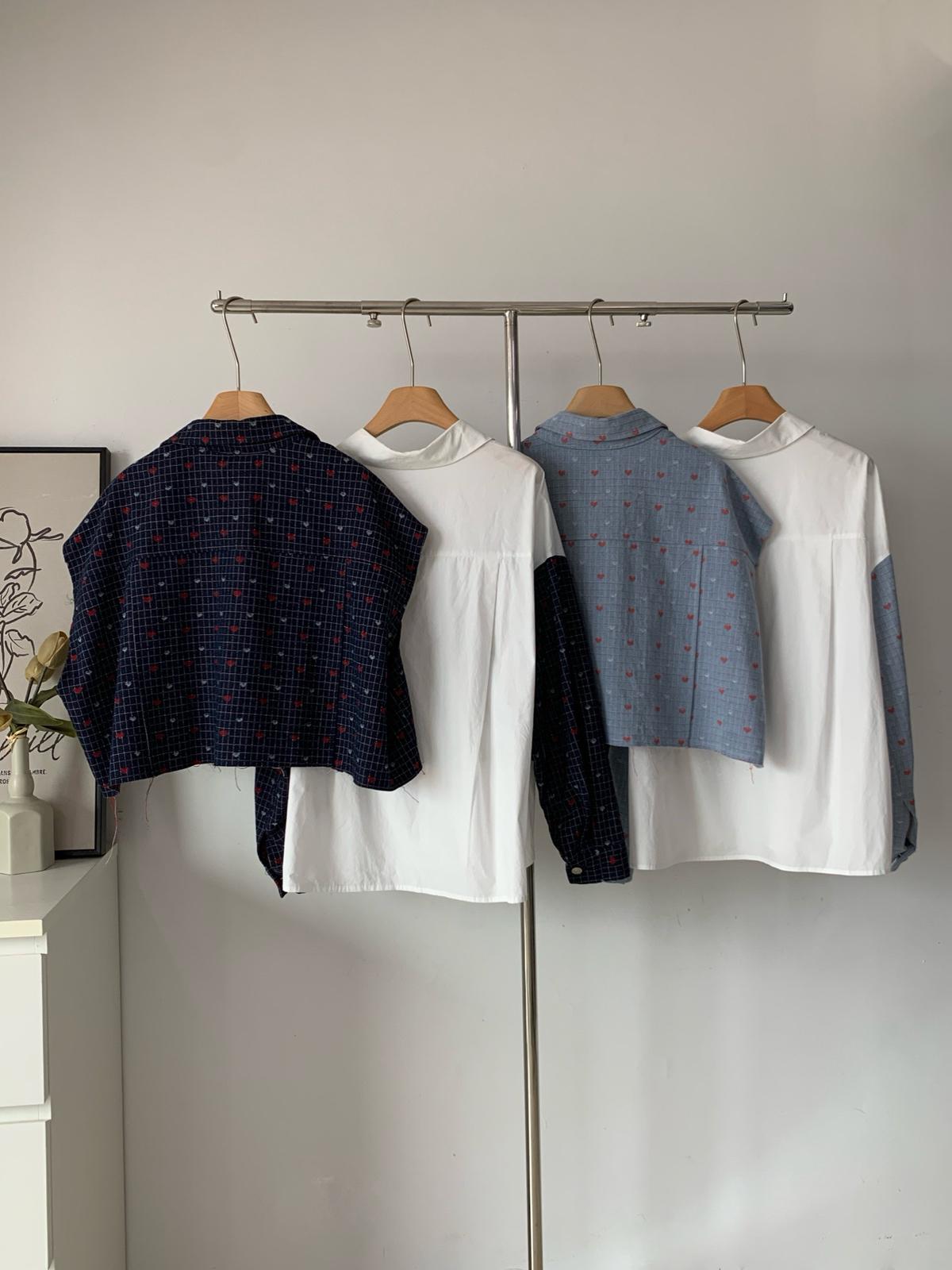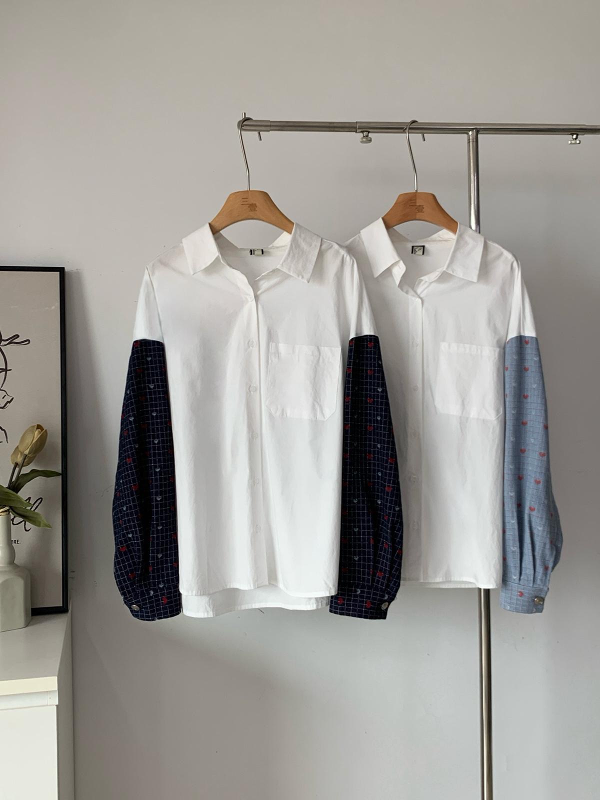 【C7189】韓系時尚百搭襯衫拼接袖子上衣襯衫